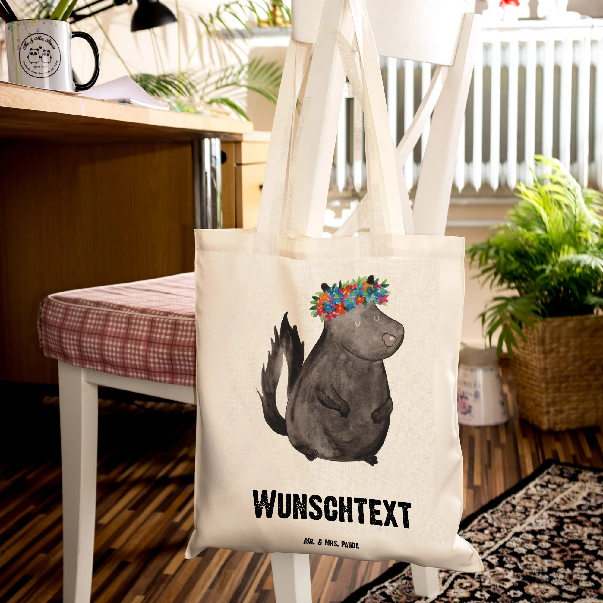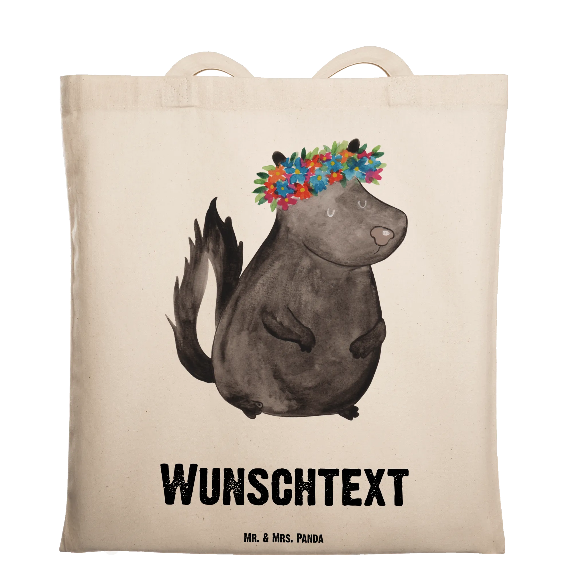 Entdecke die wunderschöne personalisierte Tragetasche "Stinktier Blumenmädchen" aus der besonderen Stinktier-Kollektion von Mr. & Mrs. Panda! Diese Tasche ist nicht nur ein praktischer Begleiter für den Alltag, sondern auch ein bezauberndes Accessoire, das dir ein Lächeln ins Gesicht zaubert.