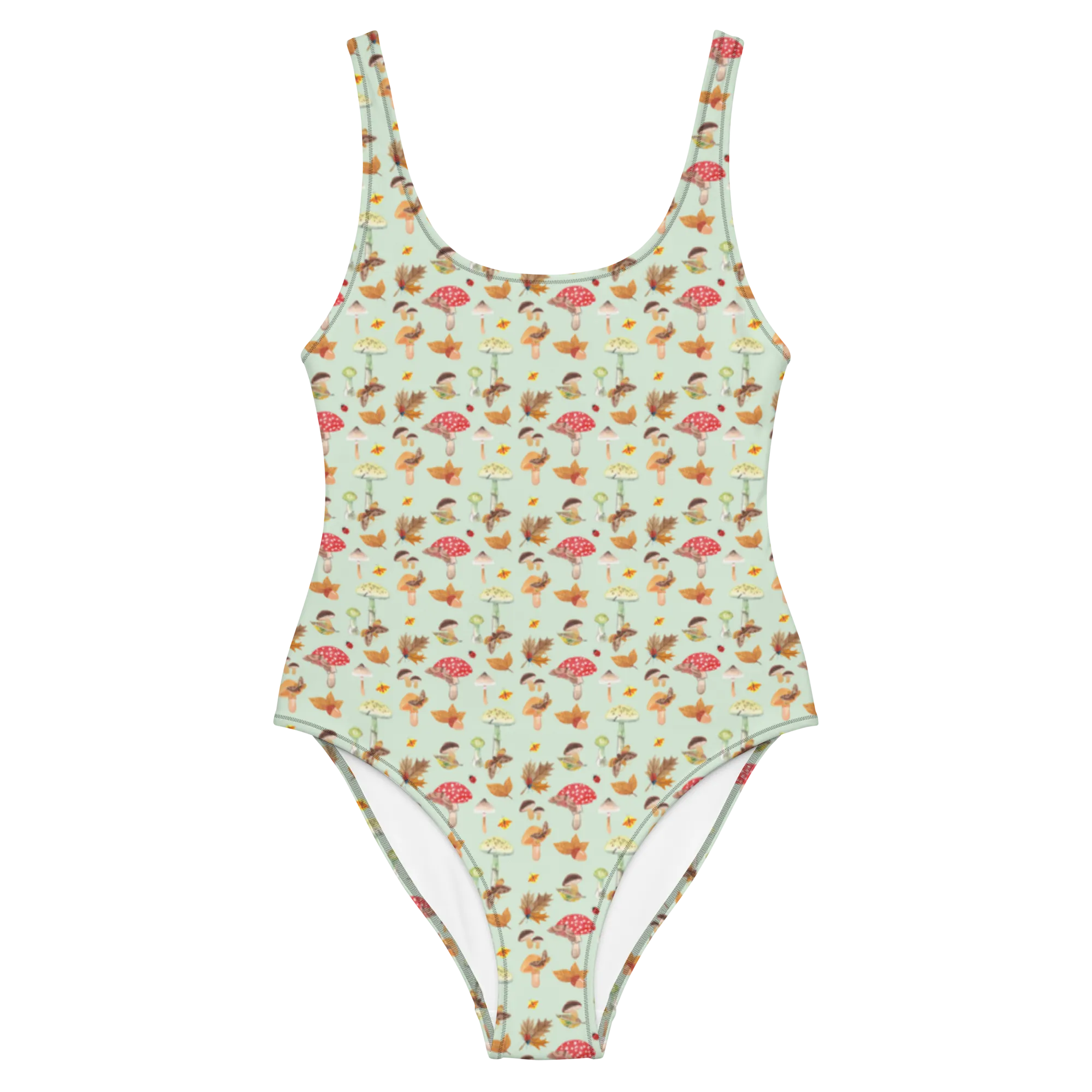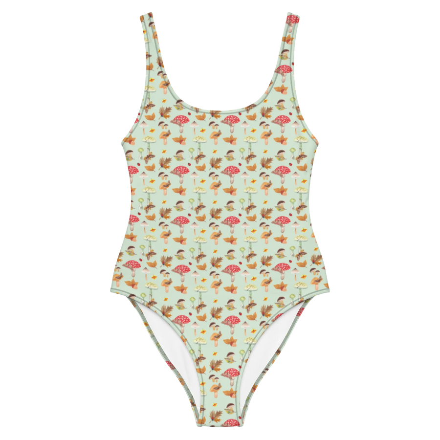 Dieser Badeanzug ist nicht nur ein echter Hingucker, sondern auch perfekt für all diejenigen, die die Natur lieben und den Zauber des Herbstes in ihre Bademode bringen möchten. Mit seinem einzigartigen Muster aus filigran gezeichneten Pilzen, bunten Nachtfaltern und leuchtendem Laub fängt dieser Badeanzug die Farbenpracht des Herbstwaldes perfekt ein.