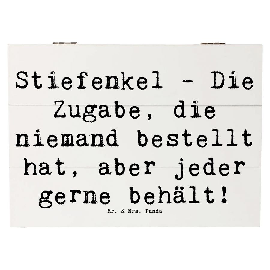 Die wunderschöne Holzkiste mit dem besonderen Motiv "Stiefenkel" von Mr. & Mrs. Panda ist das perfekte Geschenk für die ganze Familie! Diese stabile Kiste aus robuster Holzfaser ist nicht nur ein echter Hingucker, sondern auch ein praktischer Aufbewahrungsort für all die wertvollen Erinnerungen, die Du mit Deinen Liebsten teilst.