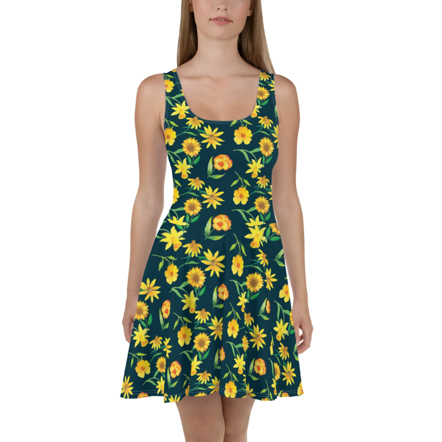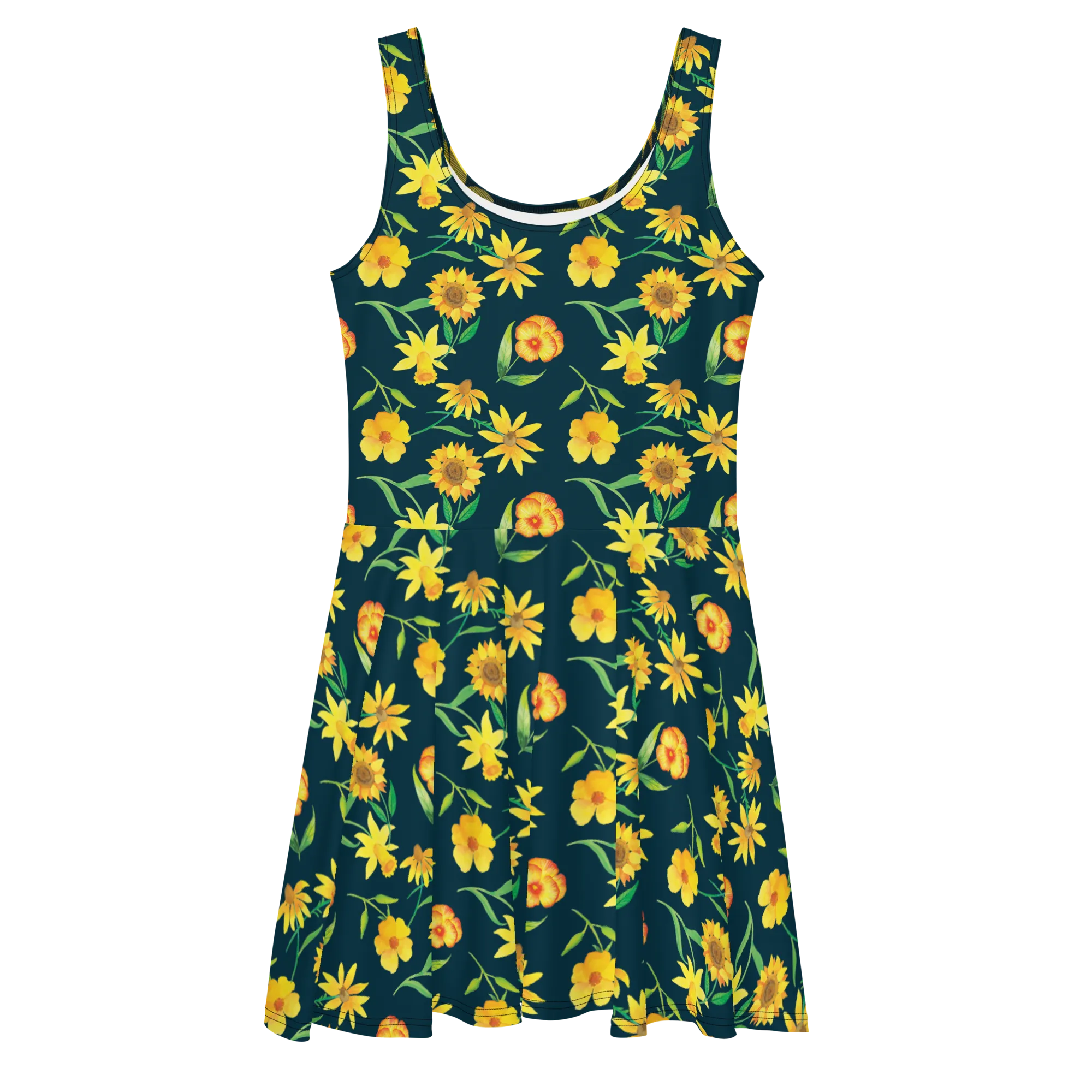 Das Sommerkleid im Sonnengruß Design von Mr. & Mrs. Panda ist der perfekte Begleiter für den Sommer! Dieses hochwertige und wunderschöne Skaterkleid überzeugt nicht nur durch sein auffälliges Design, das mit viel Liebe handgezeichnet wurde und eine bezaubernde Kombination aus gelben Blumen, Sonnenblumen und Osterglocken zeigt. Der aquarellartige Stil strahlt Fröhlichkeit und Wärme aus und zaubert Dir jedes Mal ein Lächeln ins Gesicht, wenn Du es trägst.