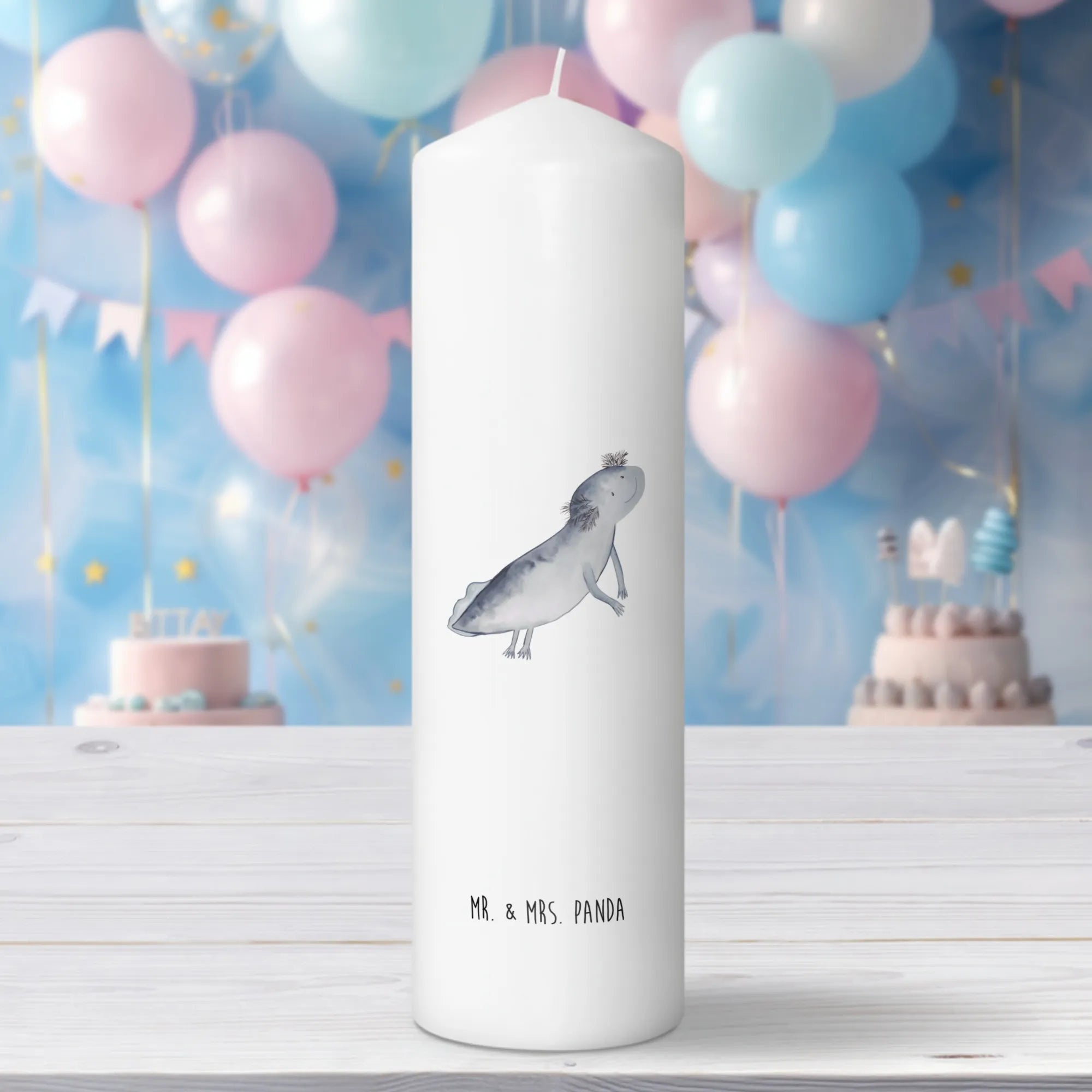 Die perfekte Taufkerze für kleine Weltenbummler! Diese wunderschöne Kerze von Mr. & Mrs. Panda verzaubert durch ihr liebenswertes Axolotl-Motiv, das in sanften Farben strahlt und somit nicht nur zur Taufe, sondern auch zu Festen wie Kommunion oder Geburtstag ein echter Hingucker ist.