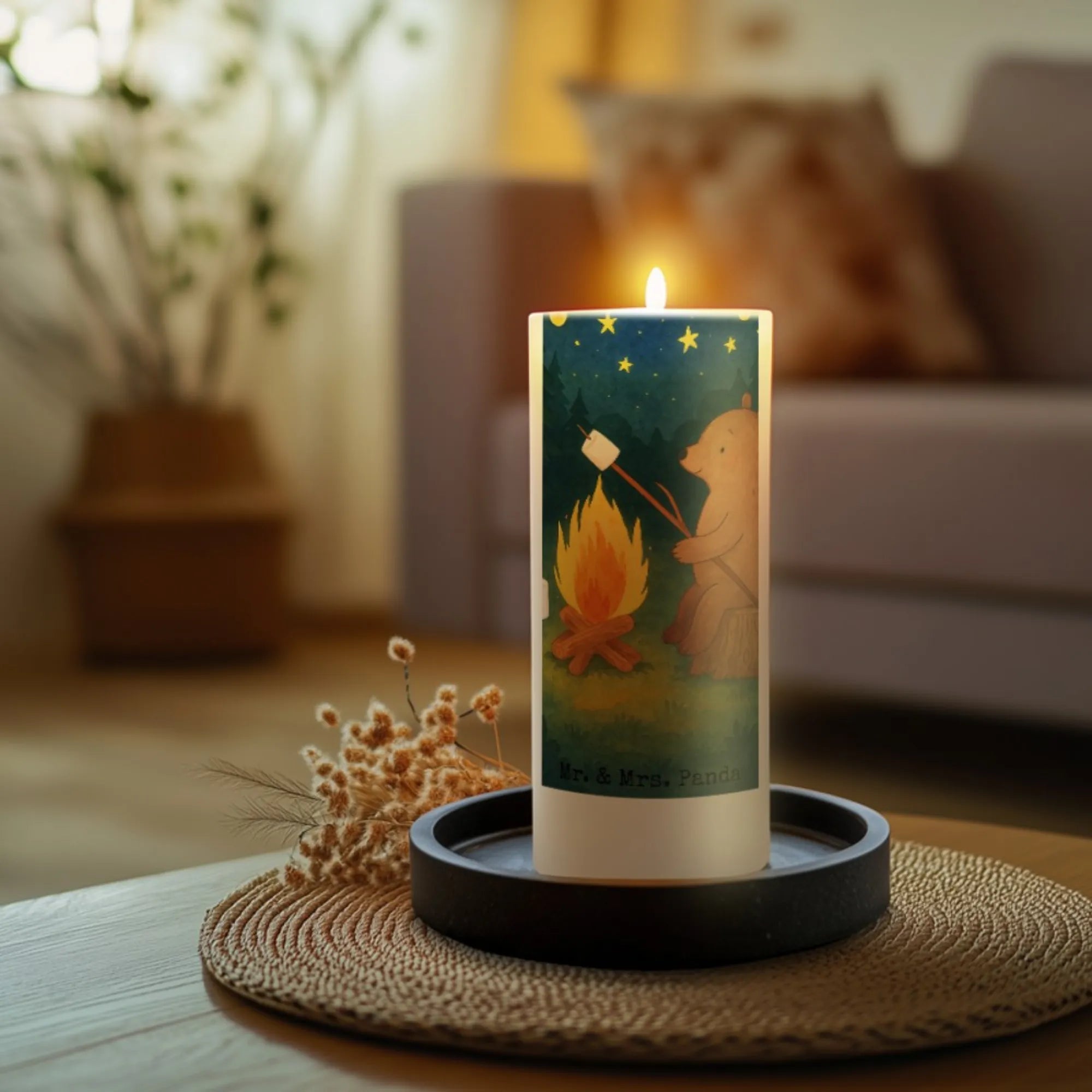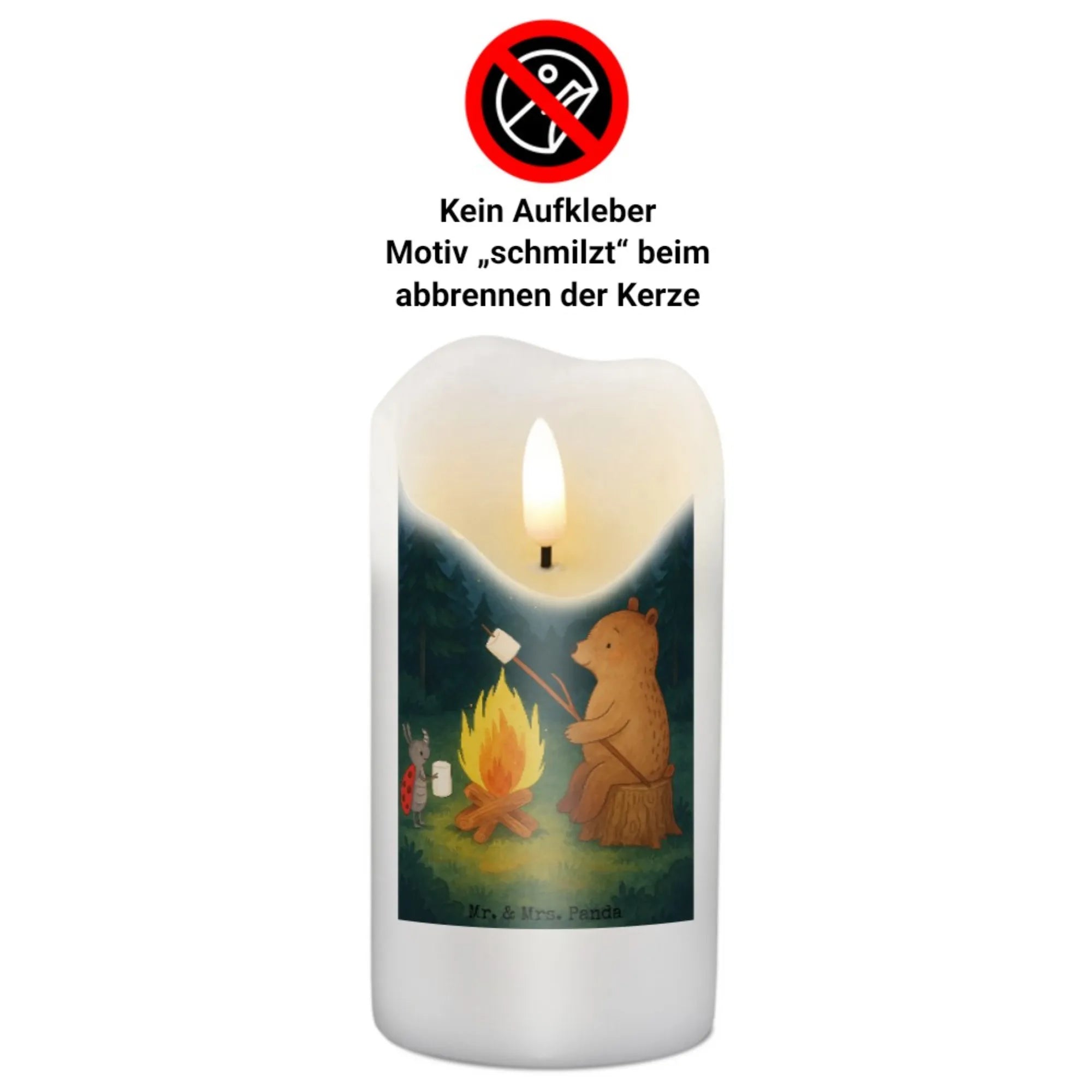 Kerze Bär & Marienkäfer Lagerfeuer Design - 29 x 8 cm XL - mit Spruch