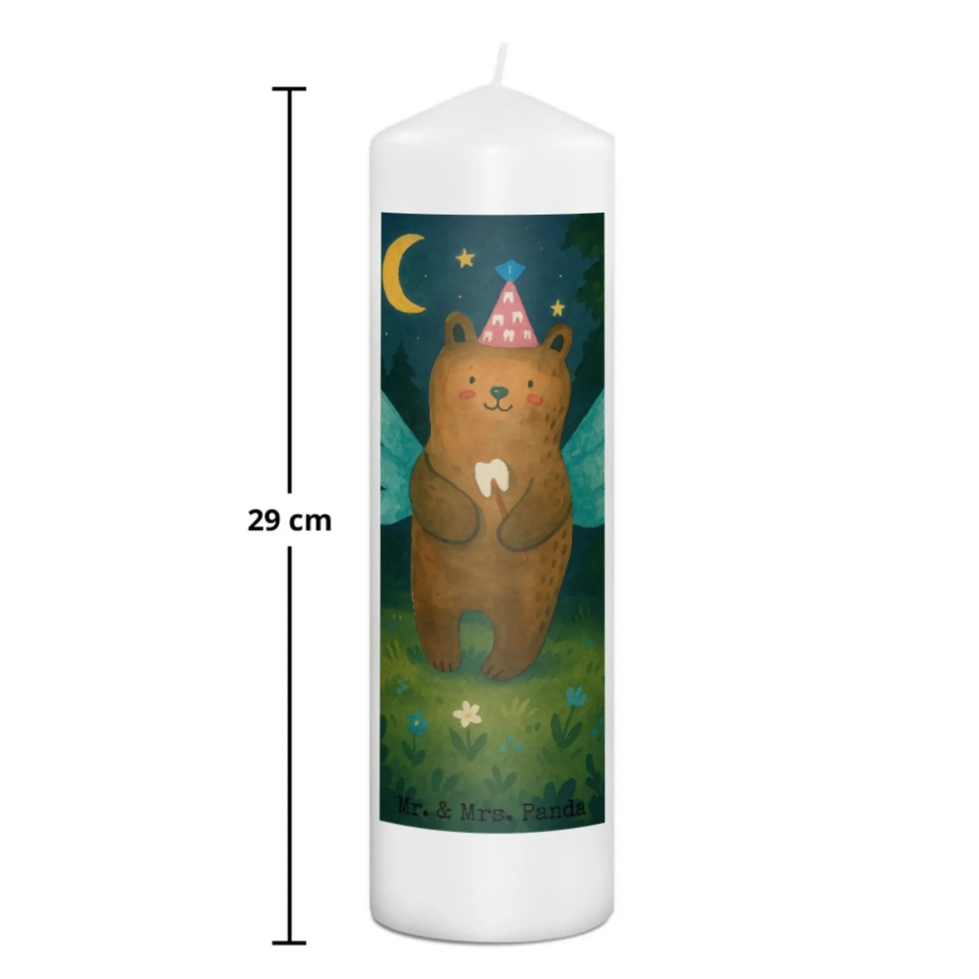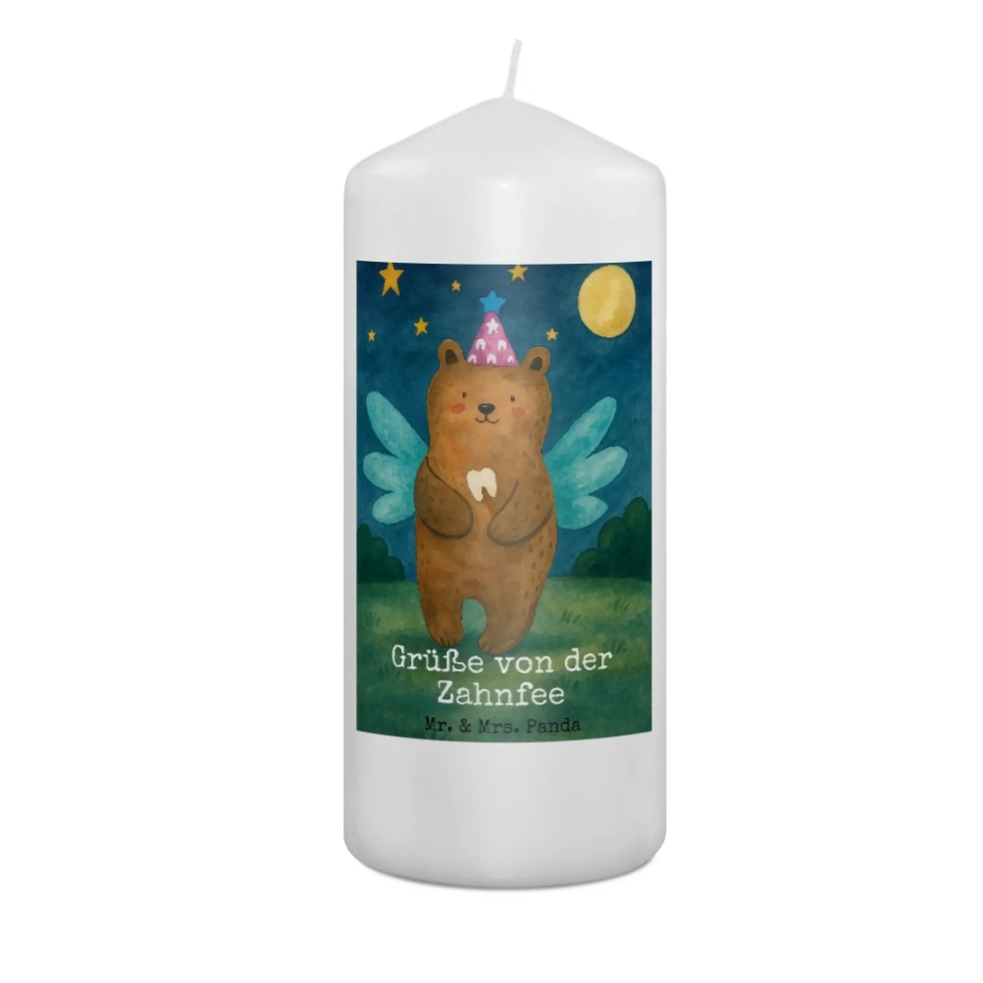 Kerze Bär Zahnfee Design - 19 x 8 cm - mit Spruch