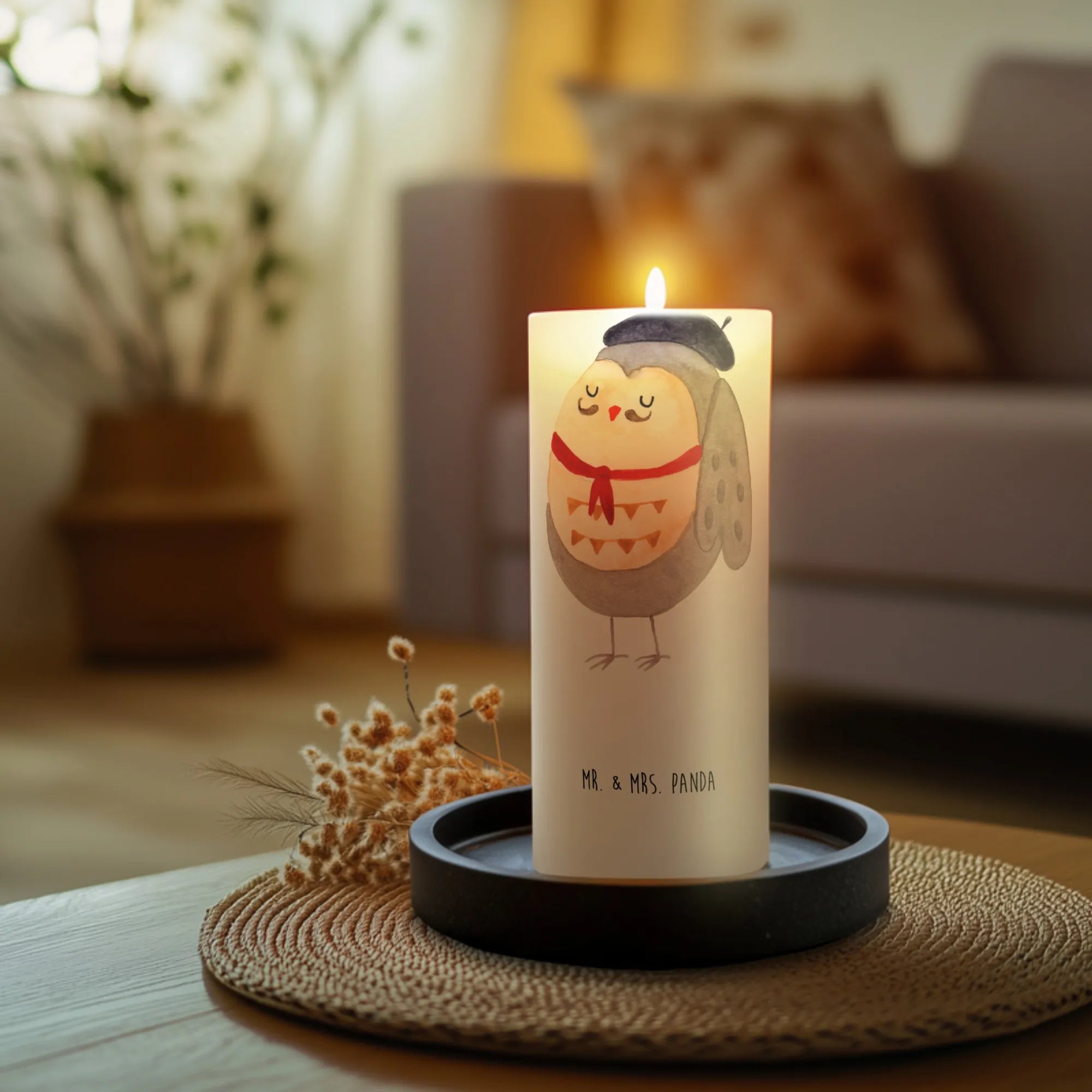 Pflege sie einfach mit einem sanften Reinigungsmittel und genieße ihre Schönheit. Die Eulen Kollektion von Mr. & Mrs. Panda bietet dir viele weitere bezaubernde Produkte mit Eulenmotiven. Daher ist diese Kerze nicht nur ein tolles Geschenk, sondern auch eine schöne Ergänzung für dein eigenes Zuhause.
