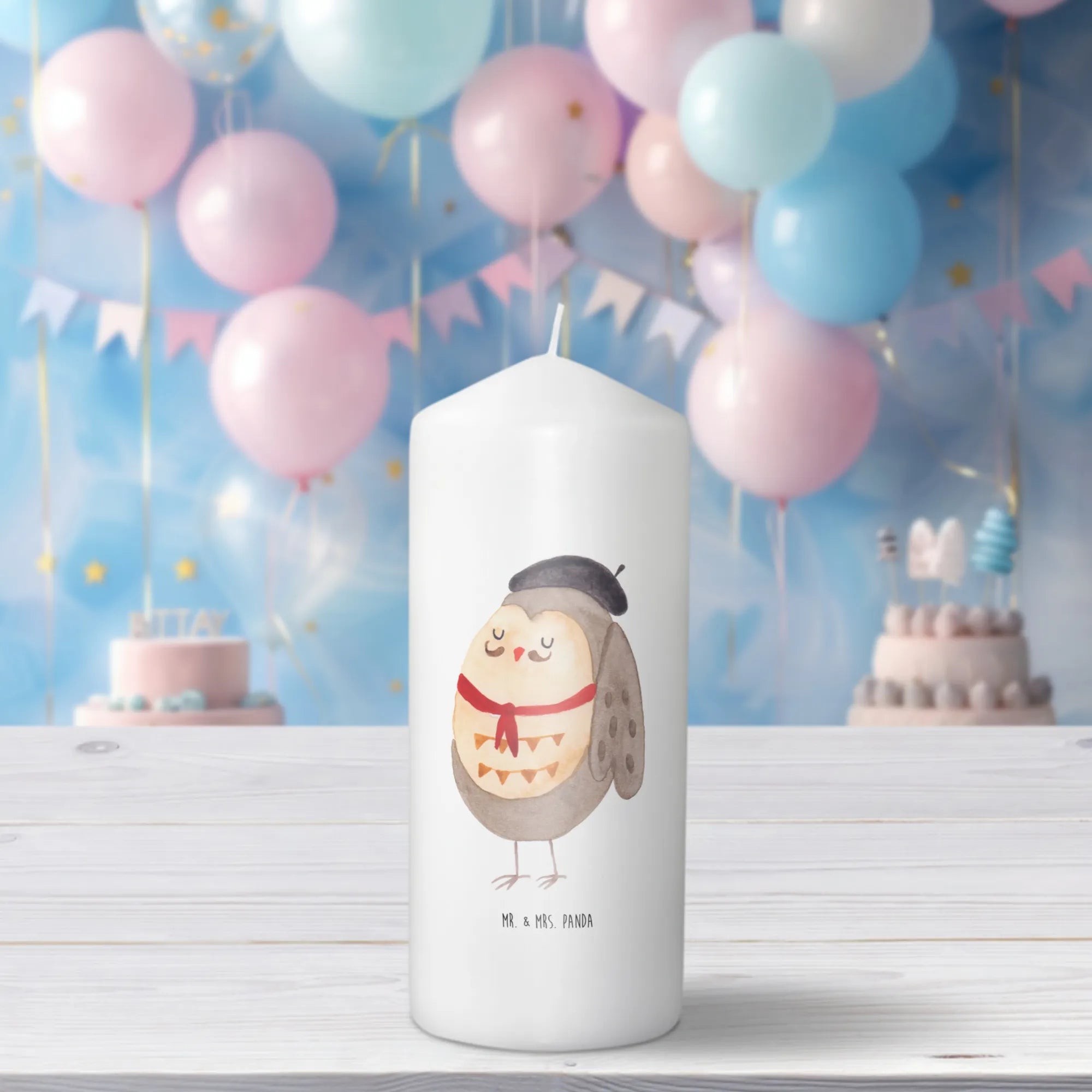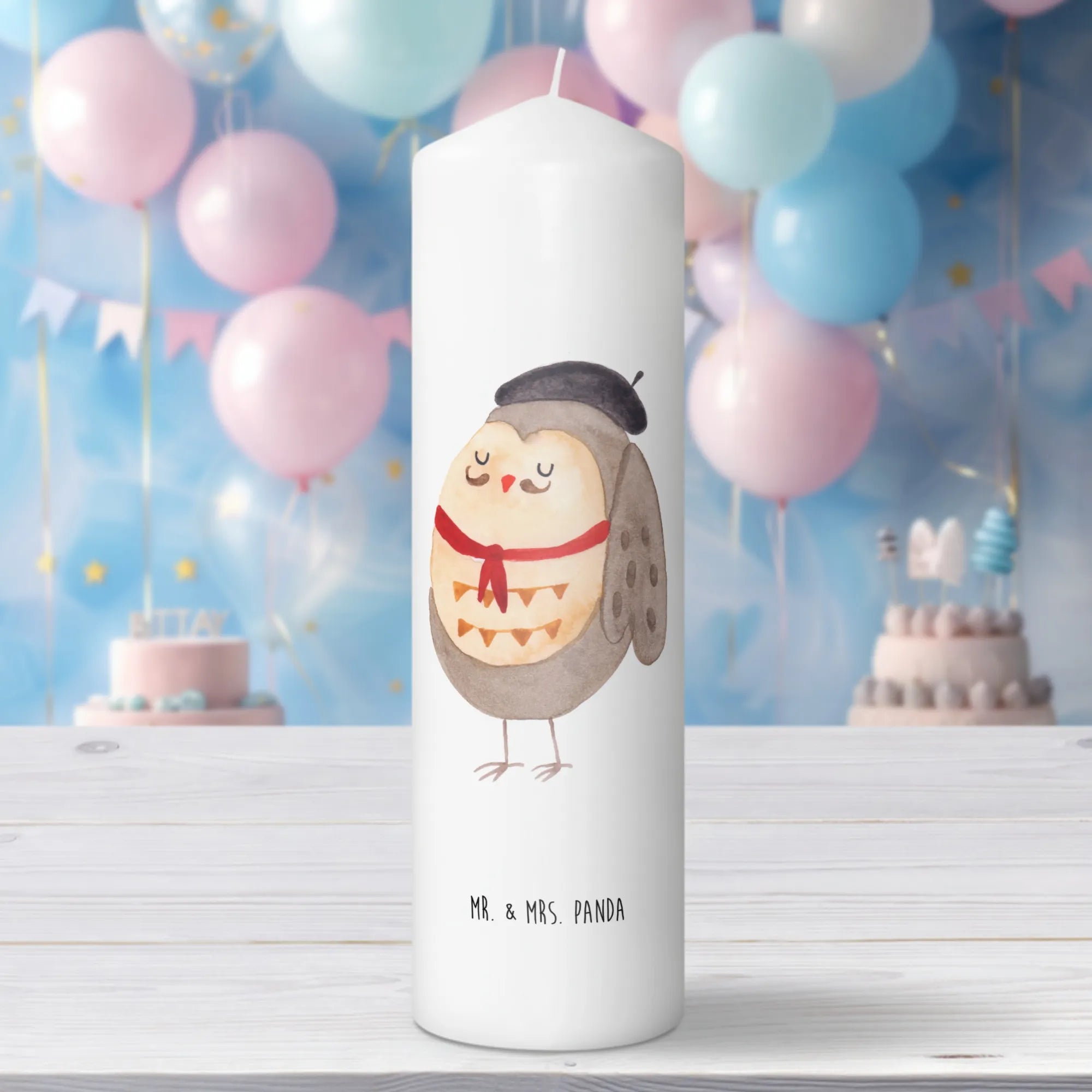 Die wunderschöne Kerze Eule Französisch von Mr. & Mrs. Panda bringt ein Stück französische Lebensfreude in dein Zuhause. Mit einem liebevoll gestalteten Eulenmotiv, das einen charmanten Franzosen darstellt, wird diese Kerze zum perfekten Geschenk für viele Anlässe. Ob zur Taufe, zur Kommunion oder als Geburtstagsgeschenk – diese Kerze ist ein Highlight bei jedem Fest.