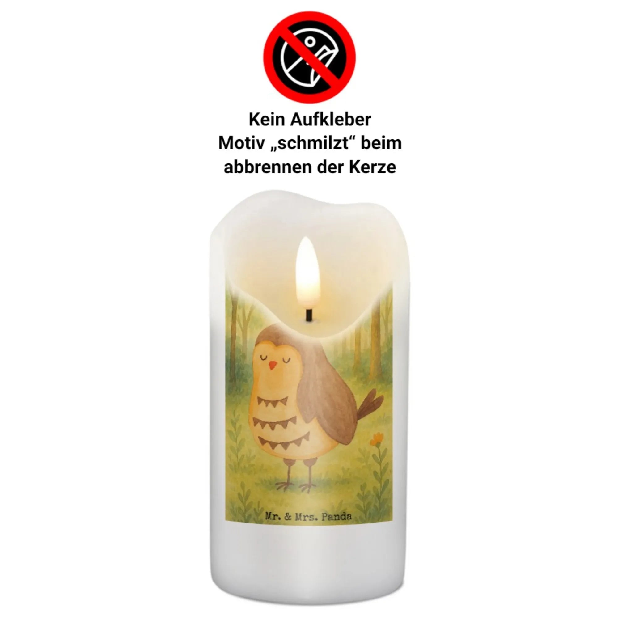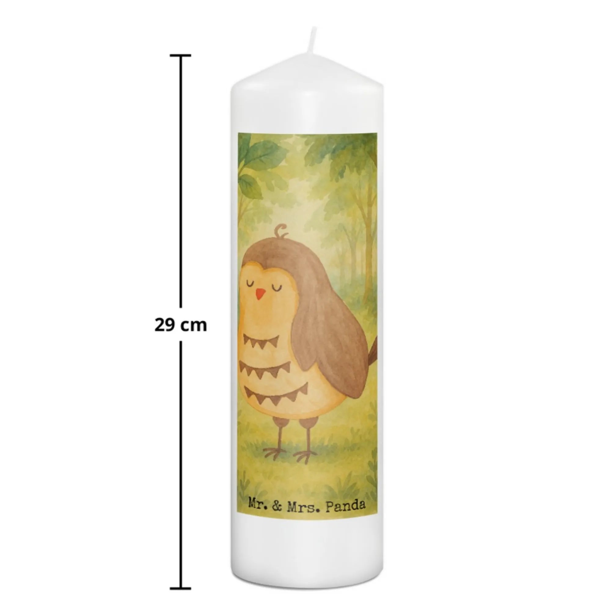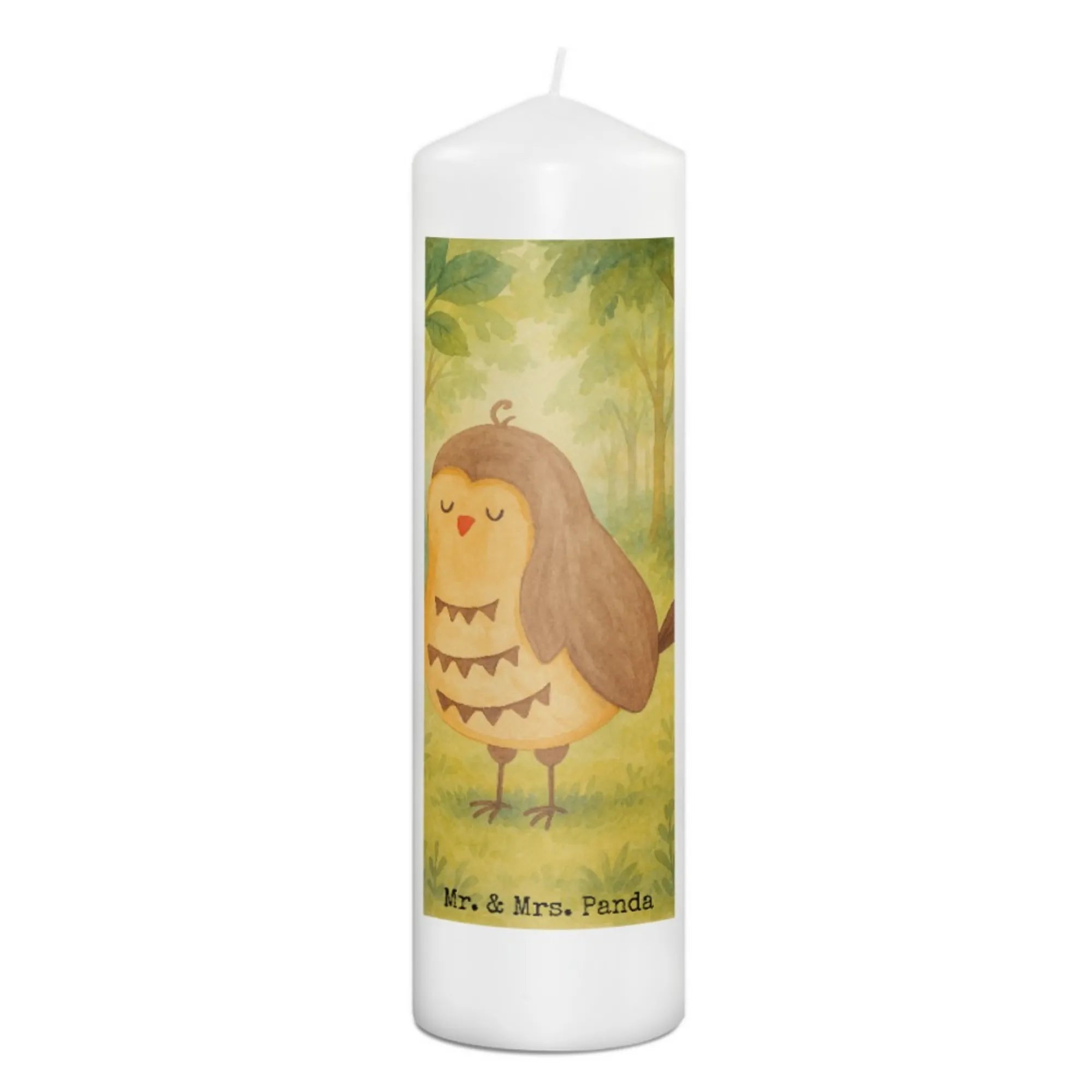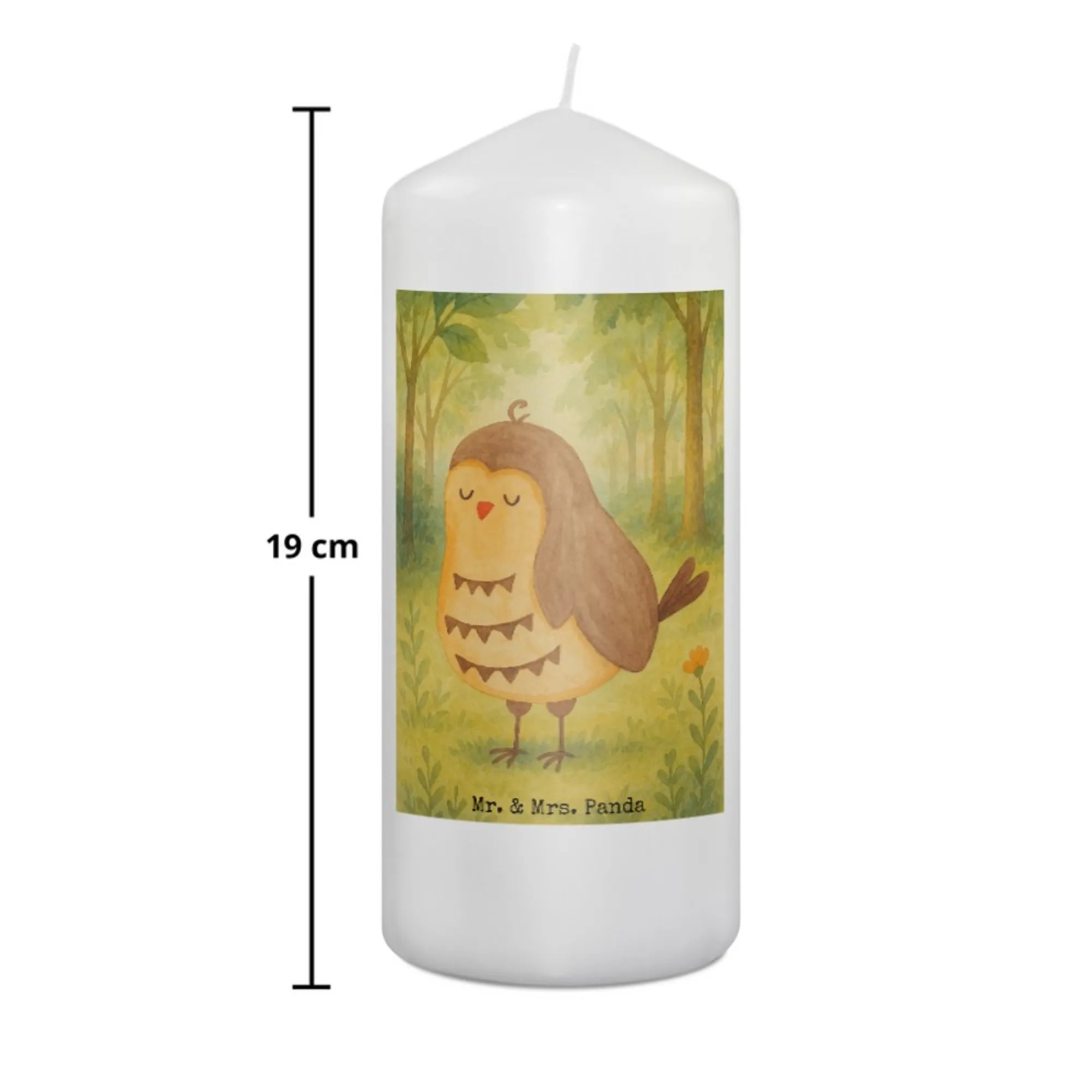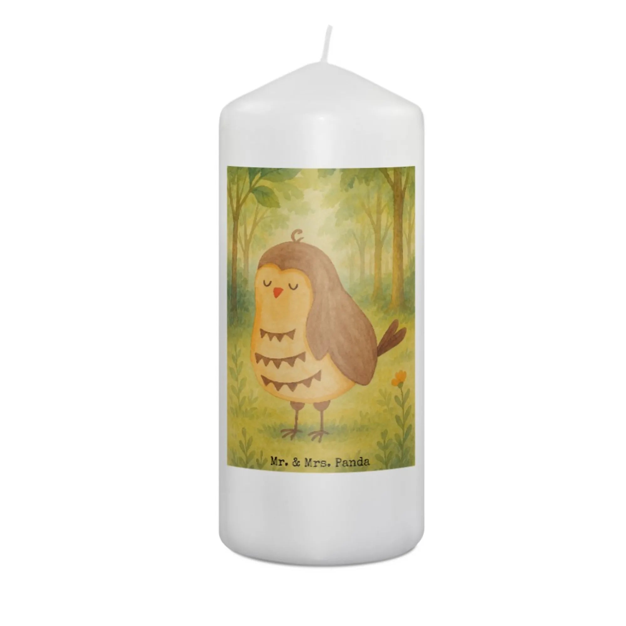 Kerze Eule Zufrieden Design - 15 x 7 cm - mit Spruch