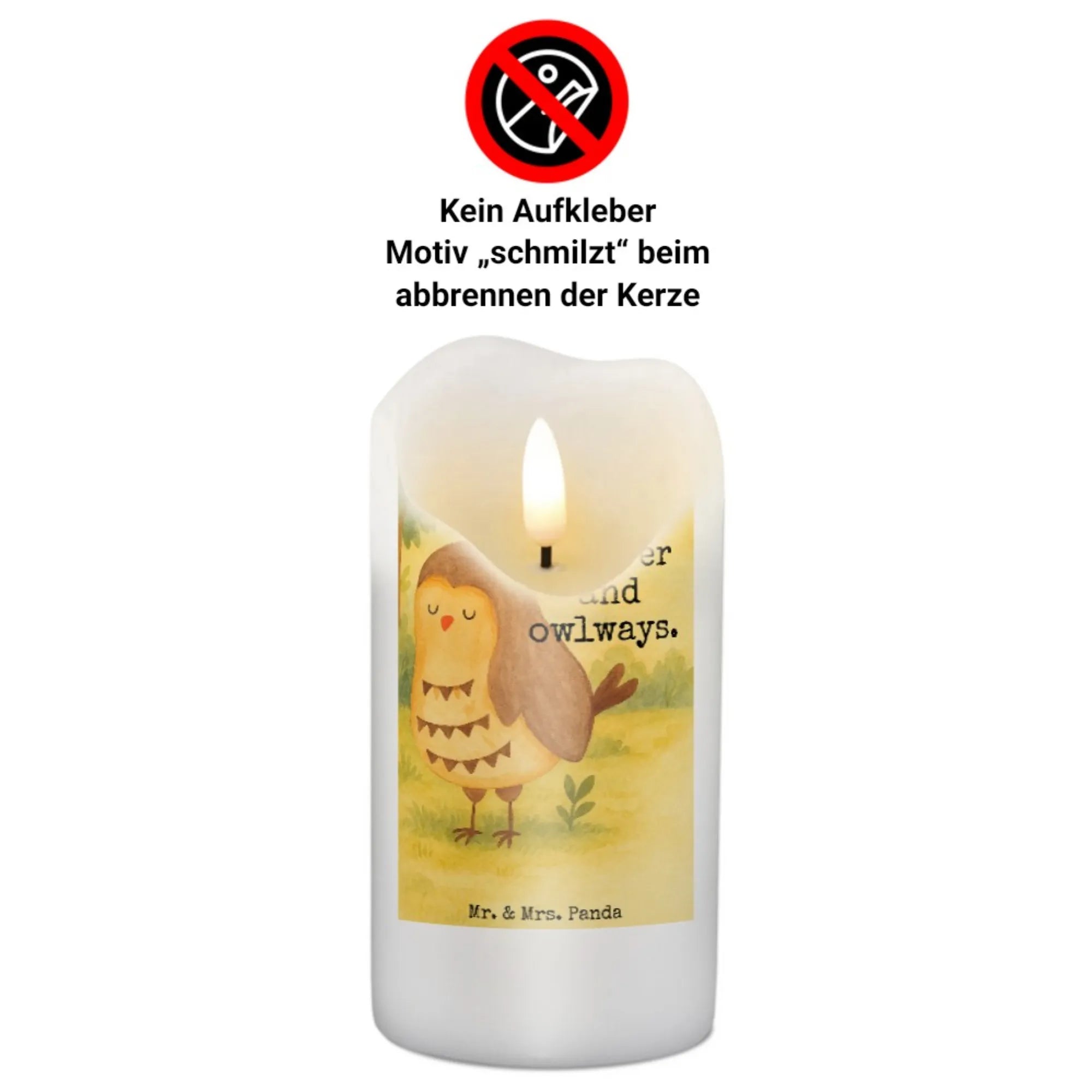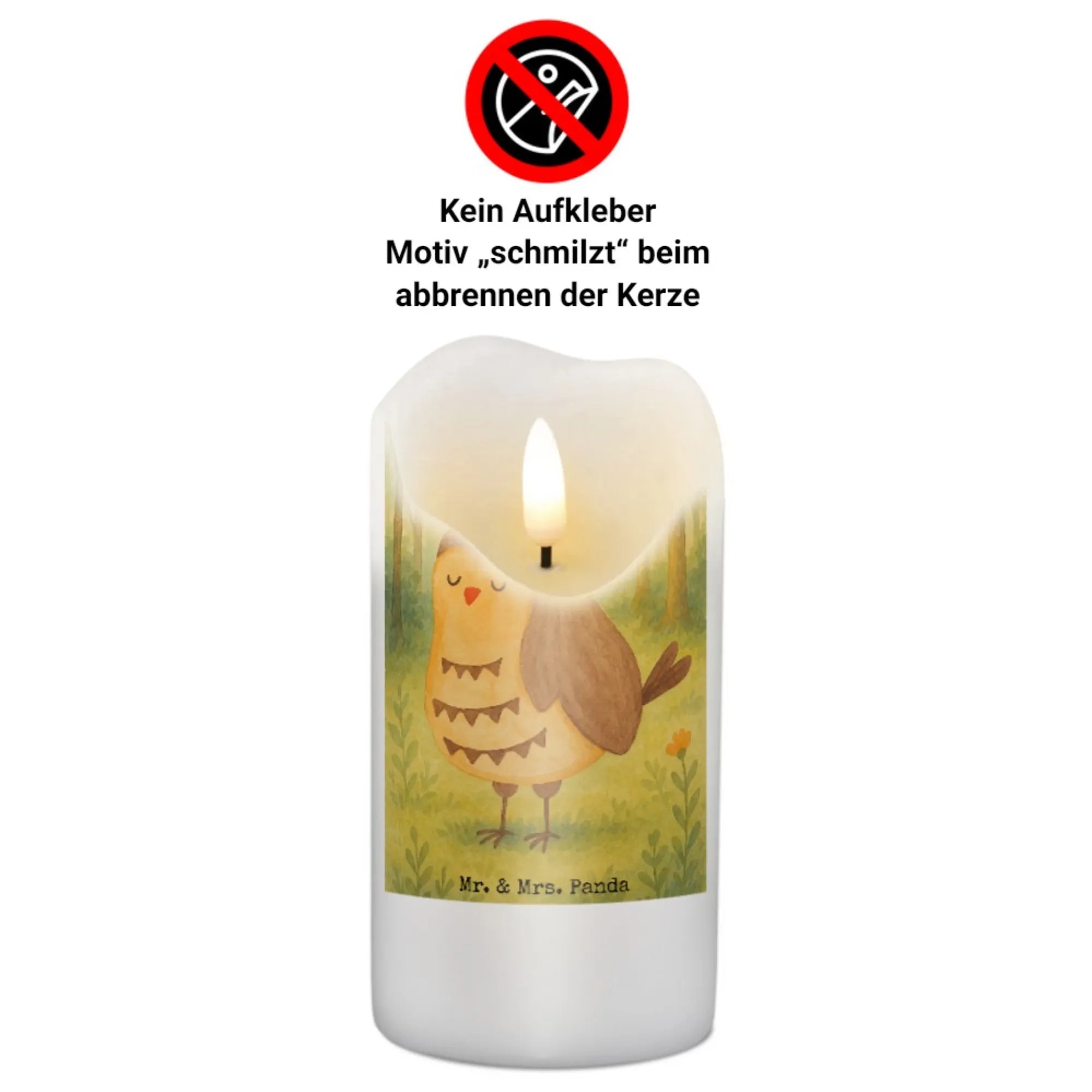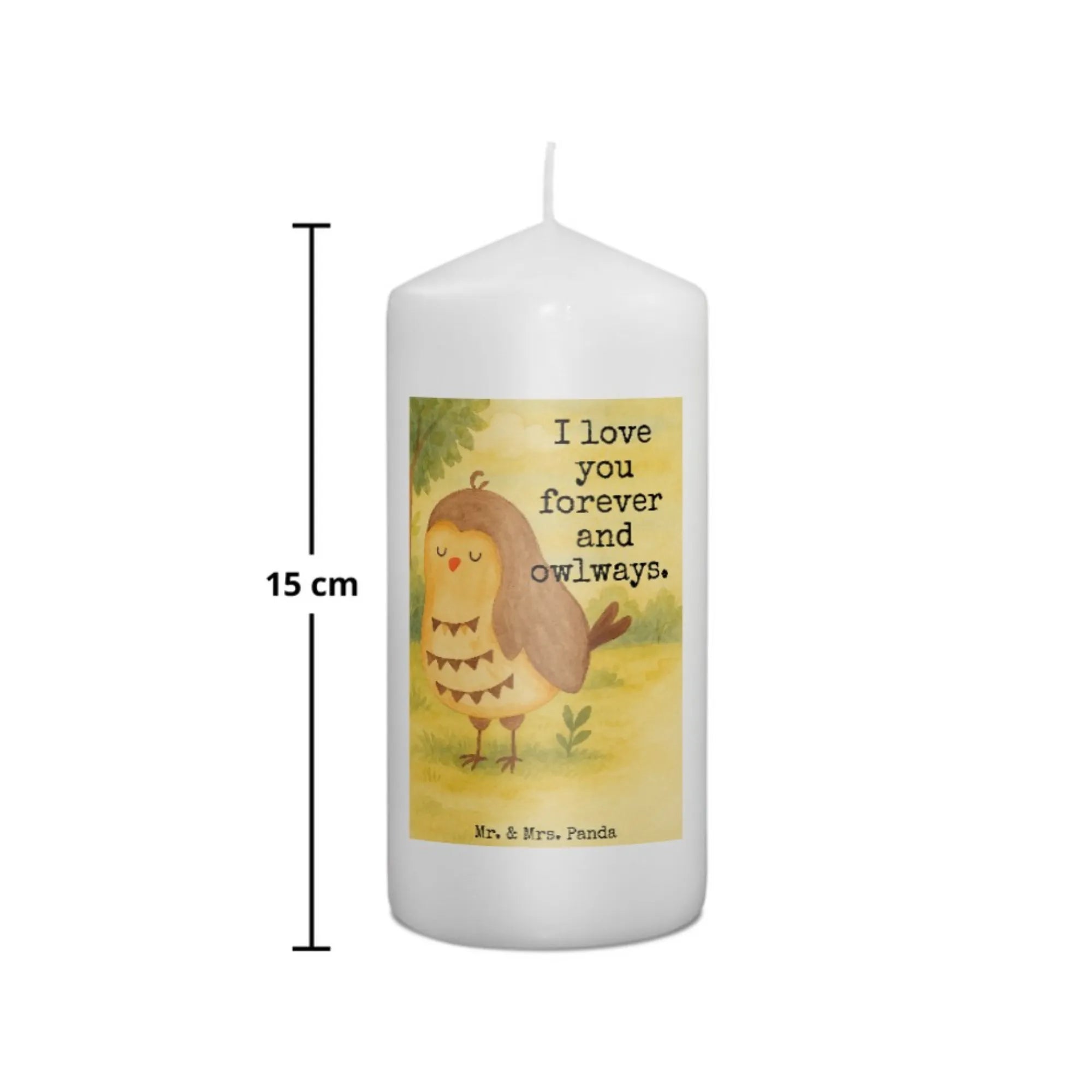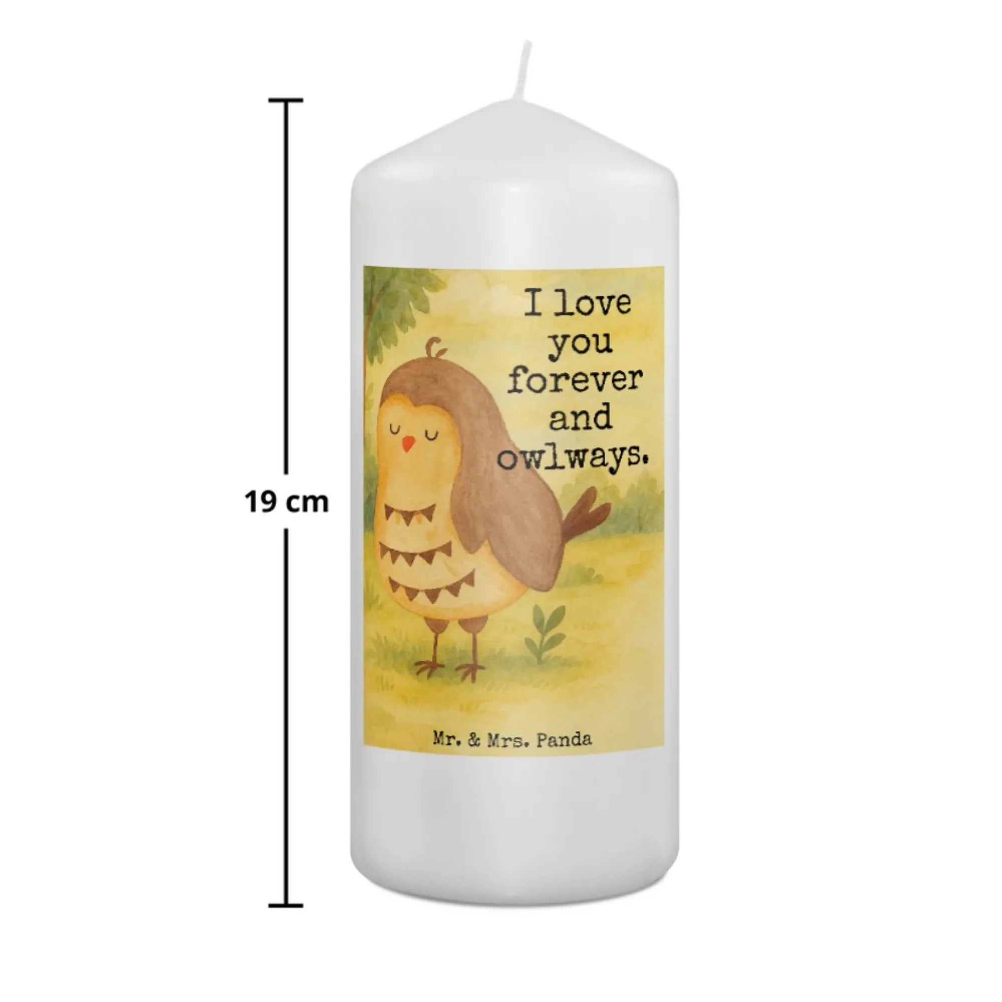 Kerze Eule Zufrieden Design - 15 x 7 cm - mit Spruch