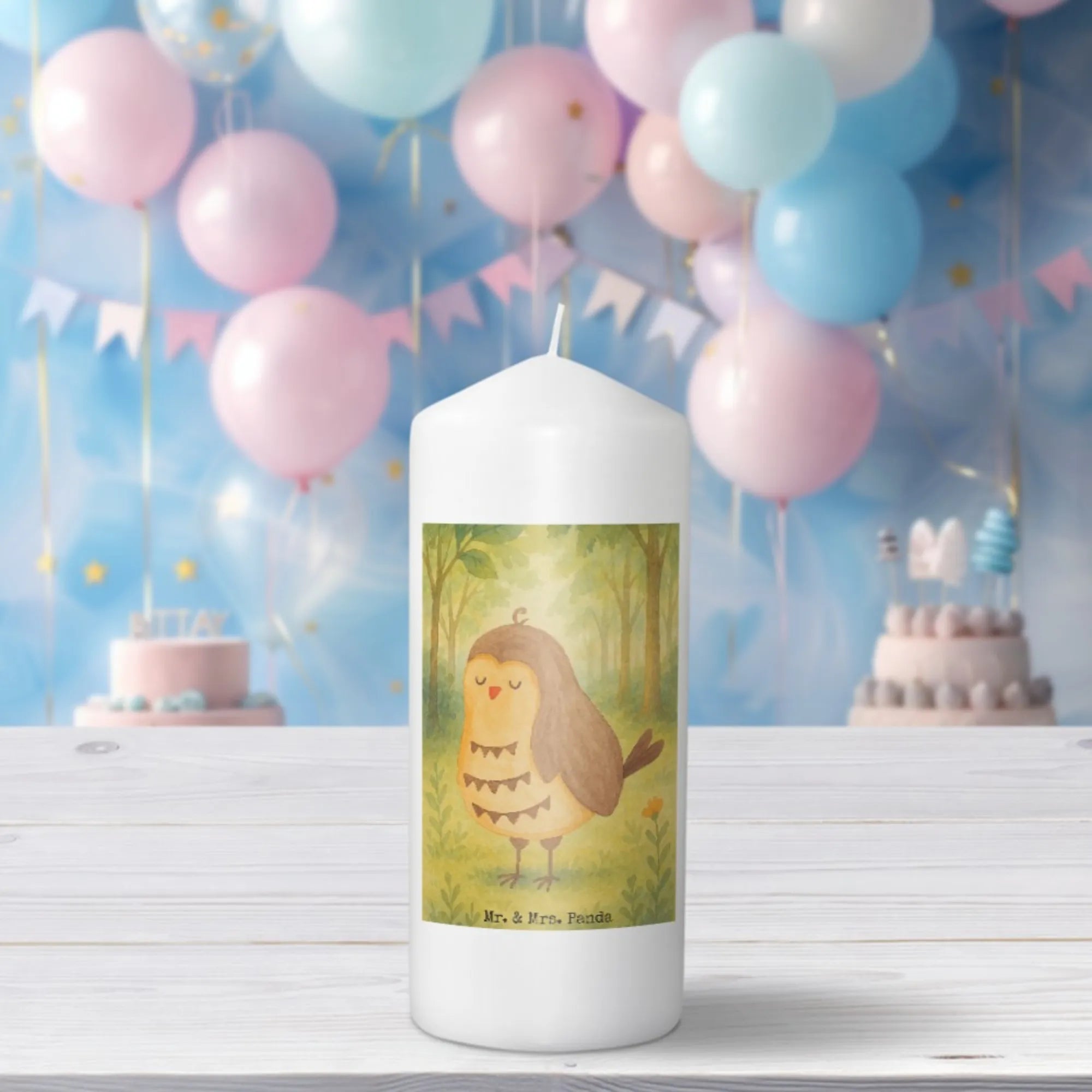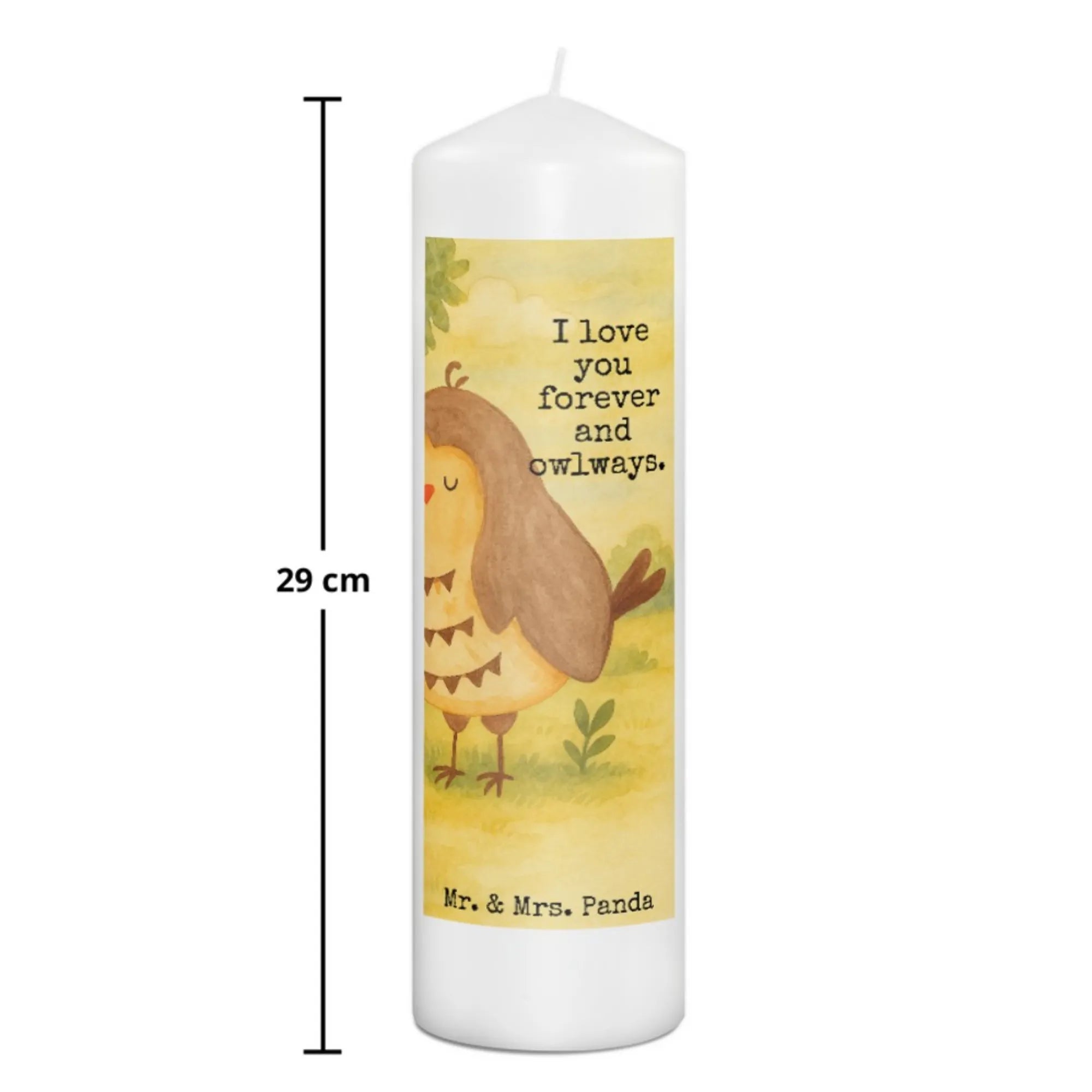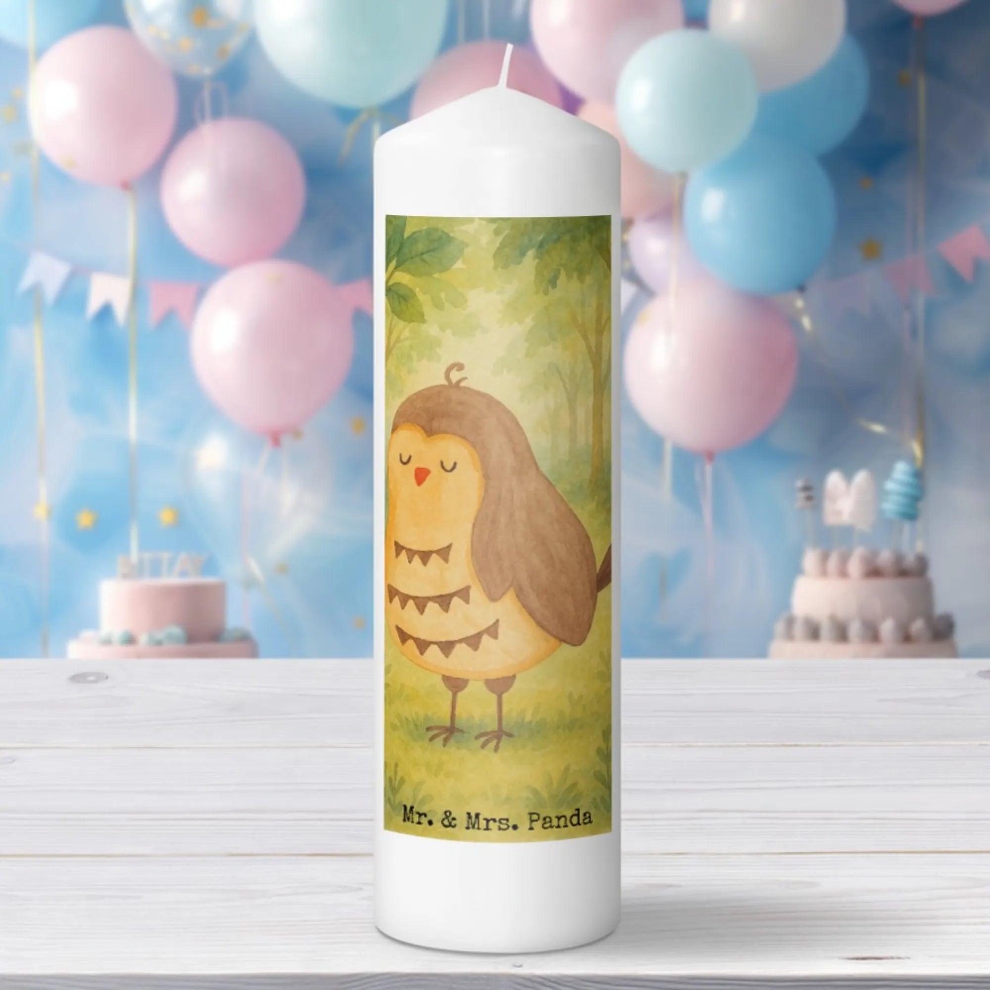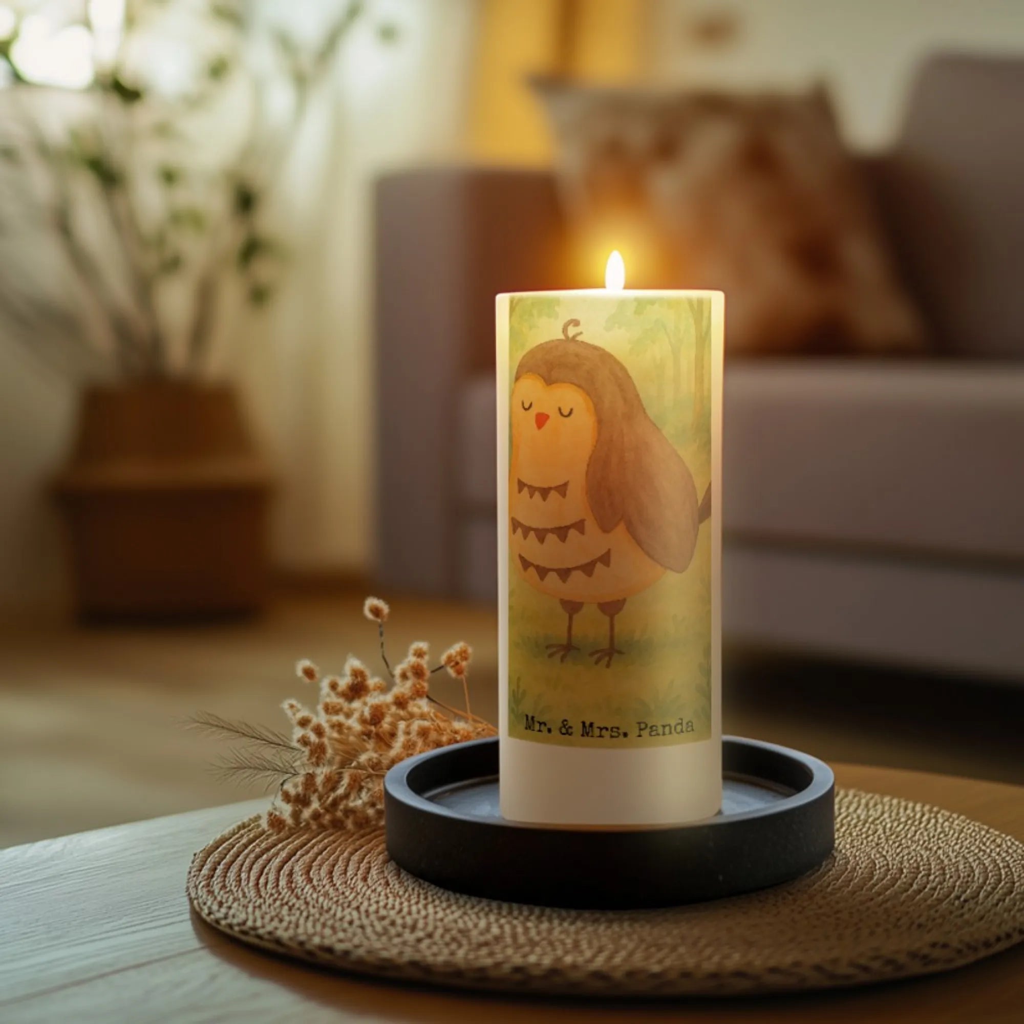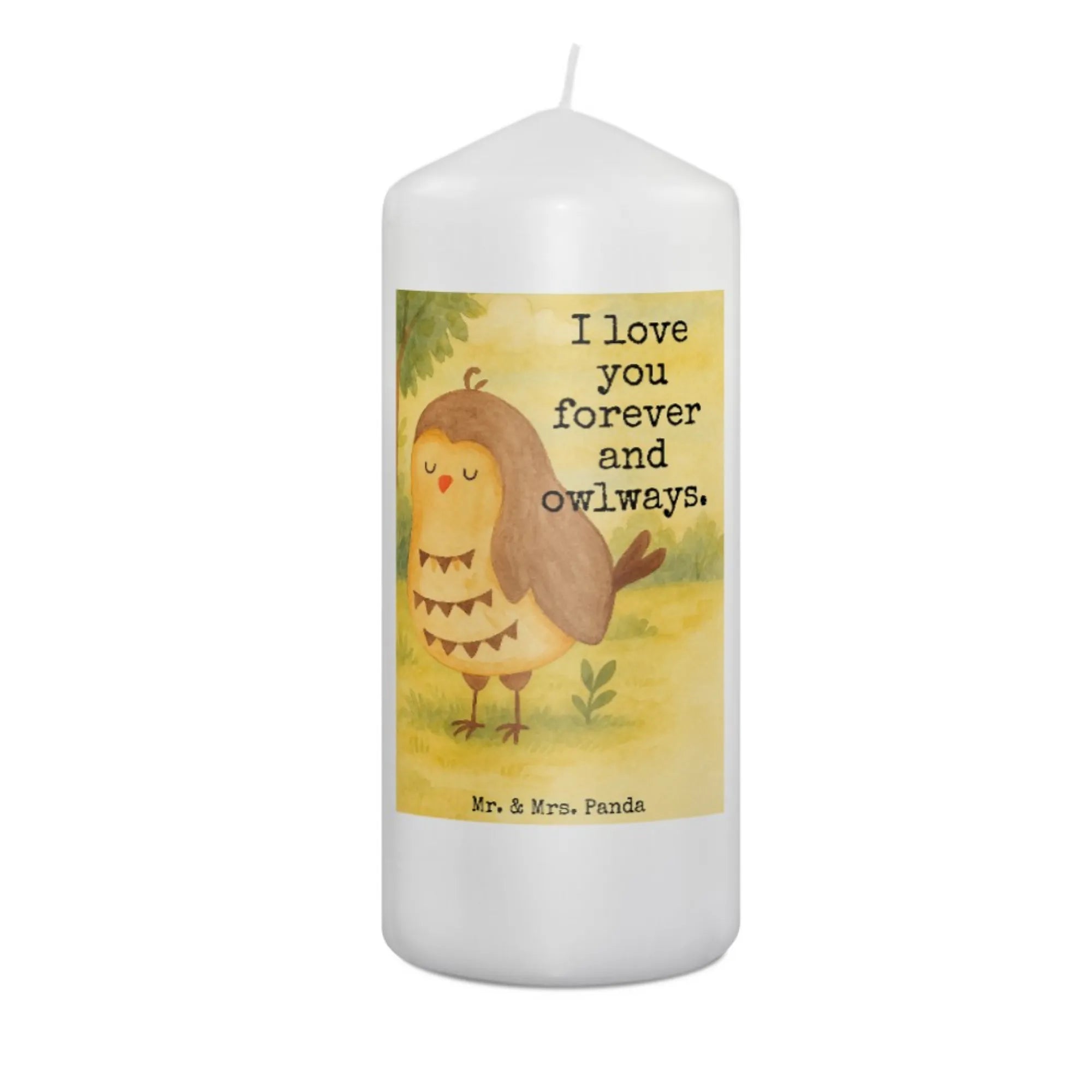 Kerze Eule Zufrieden Design - 15 x 7 cm - mit Spruch