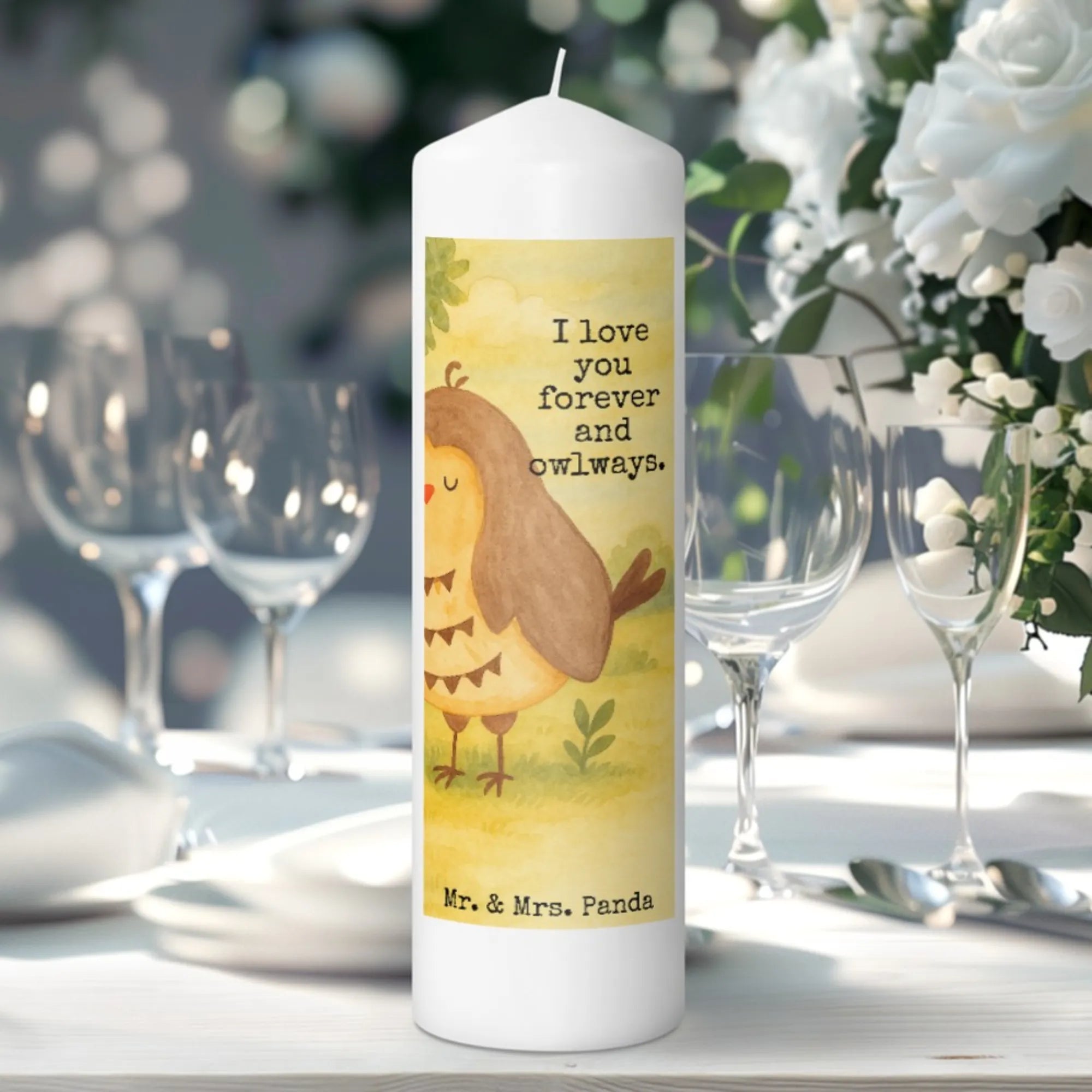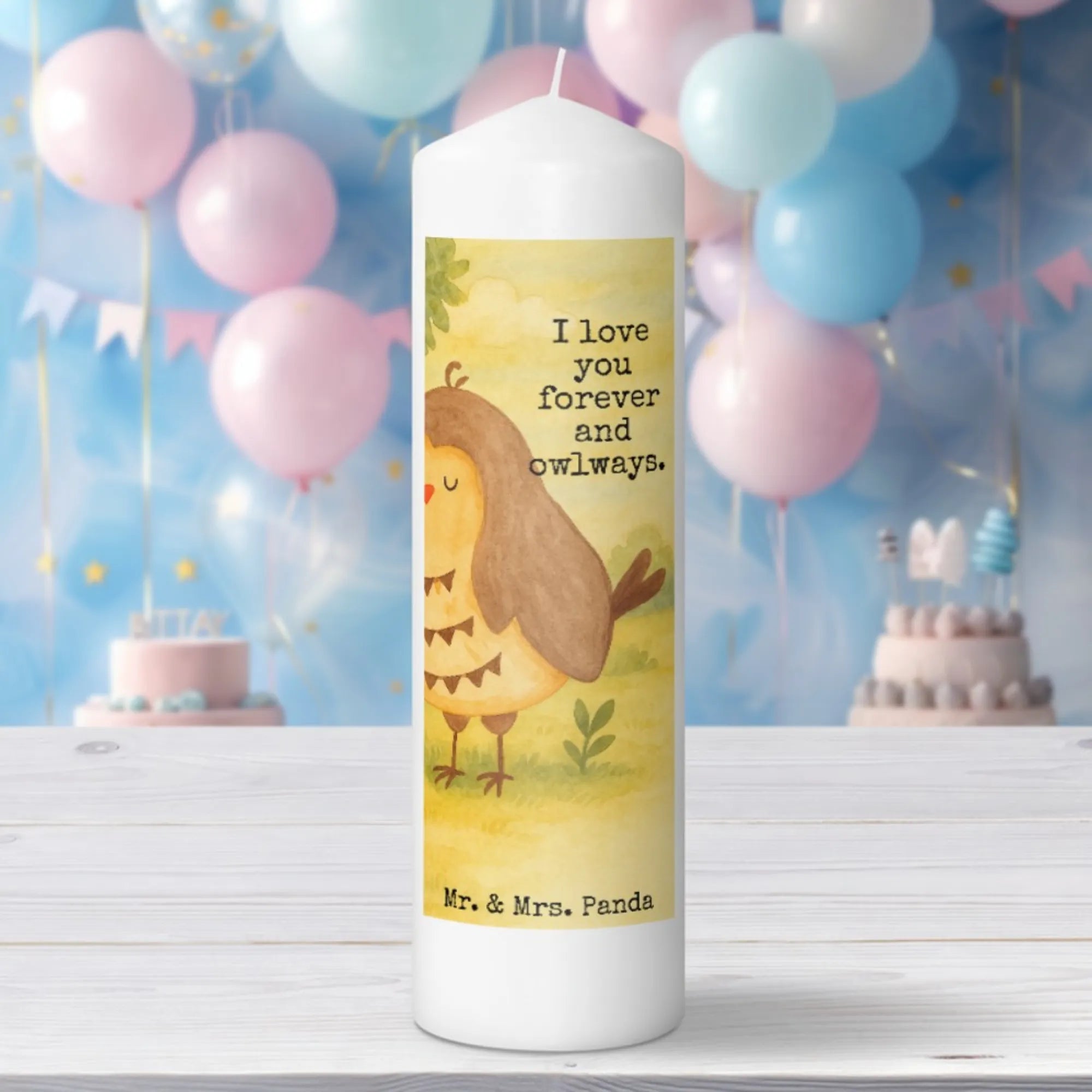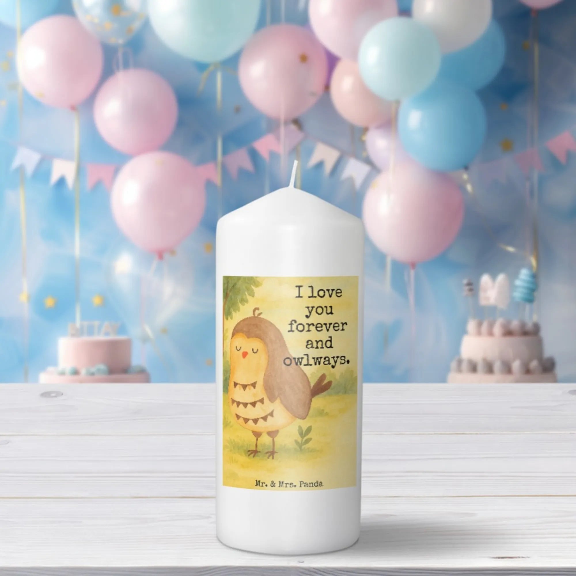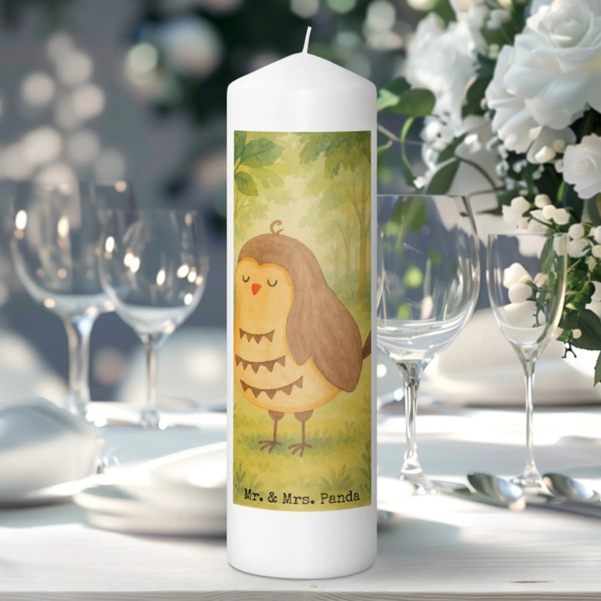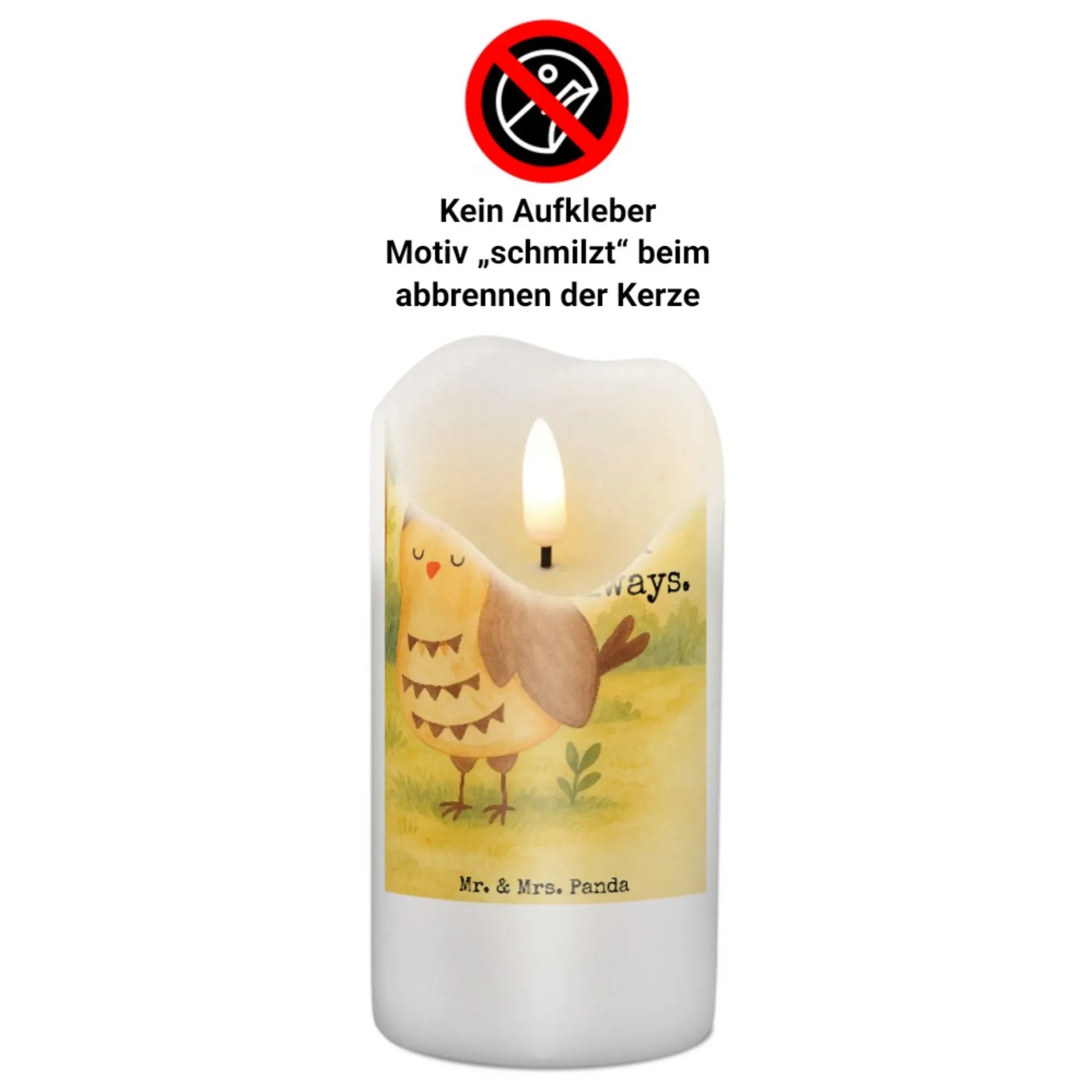 Kerze Eule Zufrieden Design - 15 x 7 cm - mit Spruch