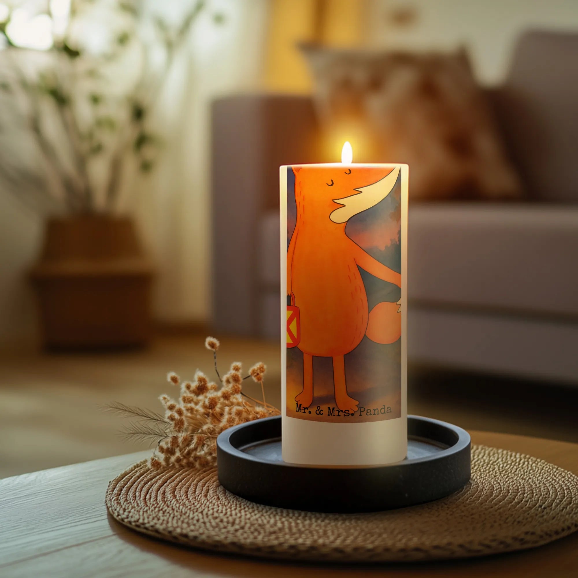 Kerze Fuchs Laterne Design - 19 x 8 cm - mit Spruch