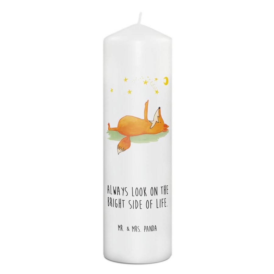 Die Kerze hat die Maße 290 mm x 80 mm und besteht aus hochwertigem Paraffinwachs, das nicht nur gut riecht, sondern auch eine ultralange Brenndauer bietet. Das liebevoll gestaltete Motiv zeigt einen süßen Fuchs, der auf dem Rücken liegt und fasziniert in den Sternenhimmel schaut. Dieses Motiv spricht vor allem Menschen an, die das Träumen lieben und gerne Zeit in der Natur verbringen. Neben schönen Designs bietet die Kerze auch eine kleine Botschaft: "Always look on the bright side of life." Diese positiven Worte können jedem helfen, die kleinen Freuden des Lebens zu erkennen und zu schätzen.