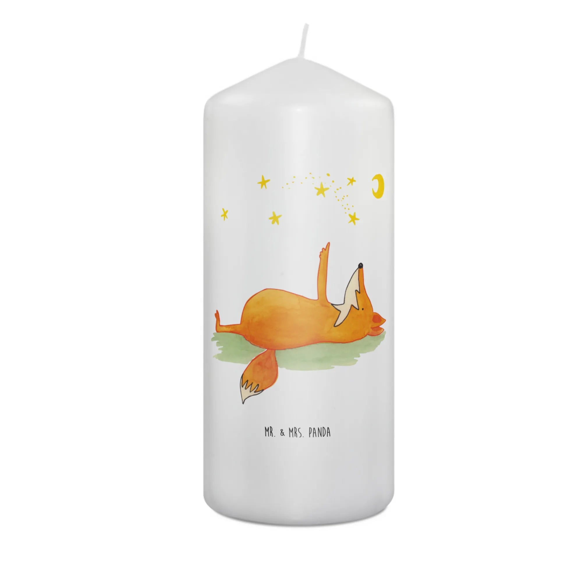 Die Fuchs Sterne Kerze von Mr. & Mrs. Panda ist das perfekte Geschenk für jeden Anlass. Sie kombiniert Ästhetik, Wärme und positive Vibes in einem wunderbaren Produkt. Mit ihrem charmanten Fuchs-Motiv, der lässig auf dem Rücken liegt und in den Sternenhimmel schaut, zaubert sie jedem ein Lächeln ins Gesicht.