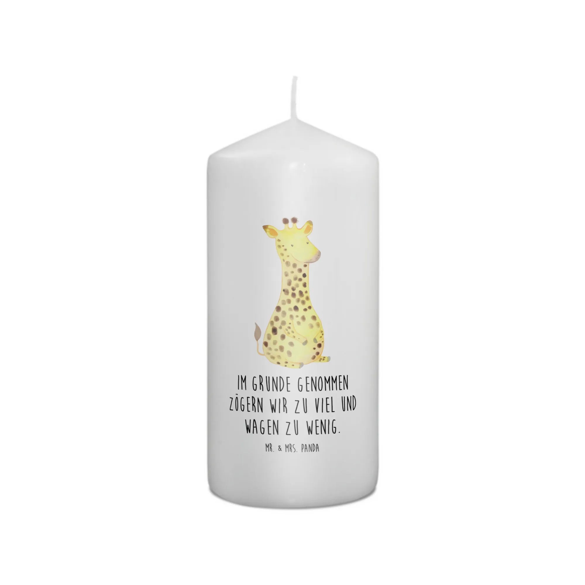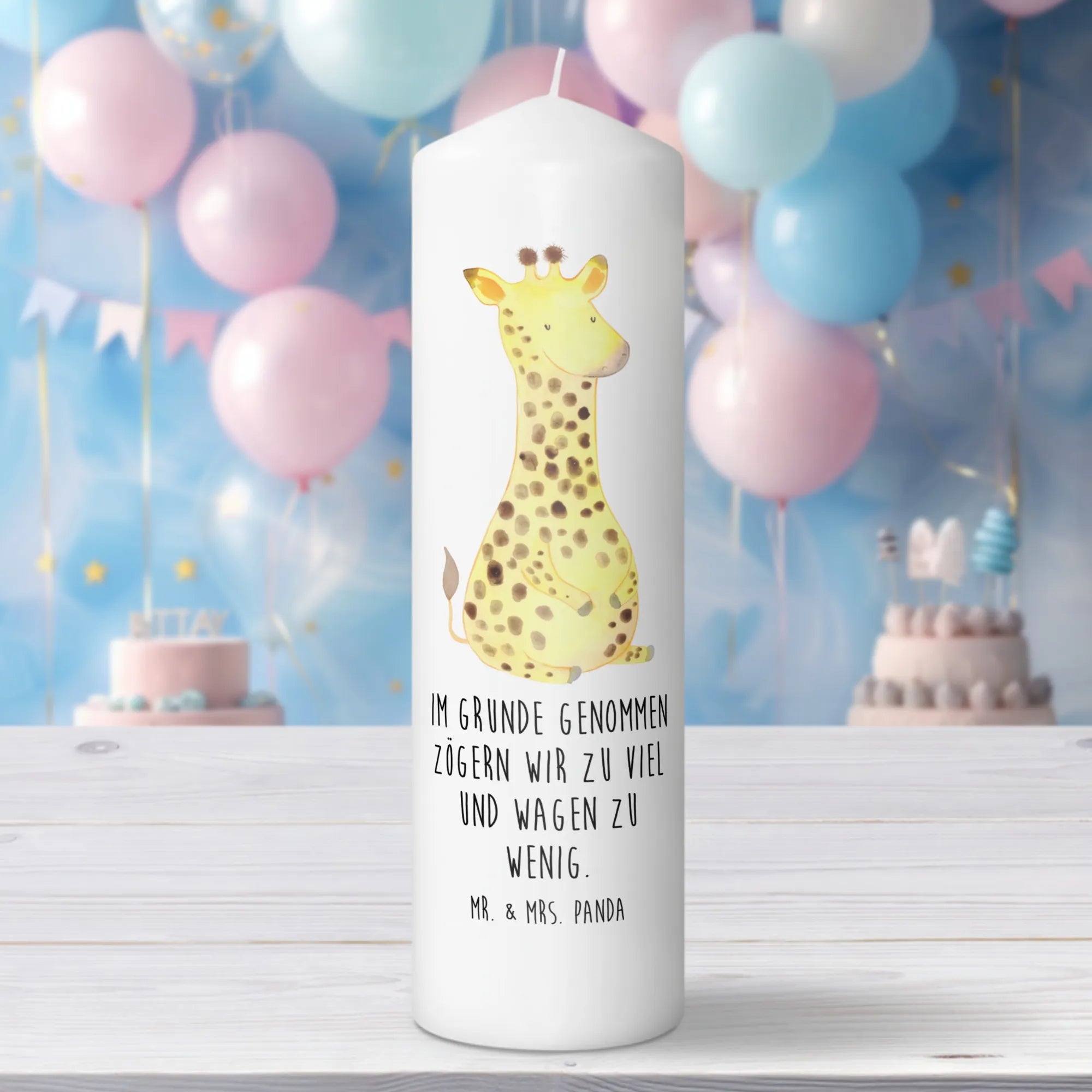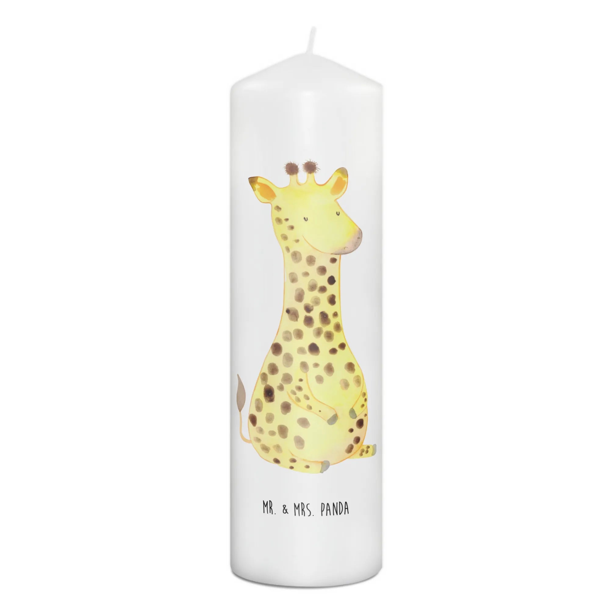 Die wunderschöne Taufkerze mit dem Motiv "Giraffe Zufrieden" aus der Afrika Kollektion von Mr. & Mrs. Panda ist das perfekte Geschenk für jeden Anlass!