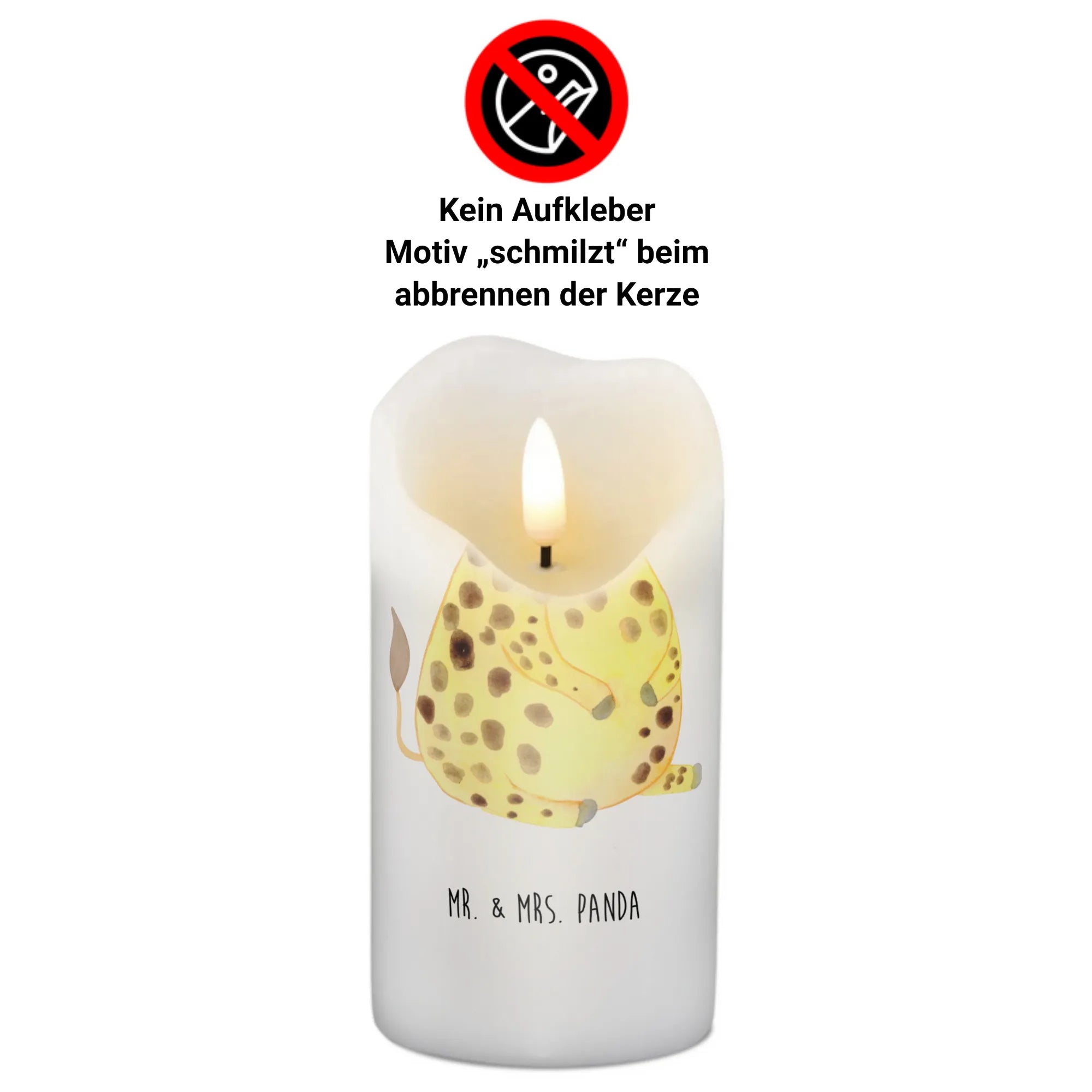 Stöbere durch die Afrika Kollektion und entdecke die bezaubernden Motive von Mr. & Mrs. Panda, die speziell für Afrika-Fans kreiert wurden. Die zarte transparente Wachsschicht, die beim Abbrennen entsteht, macht das Kerzenlicht zu einem ganz besonderen Erlebnis. Achte jedoch darauf, die Kerze mit sanften Reinigungsmitteln zu pflegen, damit sie lange schön bleibt.