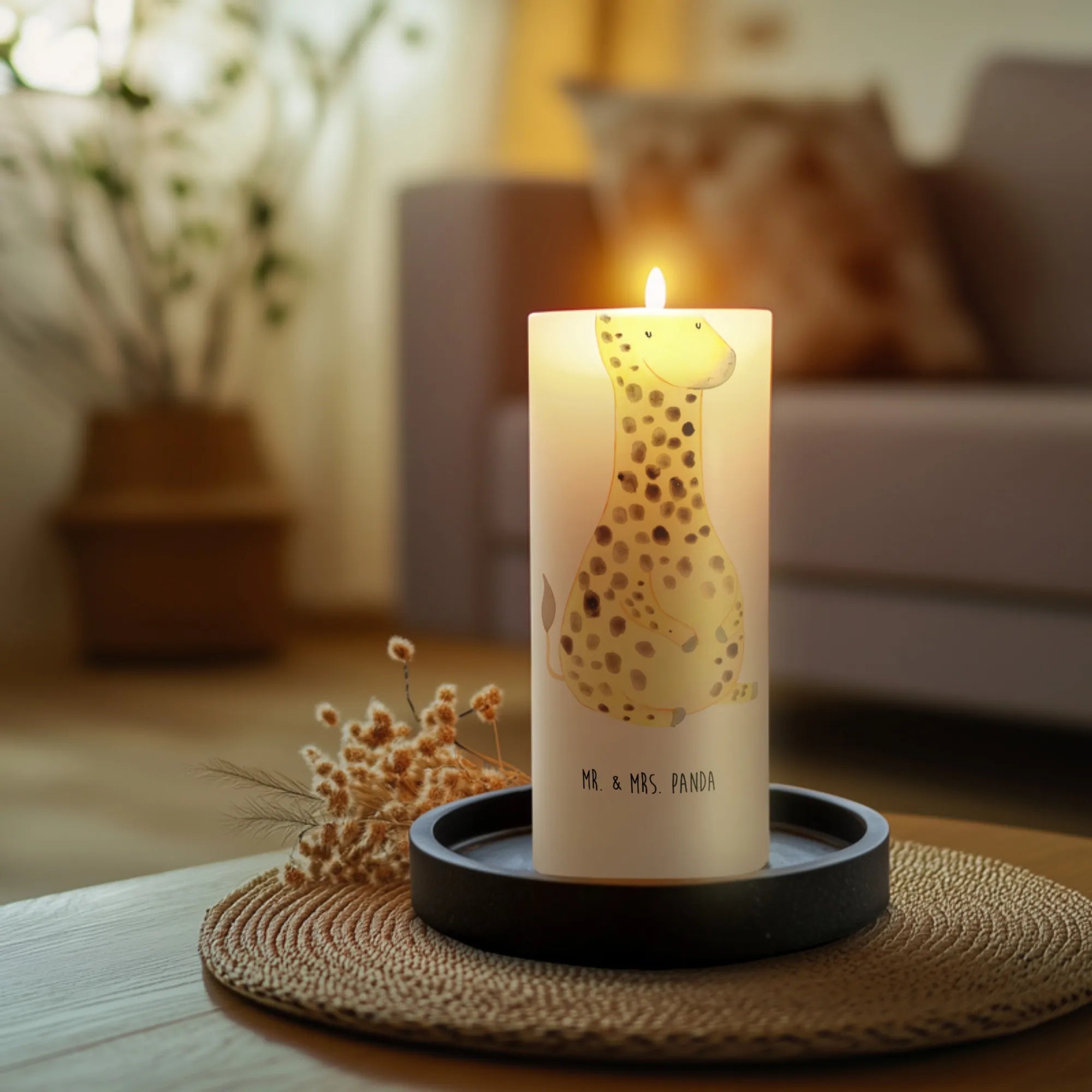 Die Kerze "Giraffe Zufrieden" aus der Afrika Kollektion von Mr. & Mrs. Panda ist das perfekte Geschenk für alle, die das Besondere lieben! Diese edle und wunderschöne Kerze zieht mit ihrem liebevoll handgezeichneten Giraffen-Motiv sofort die Aufmerksamkeit auf sich.