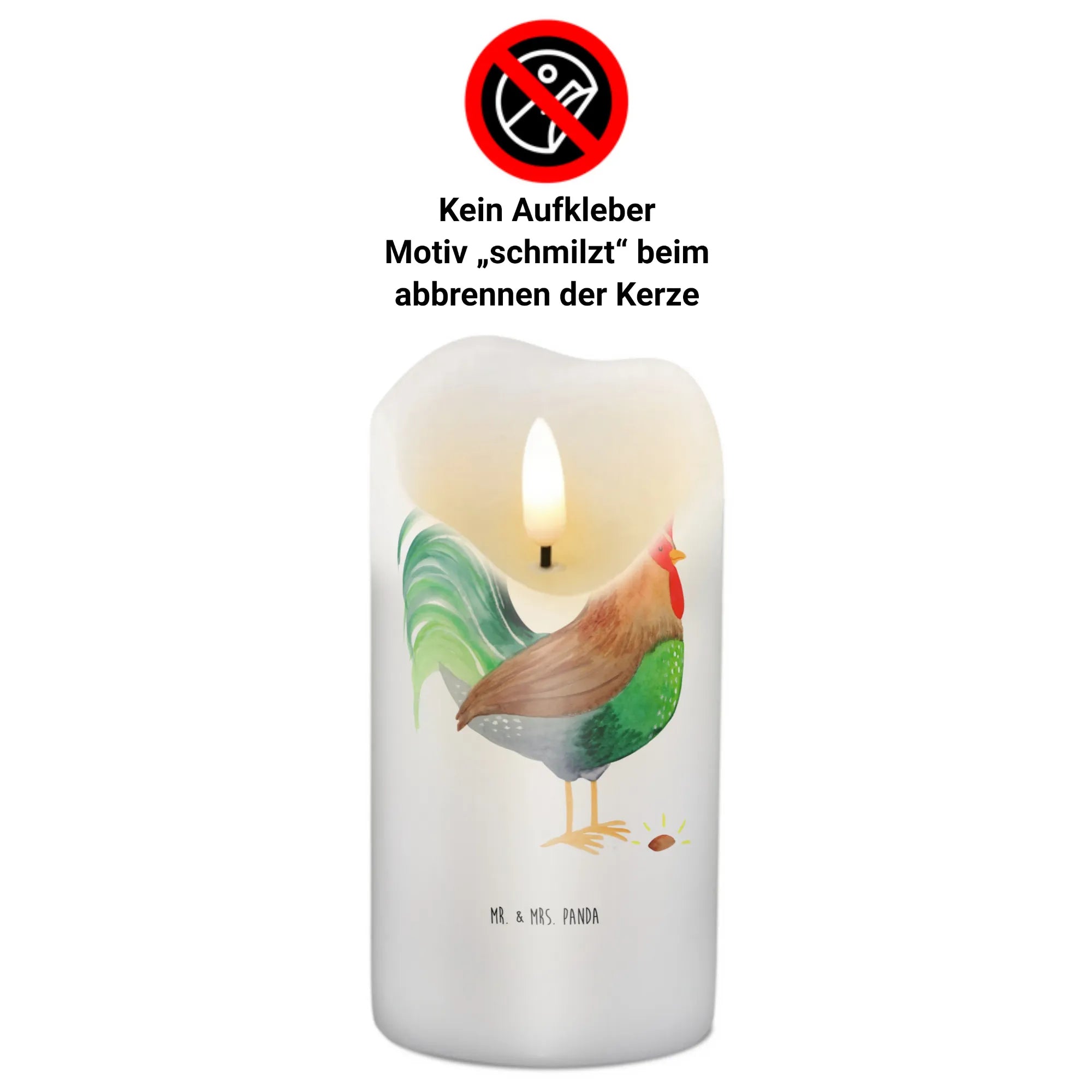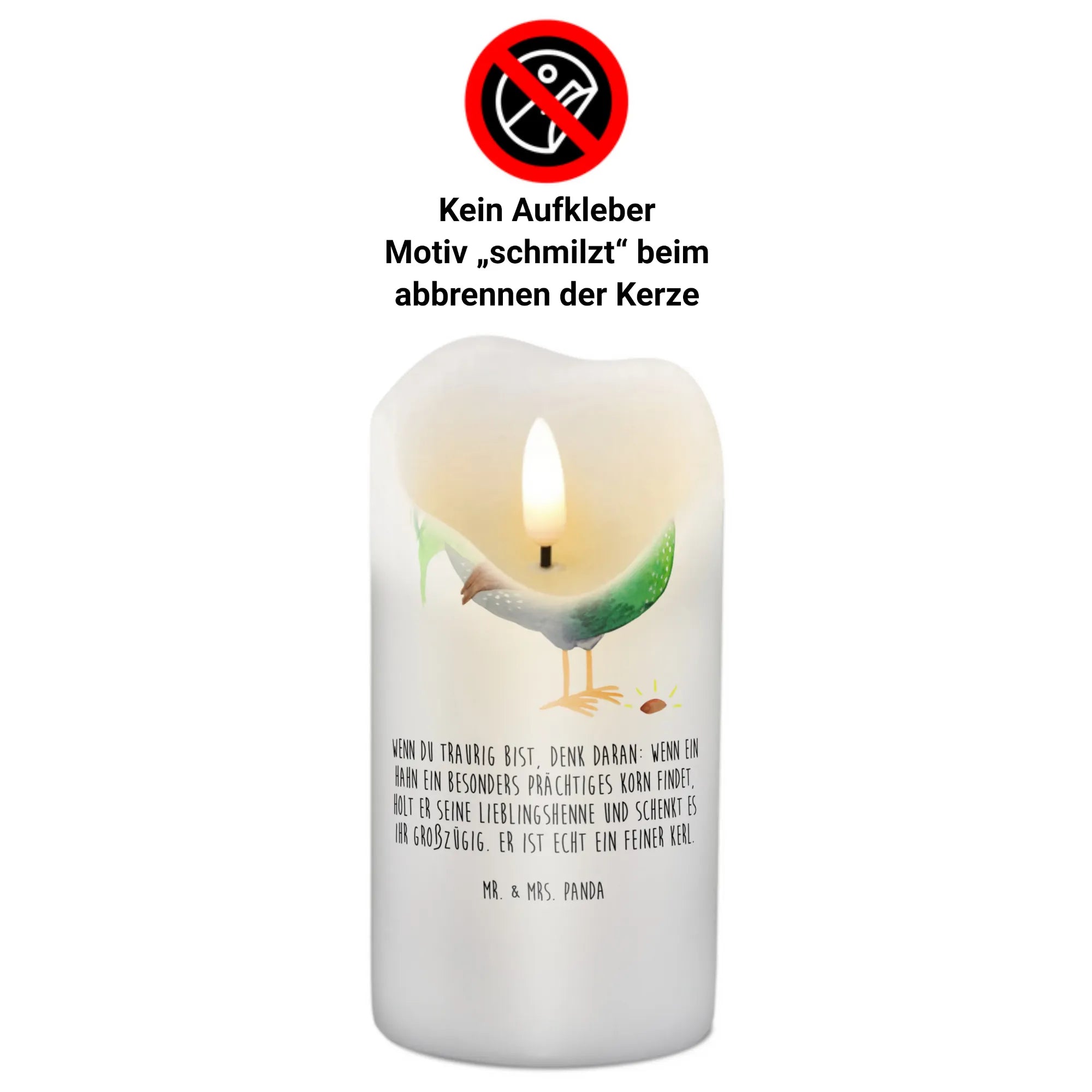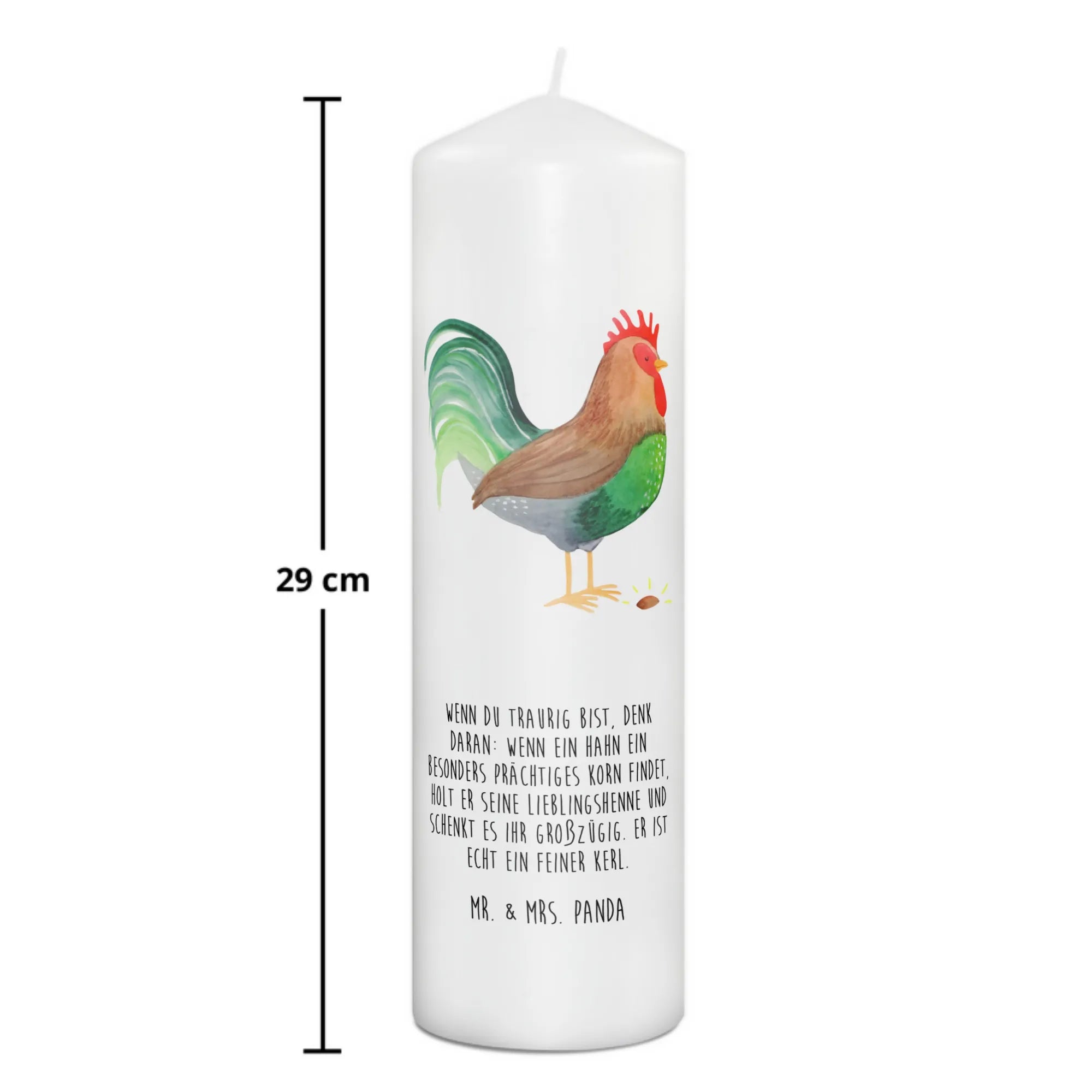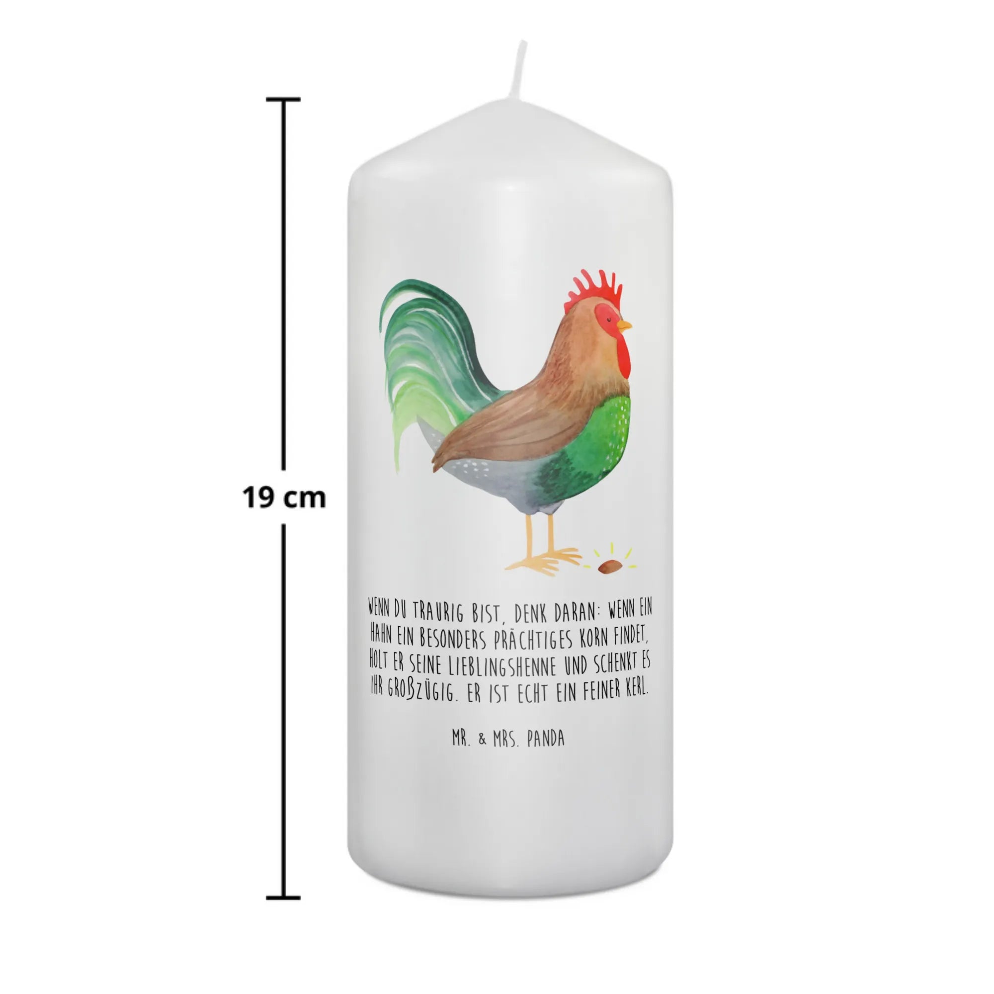 Kerze Hahn mit Korn - 19 x 8 cm - mit Spruch