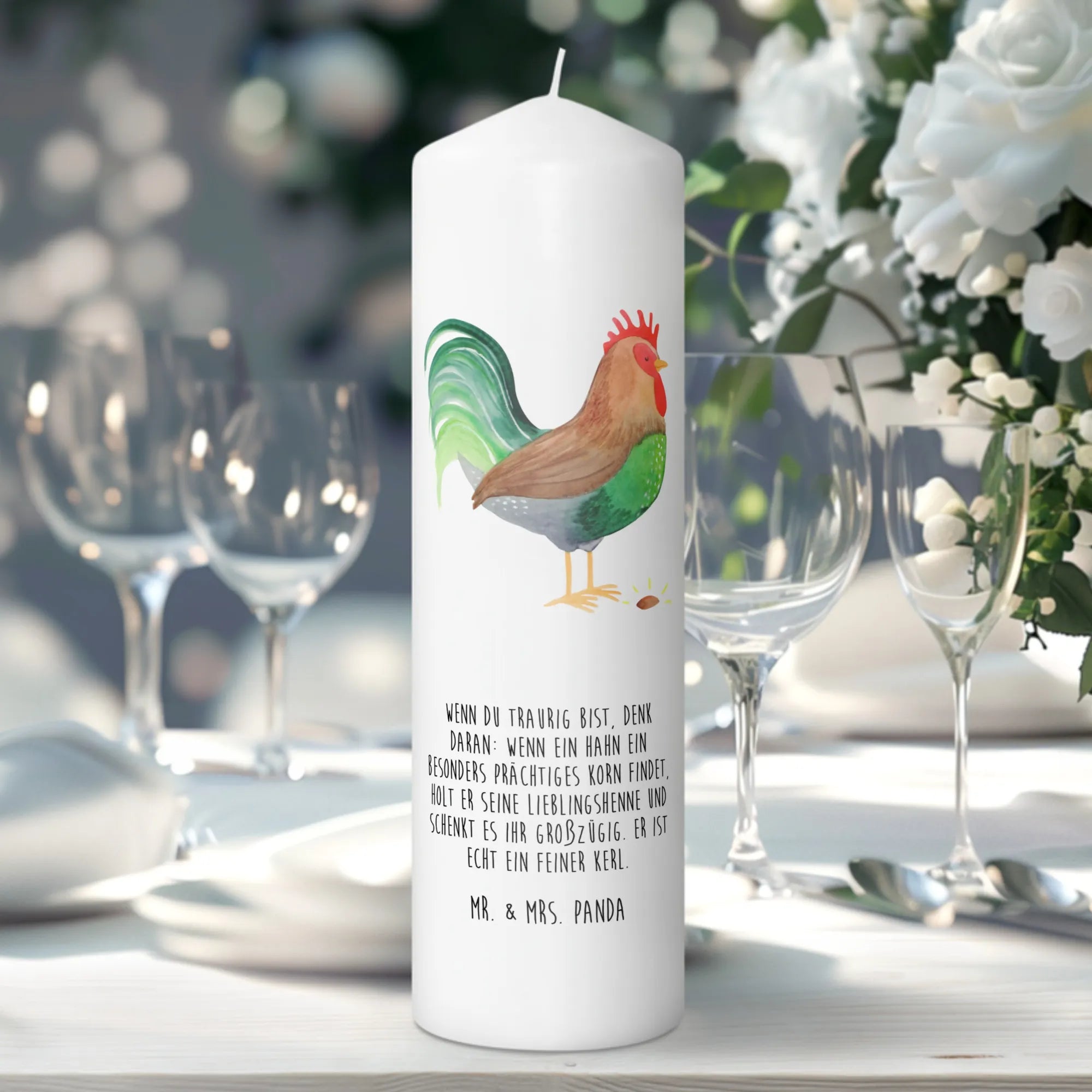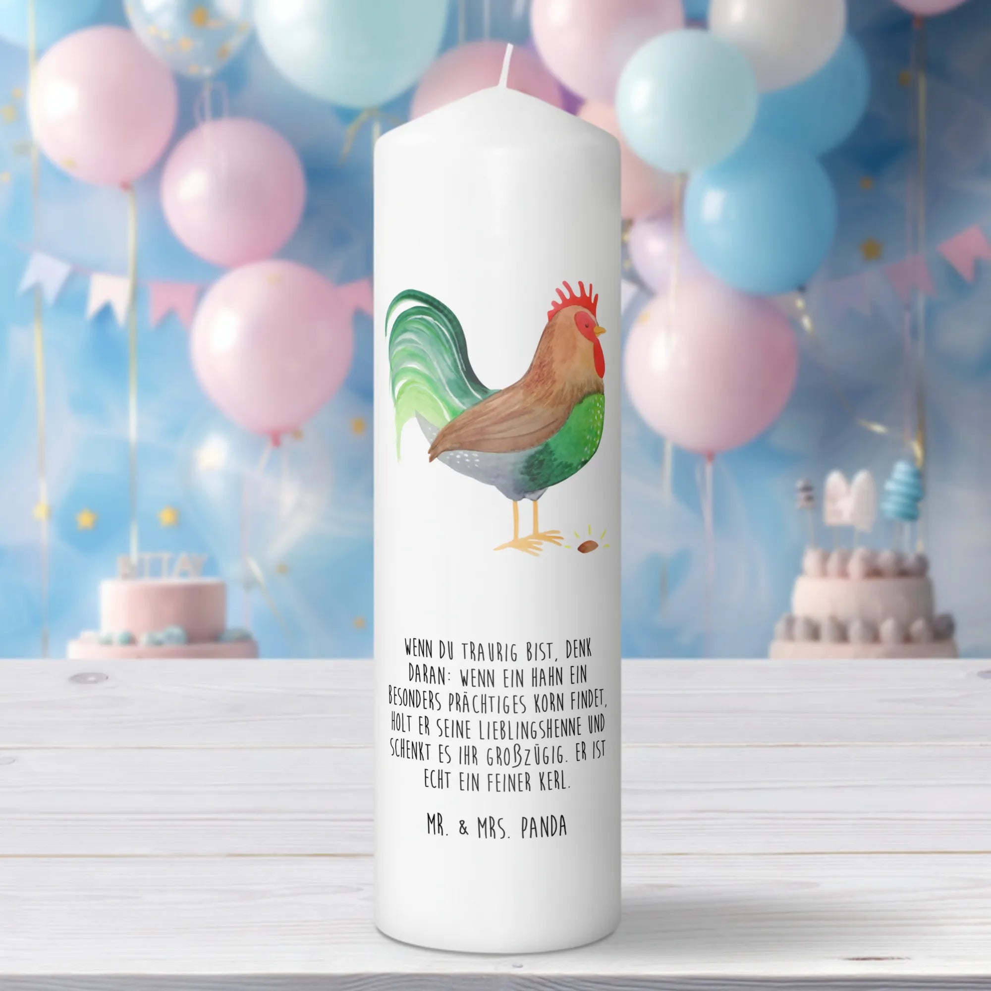 Entdecke die wunderschöne Taufkerze mit dem lustigen Motiv 'Hahn mit Korn' aus der bezaubernden Bauernhof Kollektion von Mr. & Mrs. Panda. Diese Kerze ist nicht nur ein echter Hingucker, sondern auch ein herzliches Geschenk für viele besondere Anlässe.