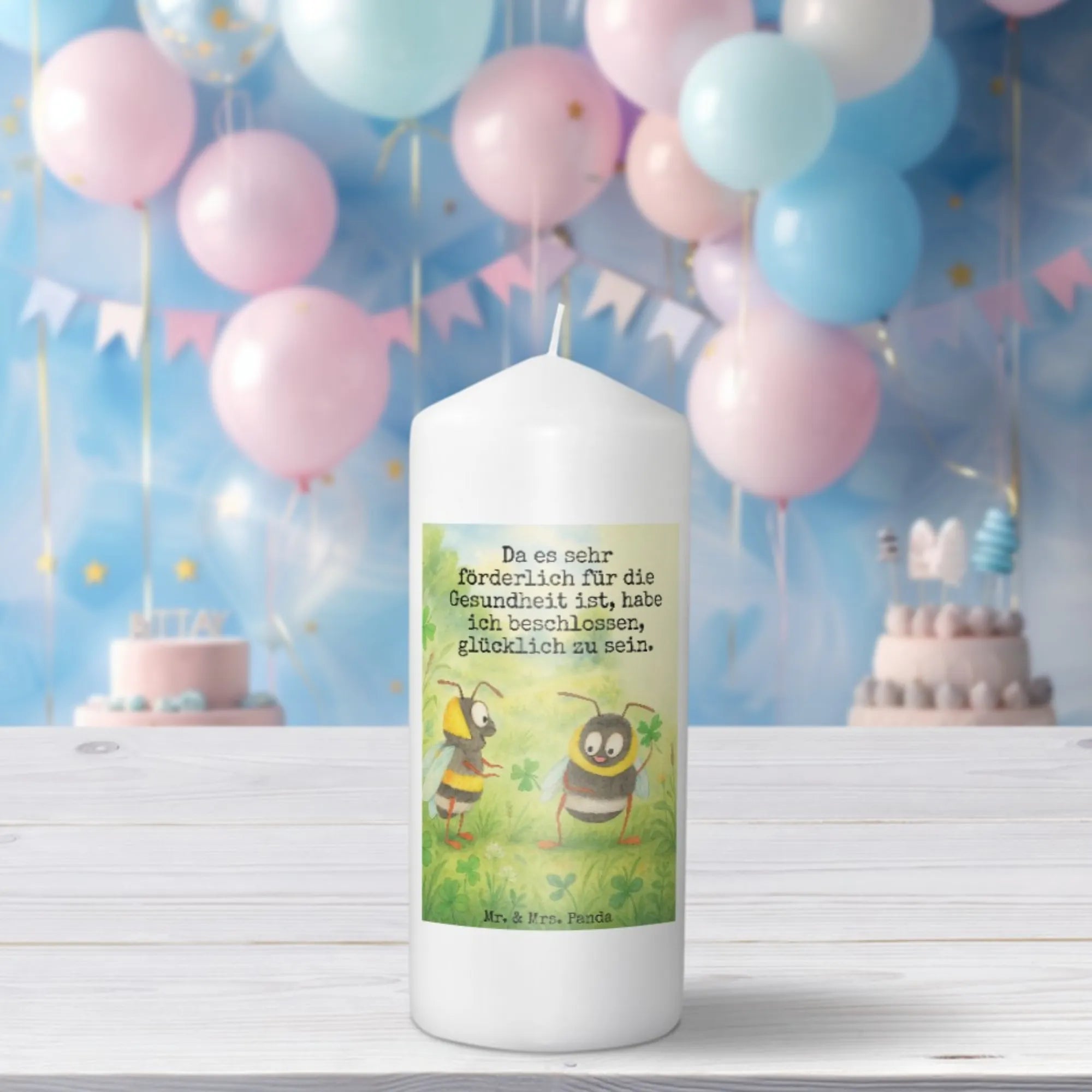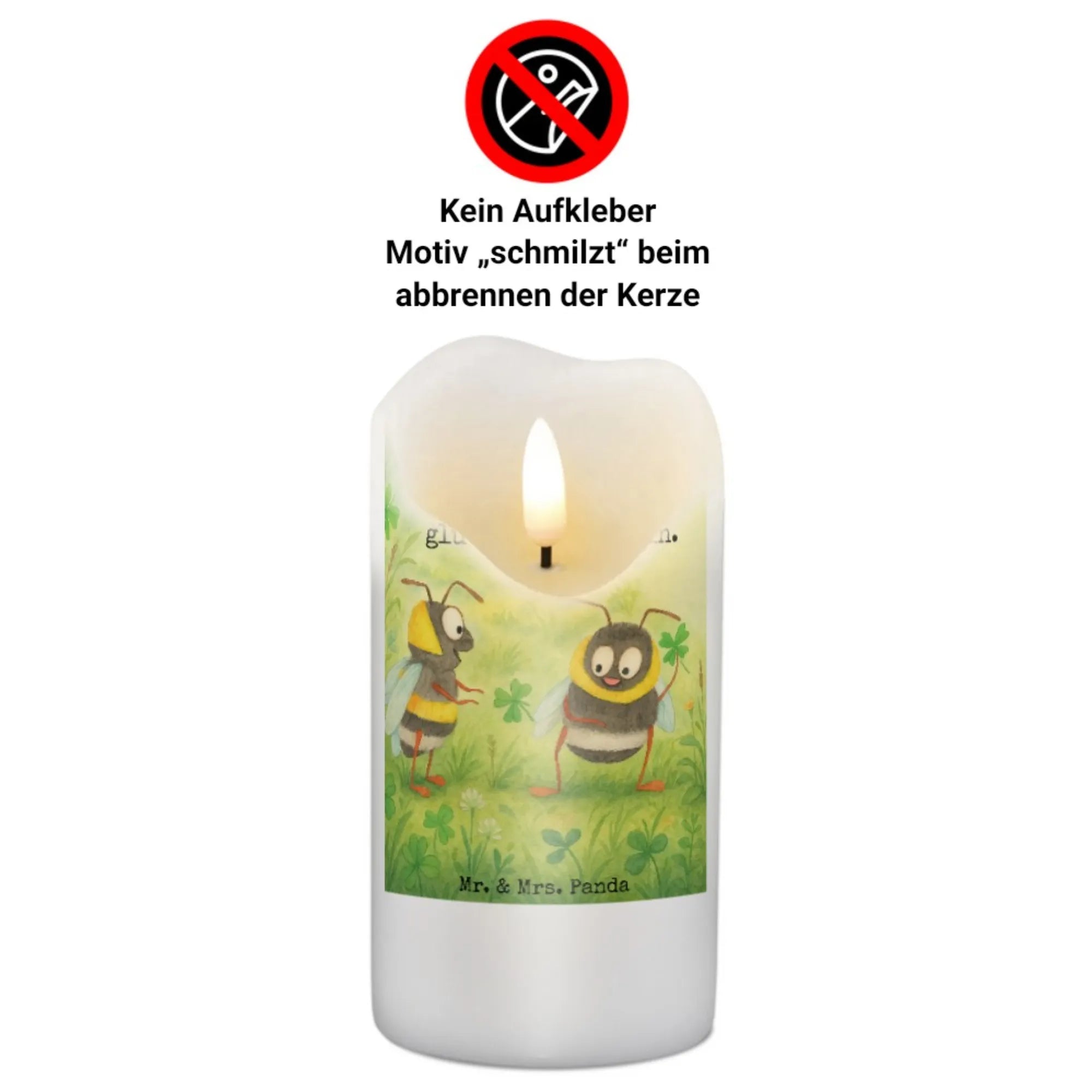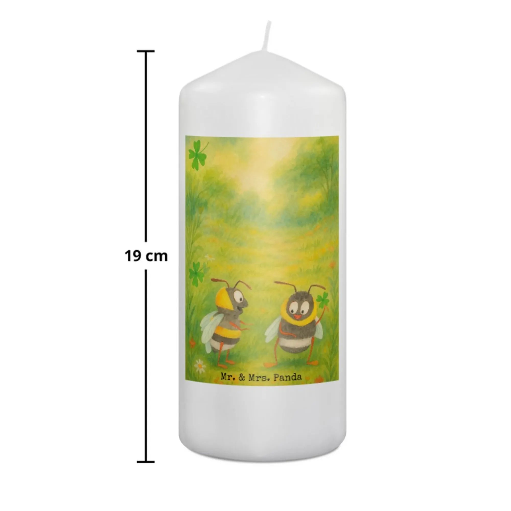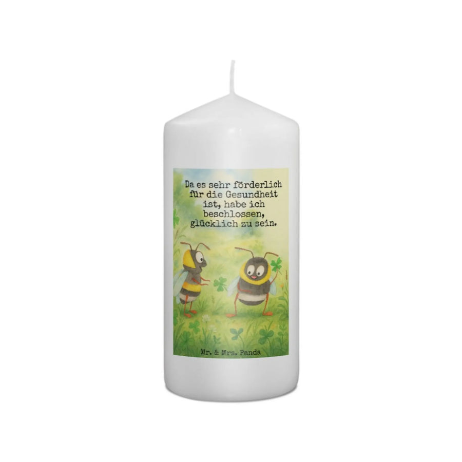 Kerze Hummeln Kleeblatt Design - 15 x 7 cm - mit Spruch