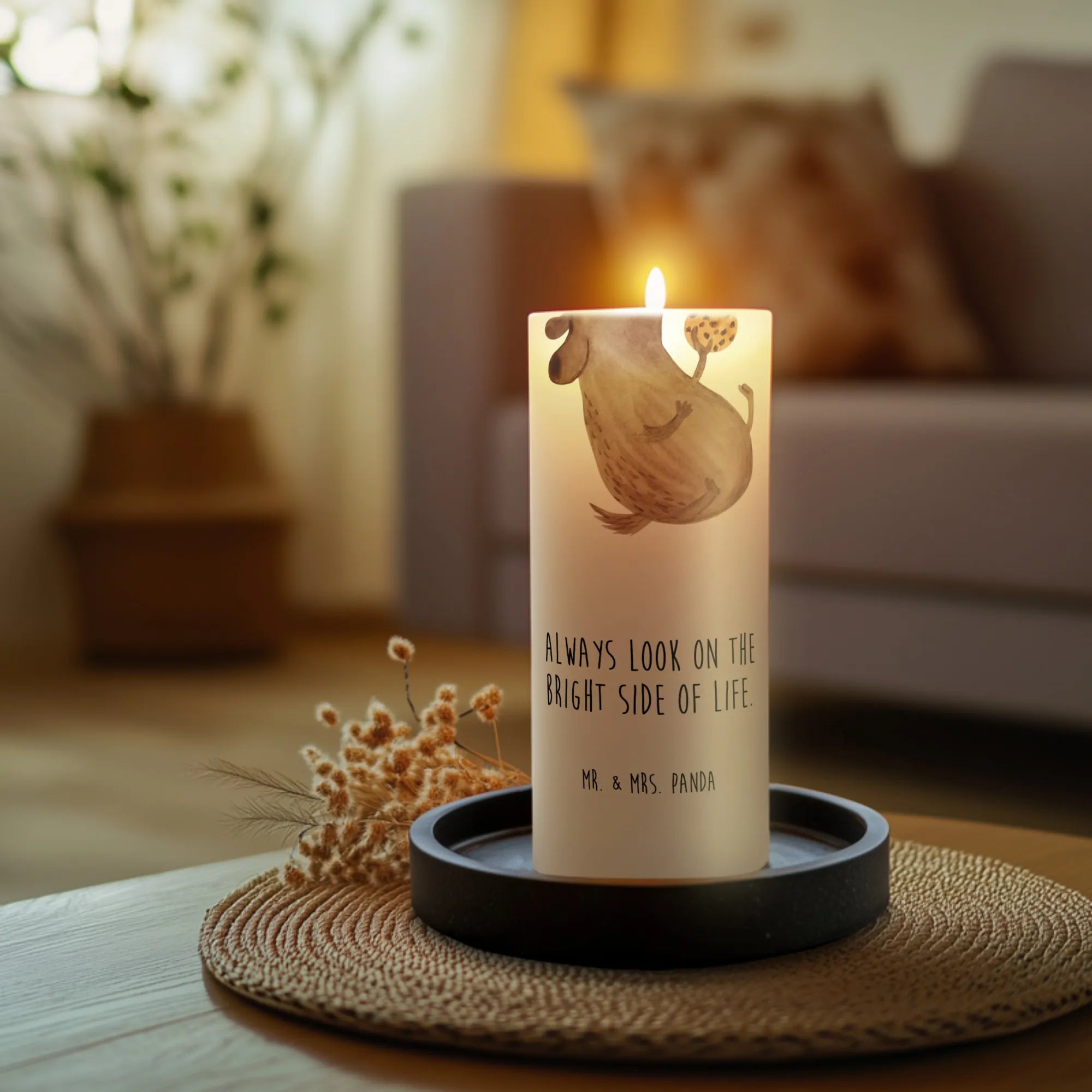 Die Hunde Kollektion von Mr. & Mrs. Panda ist liebevoll gestaltet und enthält viele Produkte, die das Herz eines jeden Tierliebhabers höher schlagen lassen. Jedes Motiv wurde von Mrs. Panda in liebevoller Aquarelltechnik handgezeichnet. Schenke deinen Freunden und Familie etwas ganz Besonderes, das sie lange Freude bereiten wird. Diese Kerze ist nicht nur ein Lichtspender, sondern auch ein echter Blickfang in jedem Zuhause. Immer ein Grund, um die schönen Momente des Lebens zu feiern und zu schätzen - "Always look on the bright side of life!"