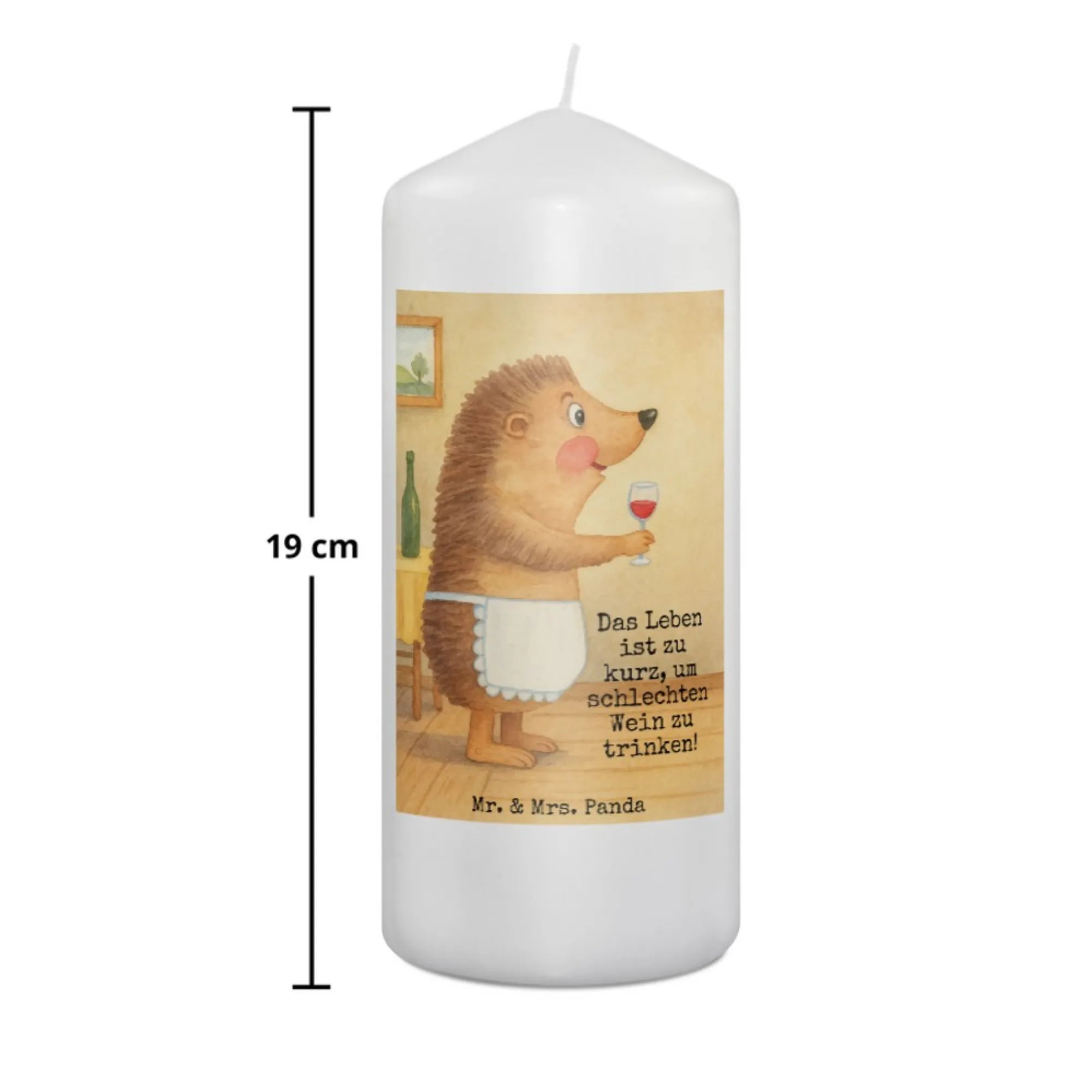Kerze Igel Wein Design - 19 x 8 cm - mit Spruch