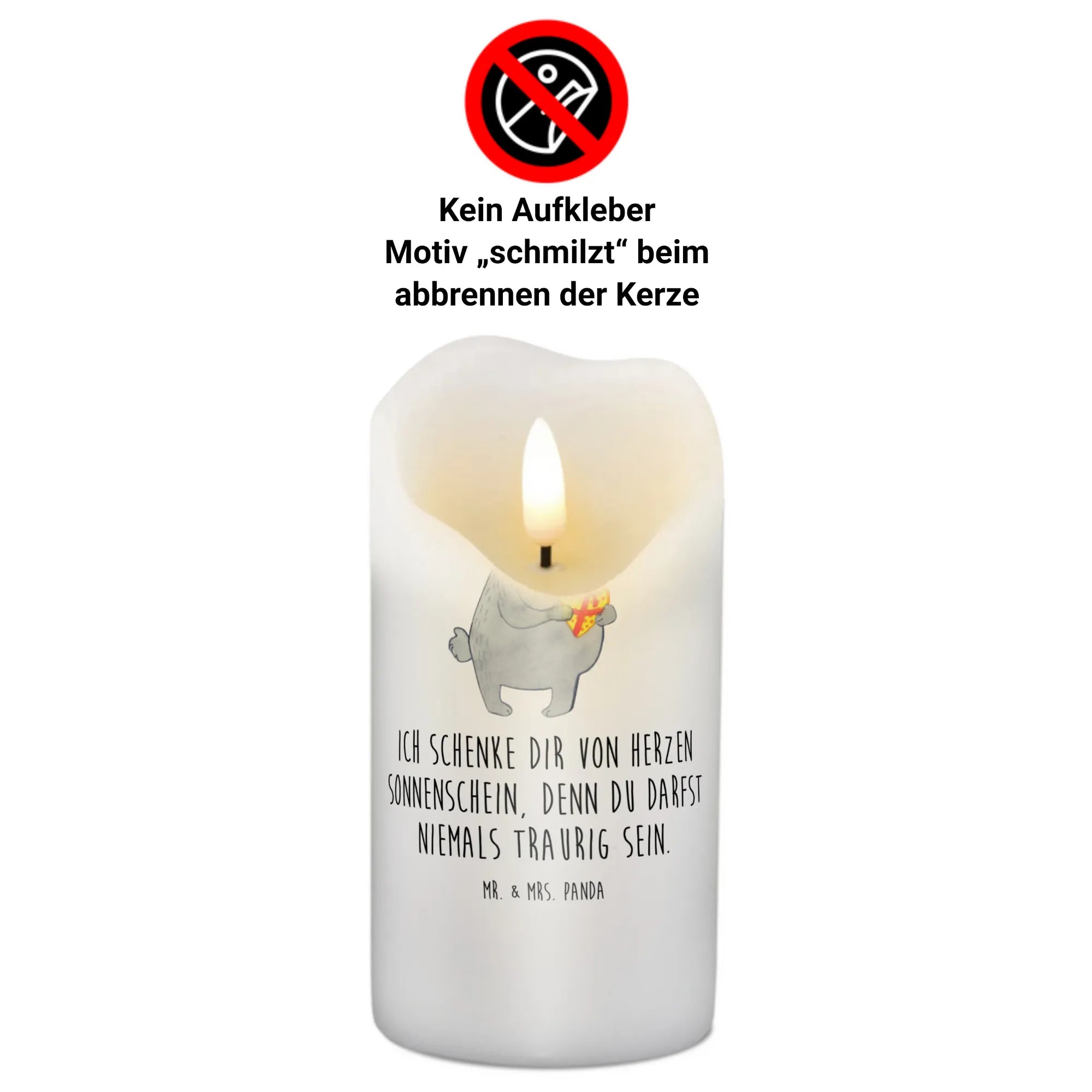 Der Spruch "Ich schenke dir von Herzen Sonnenschein, denn du darfst niemals traurig sein" vermittelt eine positive Botschaft, die perfekt zu festlichen Anlässen passt und herzerwärmend ist. Diese Kerze bietet nicht nur eine ultralange Brenndauer, sondern auch eine besondere Stimmung, wenn sie brennt.