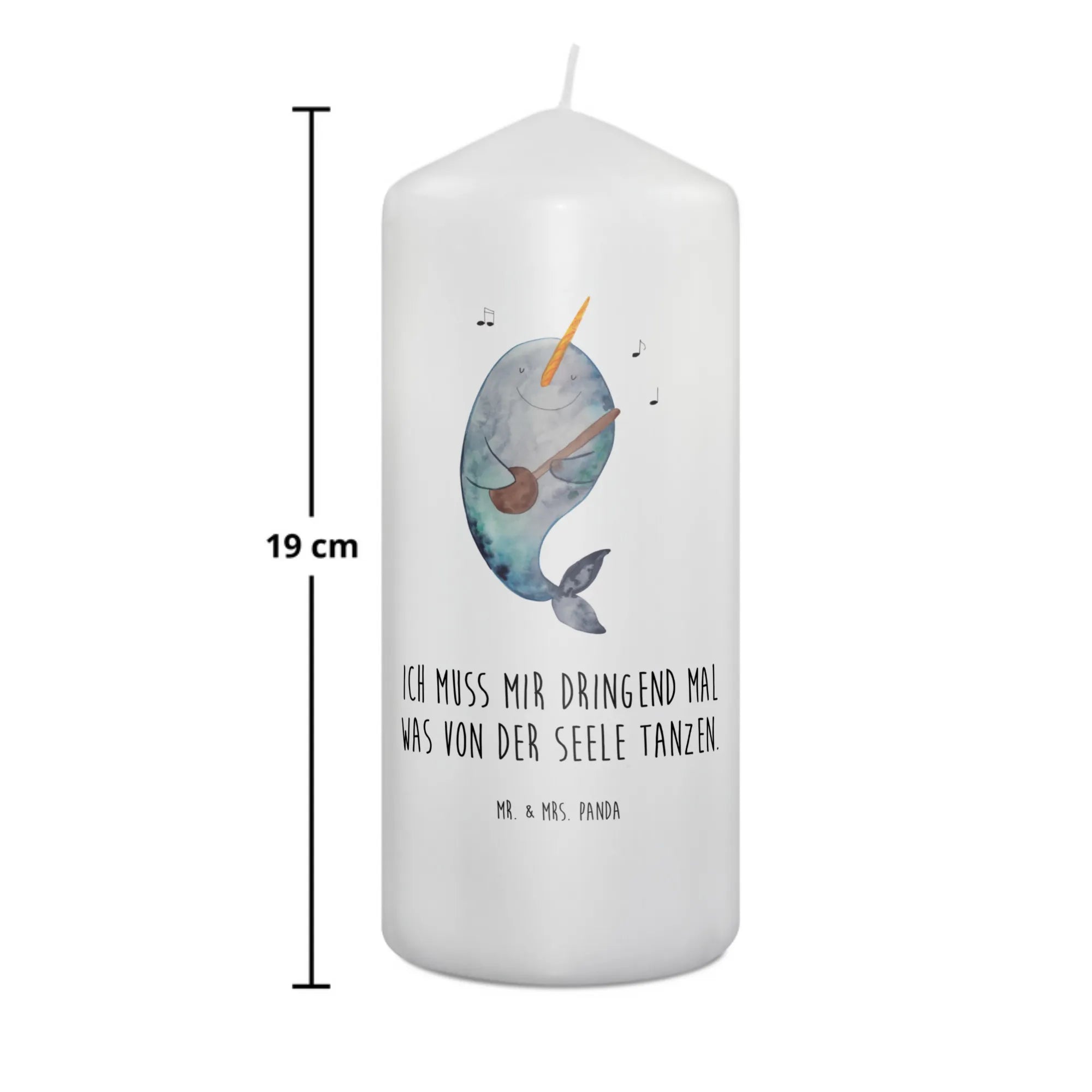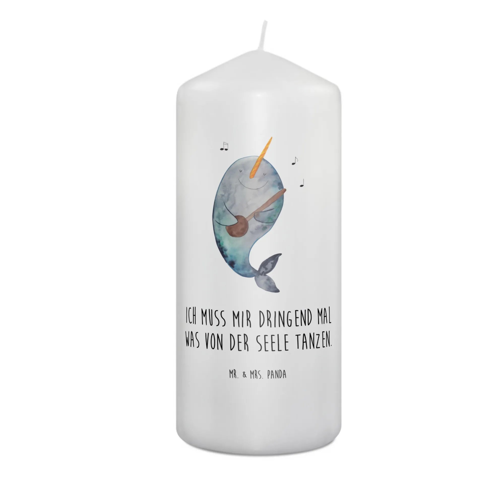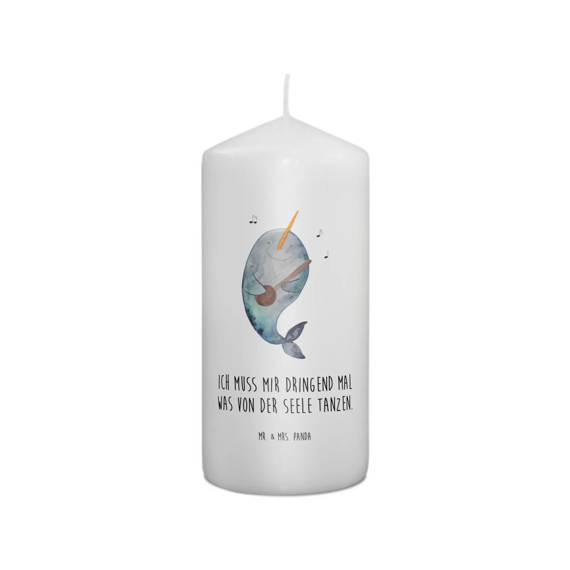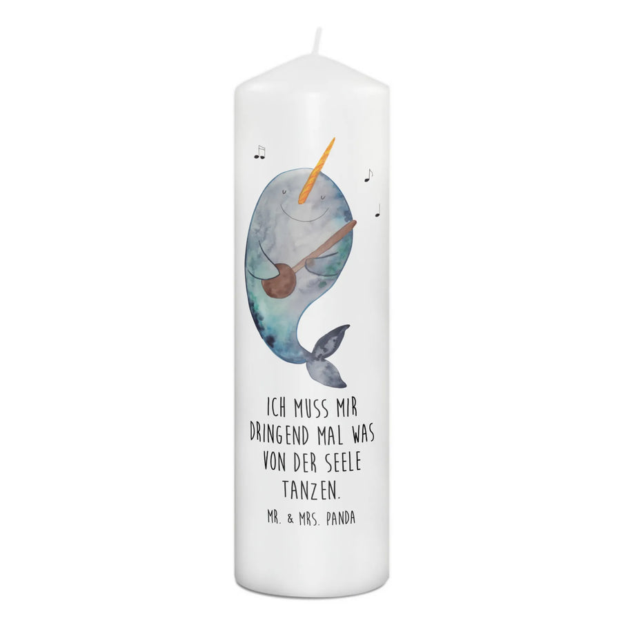 Wenn Du auf der Suche nach einem Taufgeschenk oder einem besonderen Geschenk zur Kommunion bist, hast Du hier genau das Richtige gefunden. Mit einer ultralangen Brenndauer sorgt diese Kerze für stimmungsvolle Momente. Das liebevoll gestaltete Motiv zeigt einen fröhlichen Narwal, der Gitarre spielt und damit den Spruch 'Ich muss mir dringend mal was von der Seele tanzen.' verkörpert.