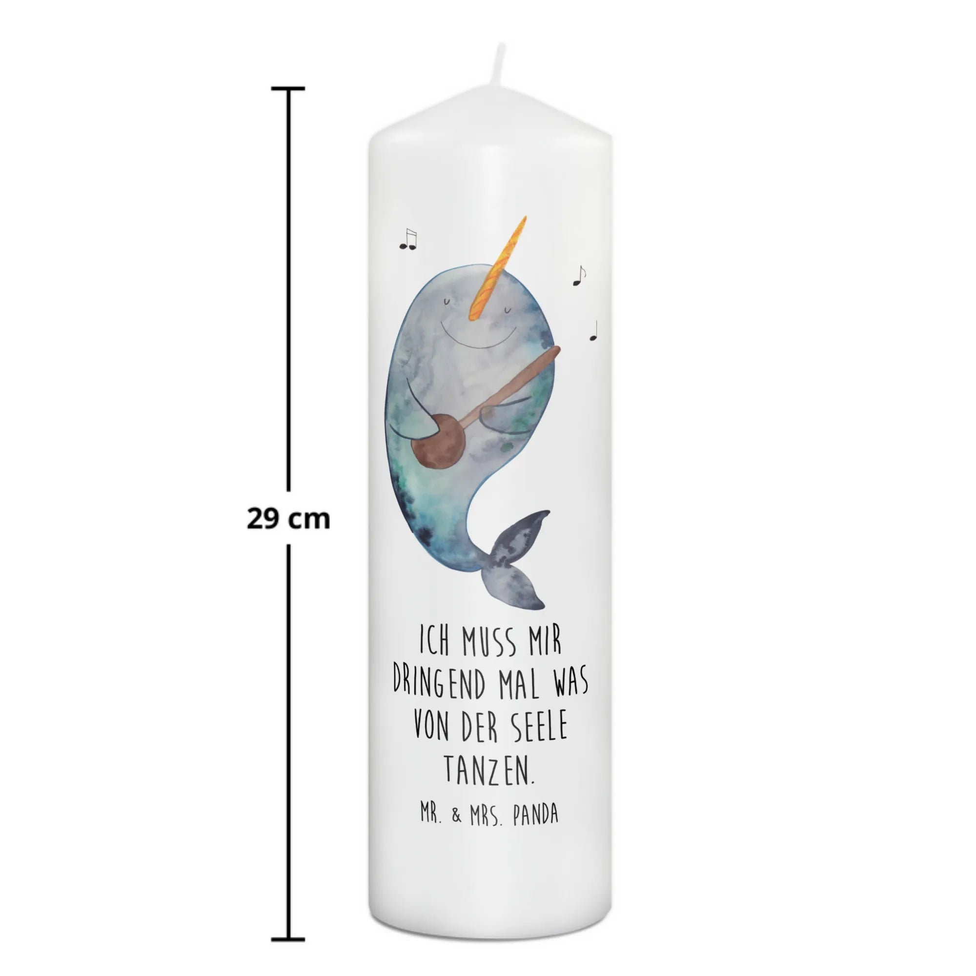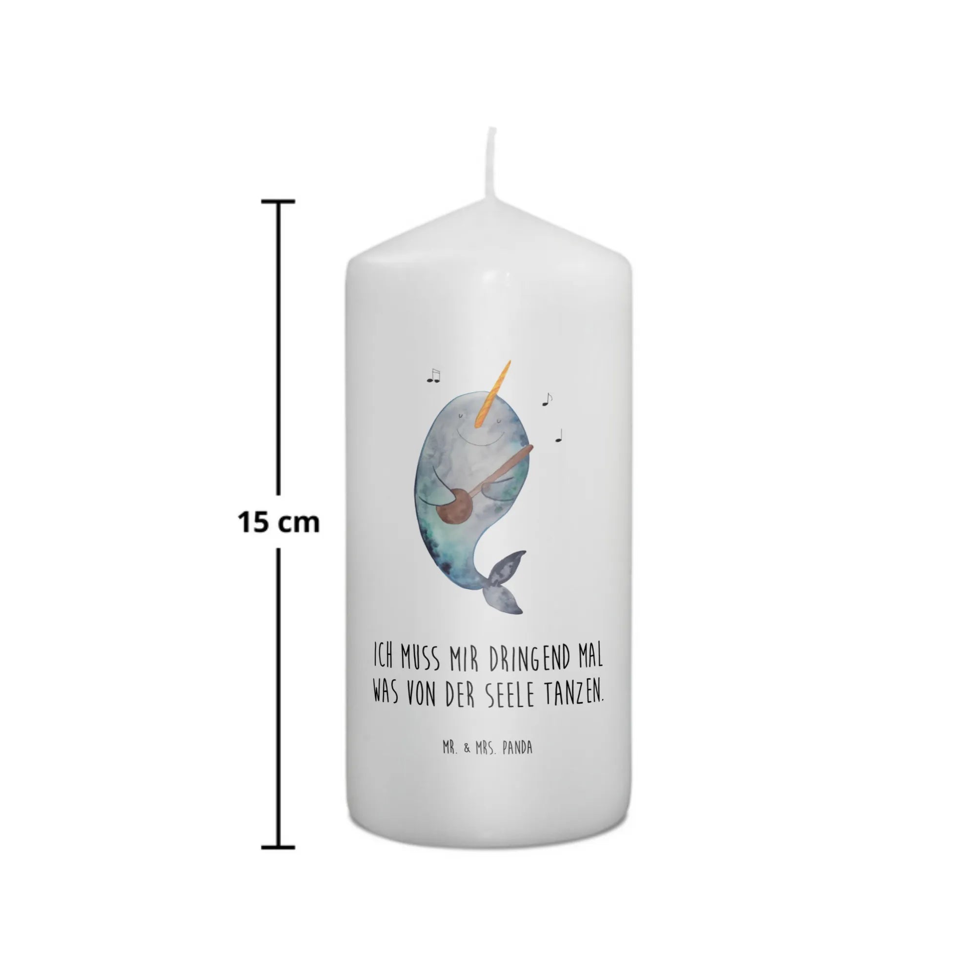 Die Kerze misst 15 x 7 cm und wiegt 250 g, sodass sie in jedes Raumkonzept passt und ein schönes Ambiente zaubert. Lass den Narwal die Melodien deines Lebens begleiten!