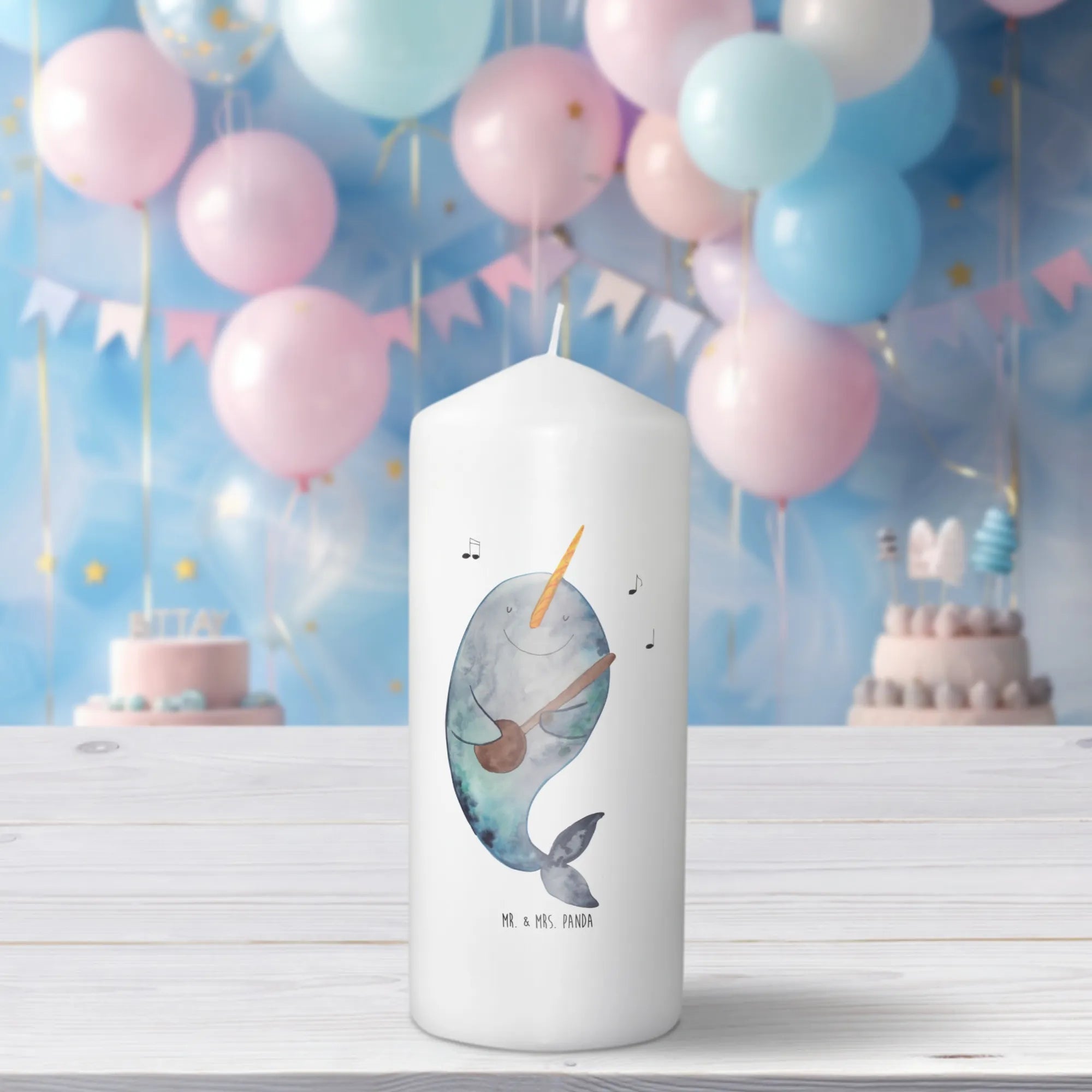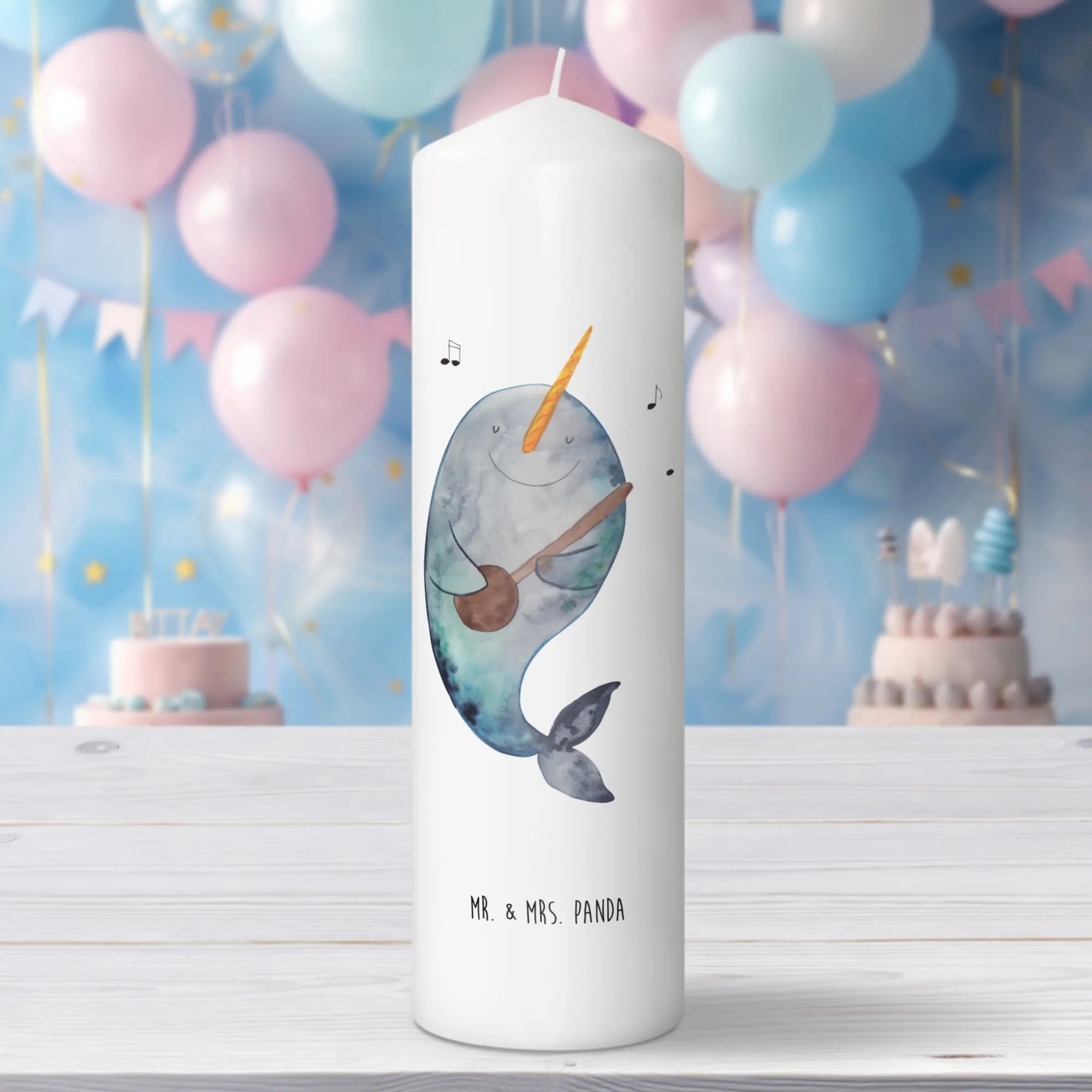 Setze ein Zeichen für Freude und zaubere ein Lächeln in jedes Gesicht – mit der Narwal Gitarre Kerze von Mr. & Mrs. Panda!
