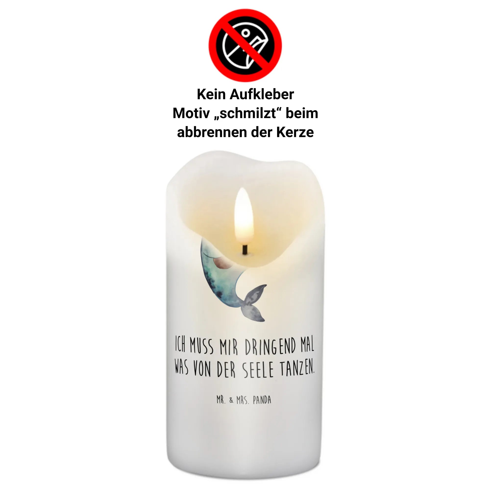 Der lustige Slogan "Ich muss mir dringend mal was von der Seele tanzen" unterstreicht das fröhliche Konzept und macht die Kerze zu einer idealen Möglichkeit, ein wenig Freude zu verbreiten. Perfekt für jeden, der das Meer und seine Bewohner liebt, und ein tolles Geschenk für Meerestiere-Fans!