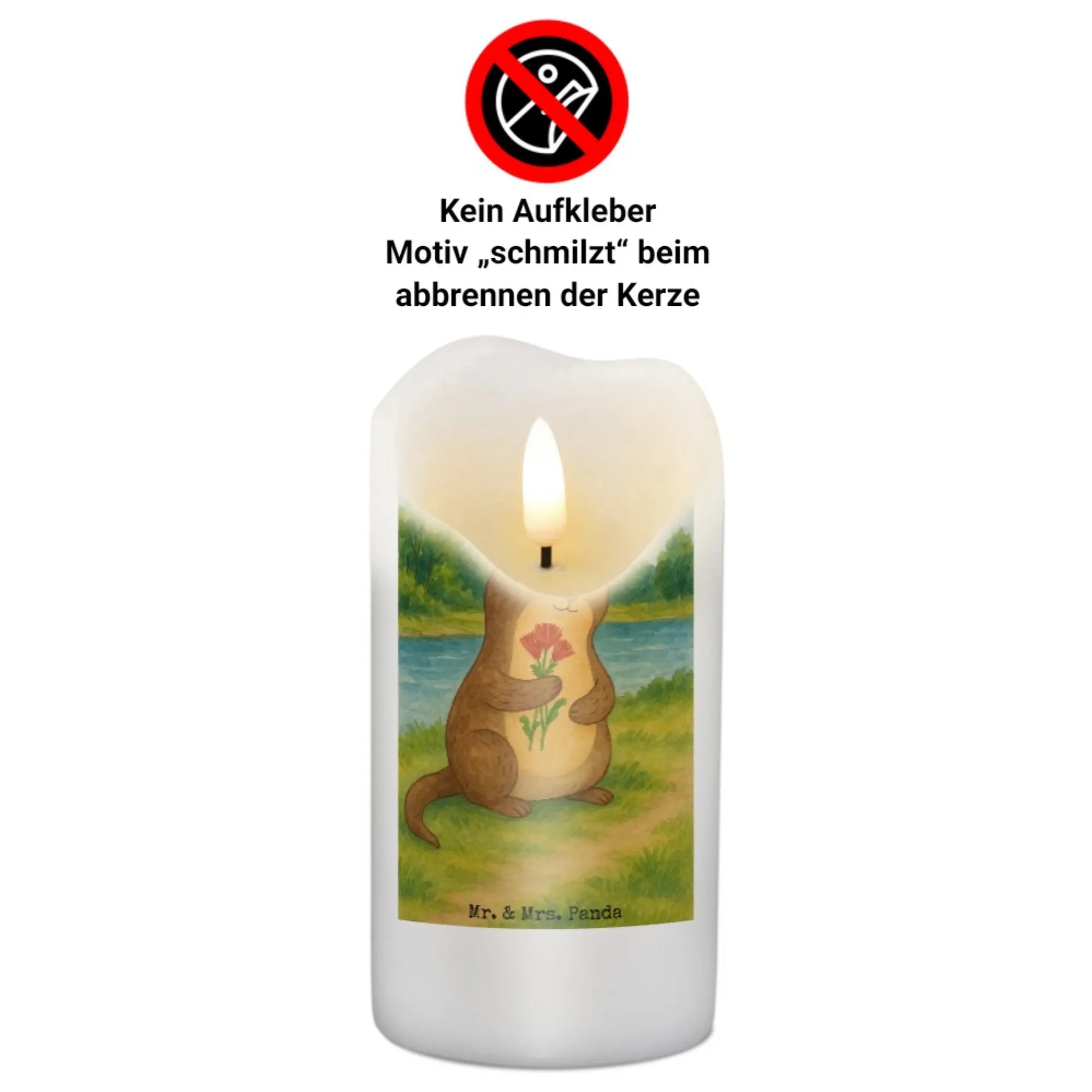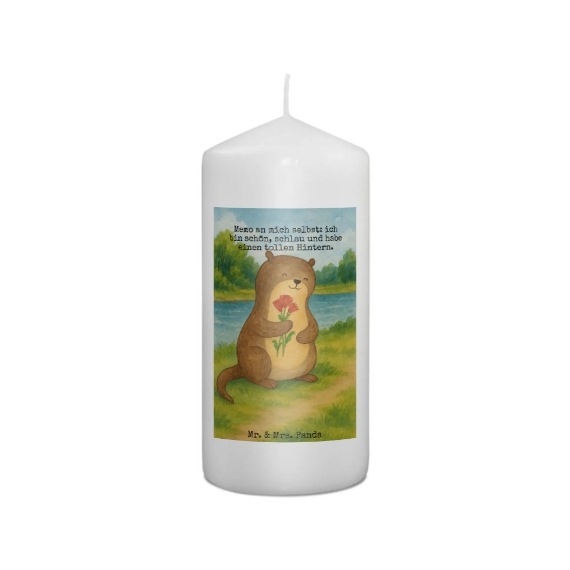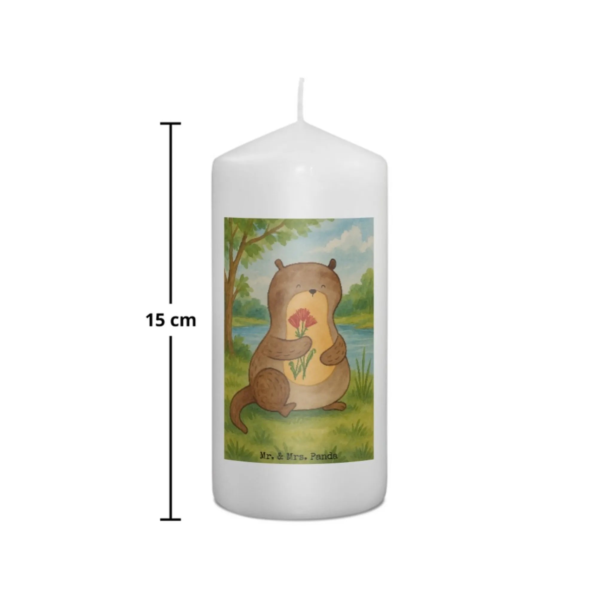 Kerze Otter Blumenstrauß Design - 15 x 7 cm - mit Spruch