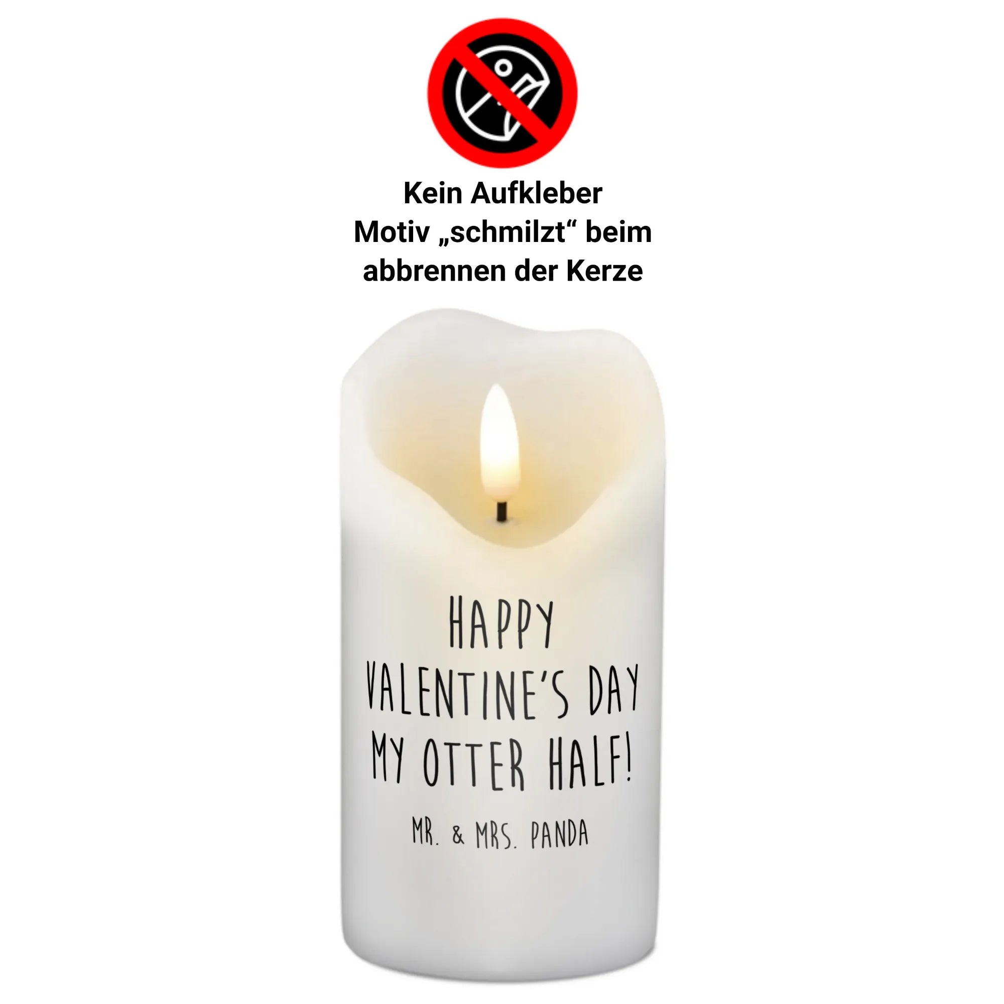 Mit dem eingedruckten Slogan "Happy valentine's day my otter half!" bringt die Kerze deine Gefühle zum Ausdruck und sorgt für eine romantische Stimmung. Hergestellt aus hochwertigem Paraffinwachs, hat die Kerze eine ultralange Brenndauer und sorgt für stimmungsvolles Licht in deinem Zuhause.