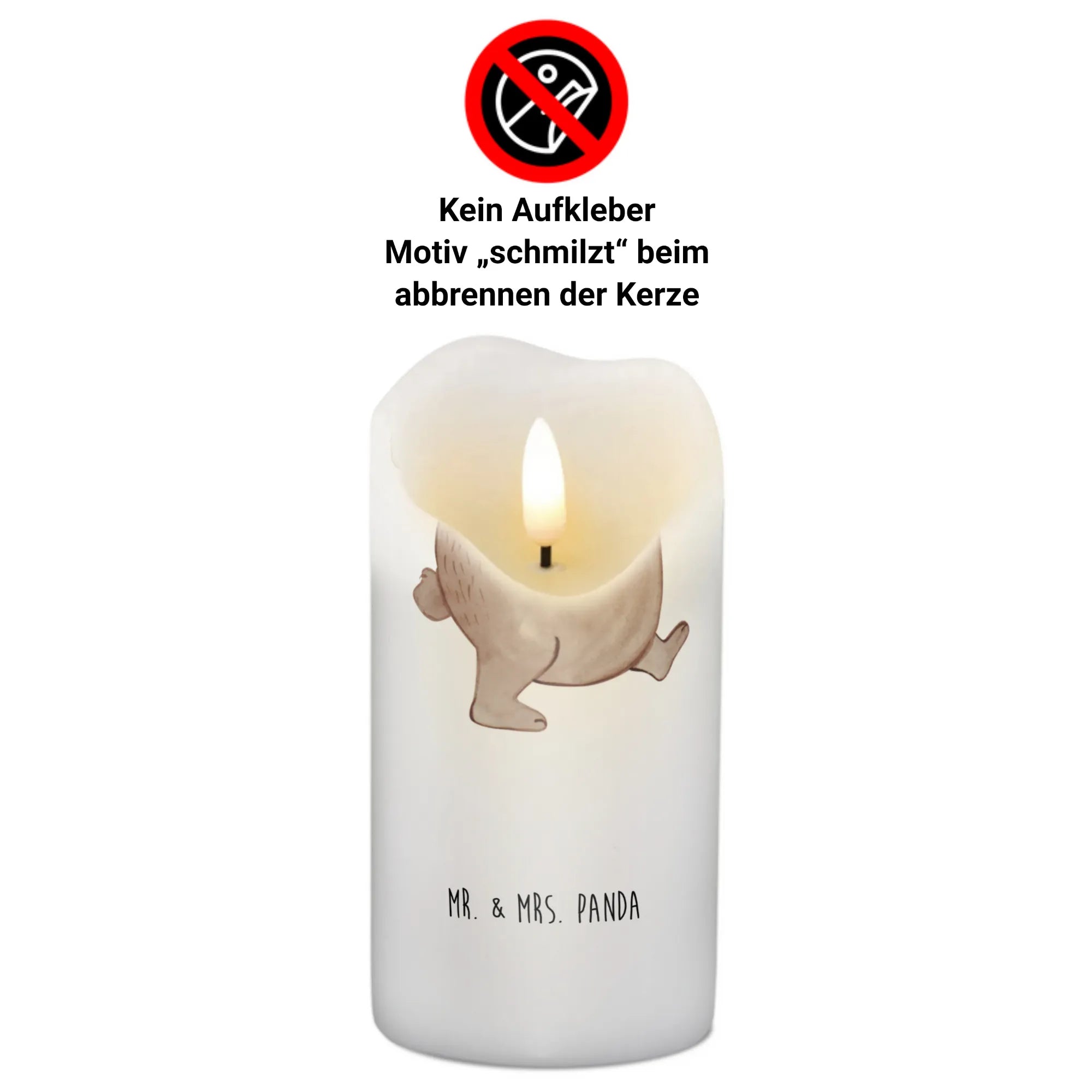 Das Motiv, liebevoll von Mrs. Panda handgezeichnet, schmilzt beim Abbrennen der Kerze und sorgt für eine besondere Stimmung im Raum. Dank der hochwertigen Paraffinwachs-Qualität brennt die Kerze ultralang und gibt einen warmen, sanften Schein ab. Sie hat die ideale Größe von 190 mm x 80 mm und wiegt 250 g. Pflegeleicht lässt sie sich mit sanften Reinigungsmitteln reinigen.