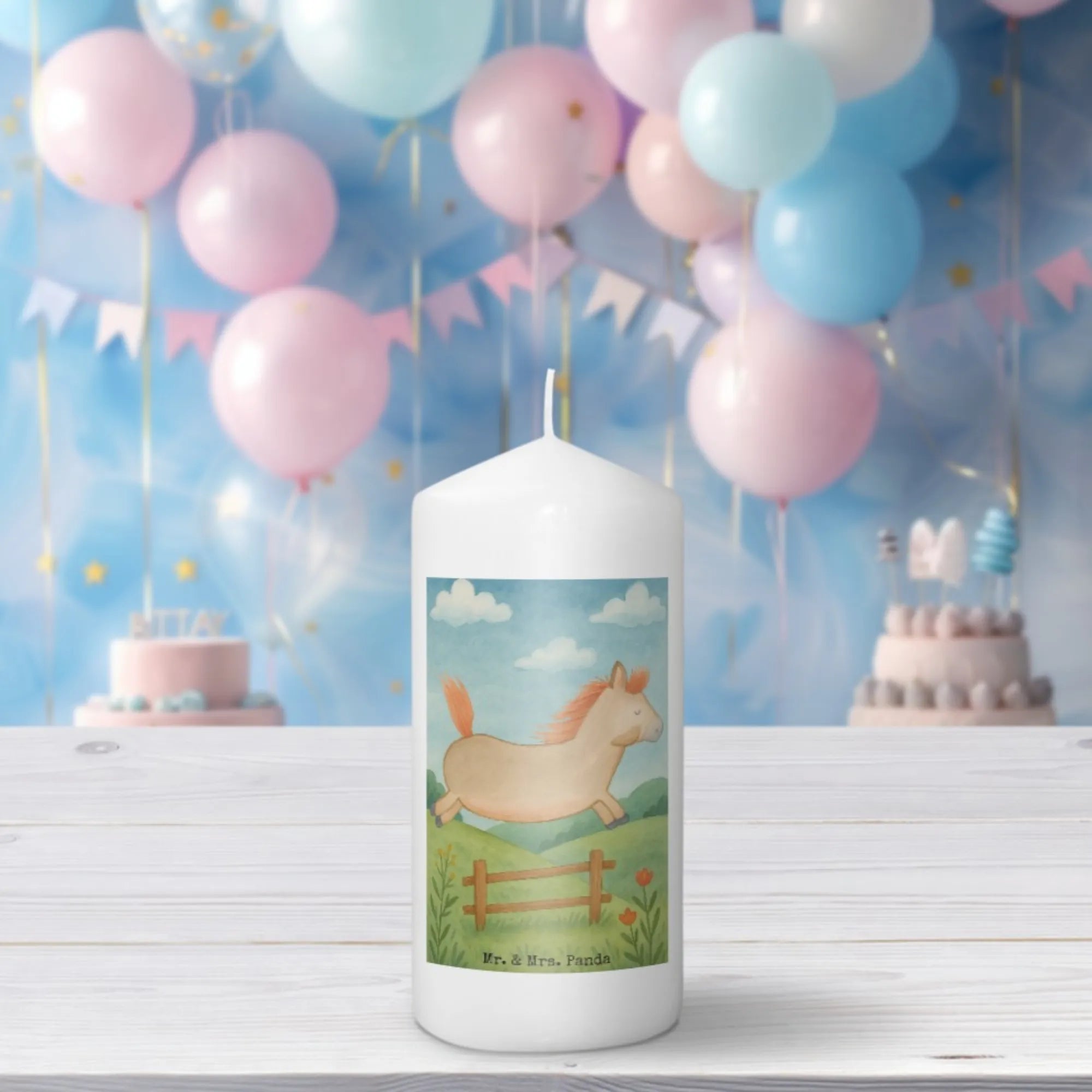 Kerze Pferd Springen Design - 15 x 7 cm - mit Spruch