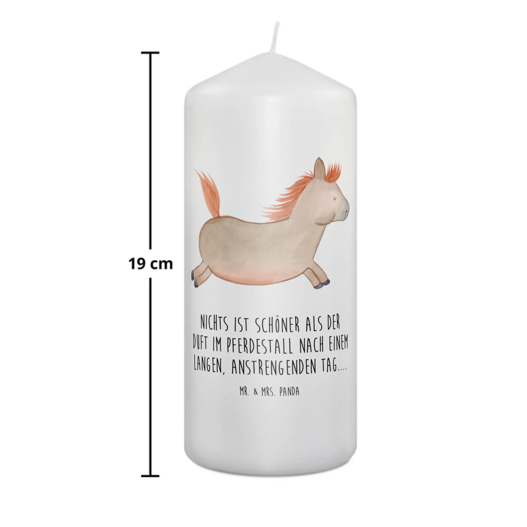 Wenn Du also auf der Suche nach dem perfekten Geschenke bist, dass Herzen höher schlagen lässt, dann ist die Kerze mit dem Motiv des springenden Pferdes die ideale Wahl. Verschenke Freude, Licht und die Geborgenheit des Lebens auf dem Bauernhof mit Mr. & Mrs. Panda. Die Kerze ist nicht personalisierbar, aber jeder kann seine eigene Geschichte damit erzählen und die wertvollen Momente genießen, die sie erhellt - perfekt für jeden Pferdeliebhaber!