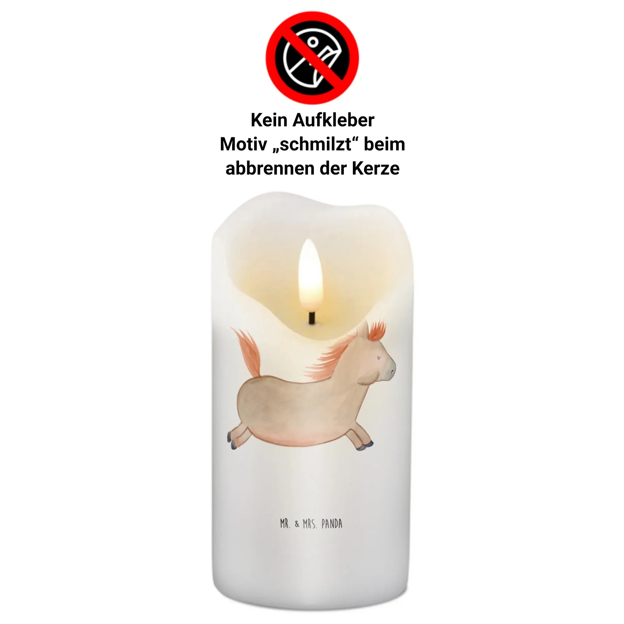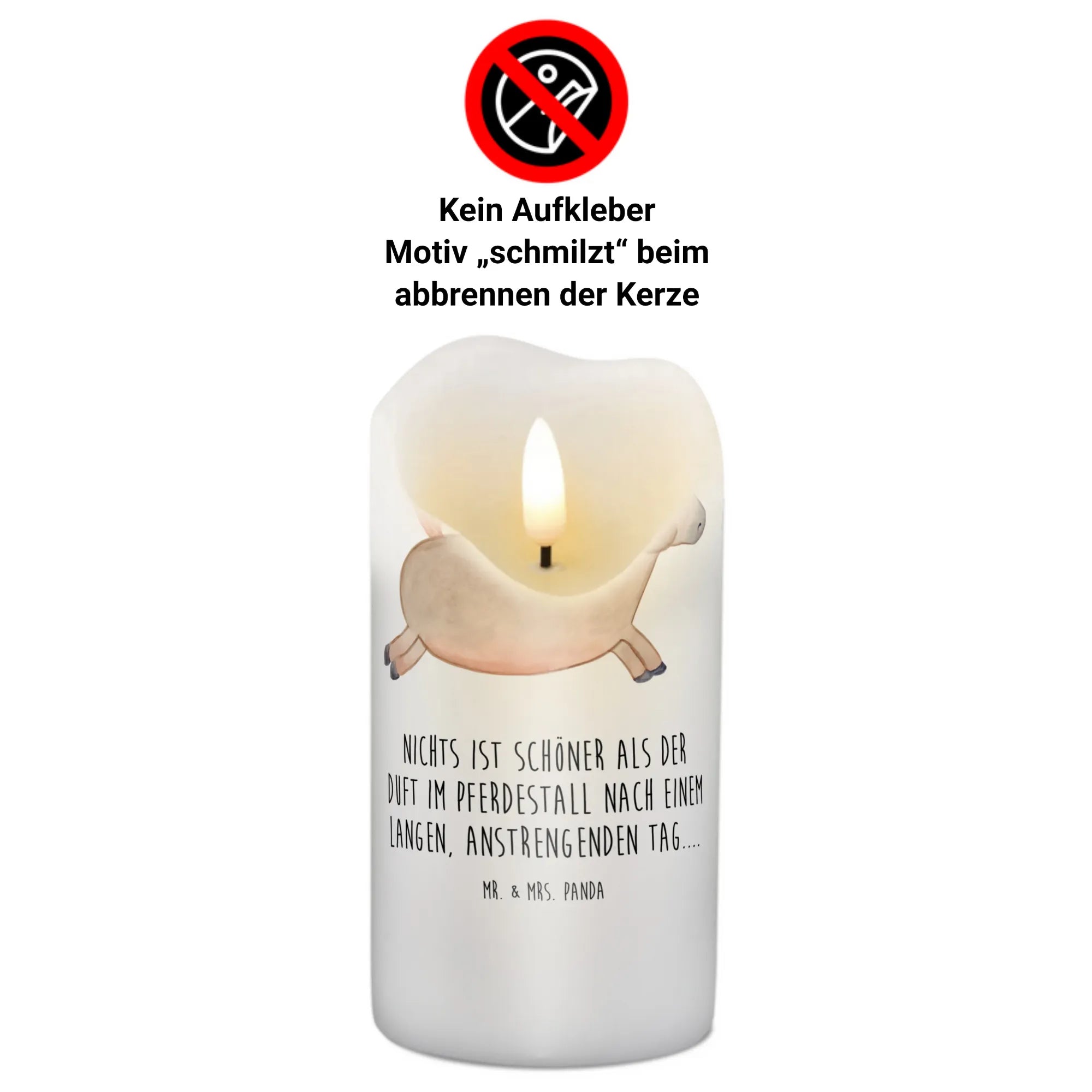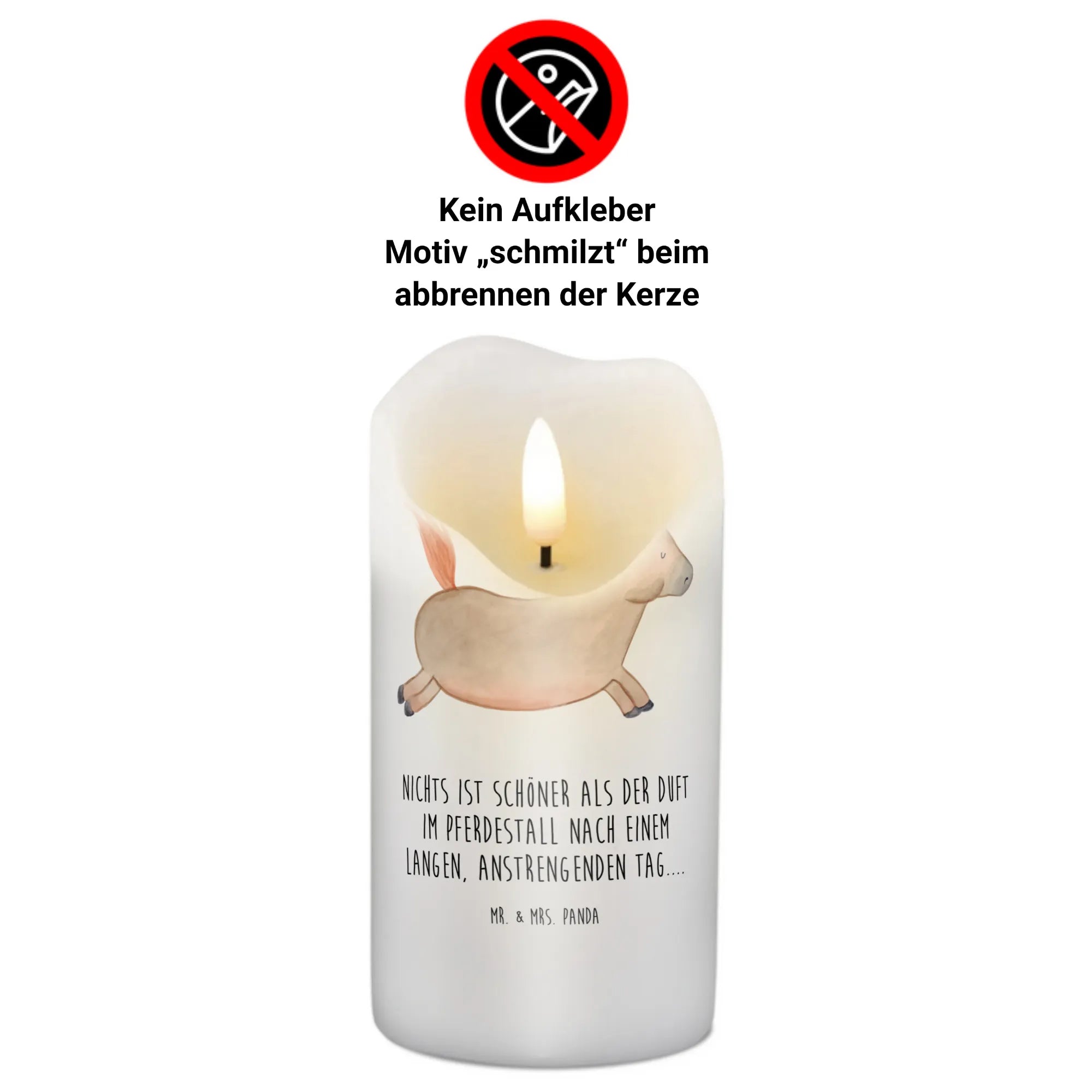 Die Kerze ist aus hochwertigem Parafinwachs gefertigt und bietet eine ultra lange Brenndauer, sodass Du lange Freude an ihrem Licht und Duft hast. Das niedliche Motiv von einem fröhlichen Pferd, das begeistert durch die Gegend springt, macht sie zu einem echten Hingucker und einem tollen Gesprächsthema bei Feiern, Geburtstagsfeiern oder besonderen Anlässen.