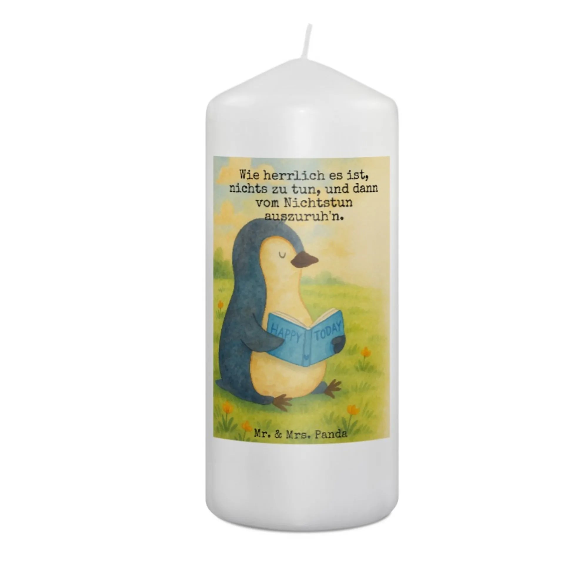 Kerze Pinguin Buch Design - 19 x 8 cm - mit Spruch