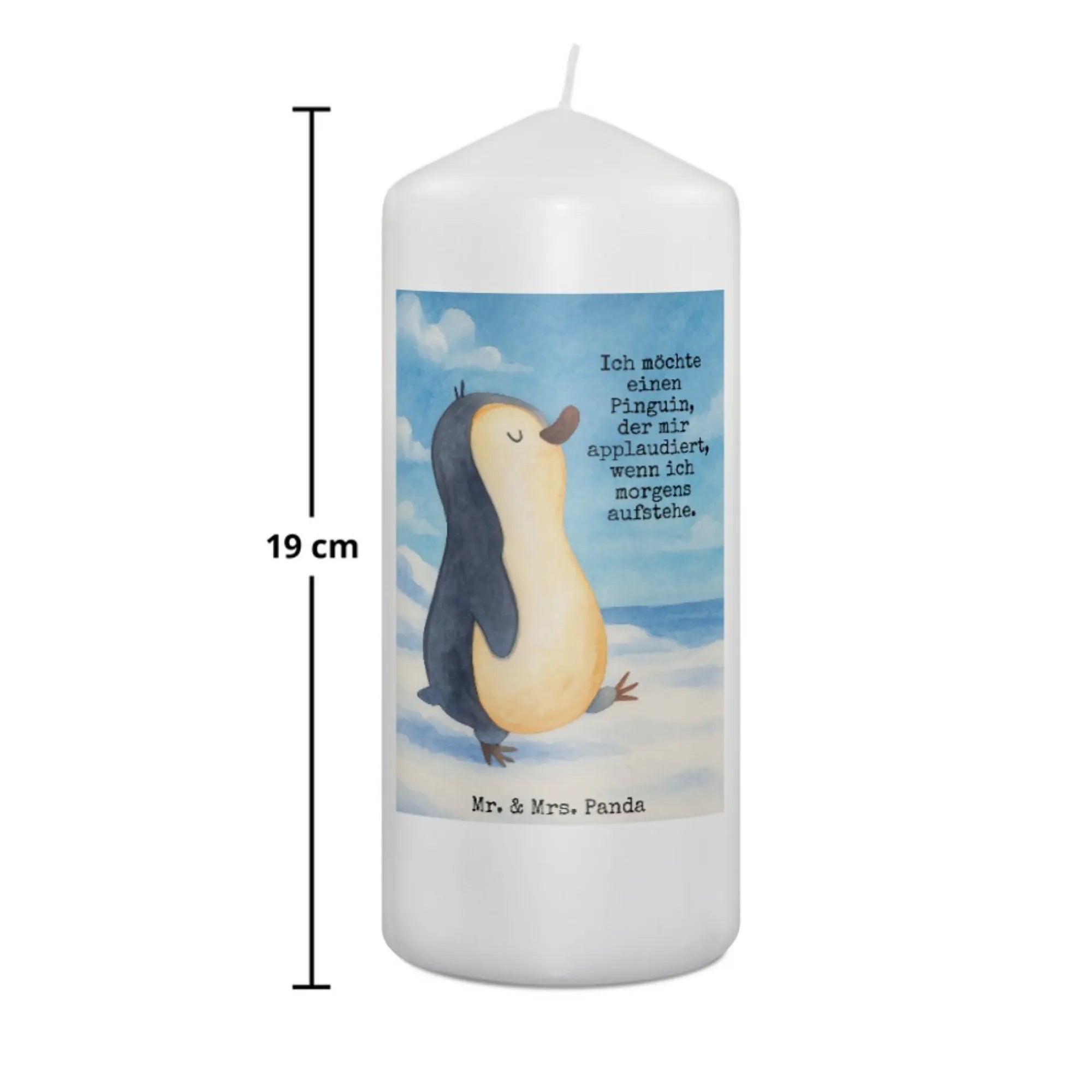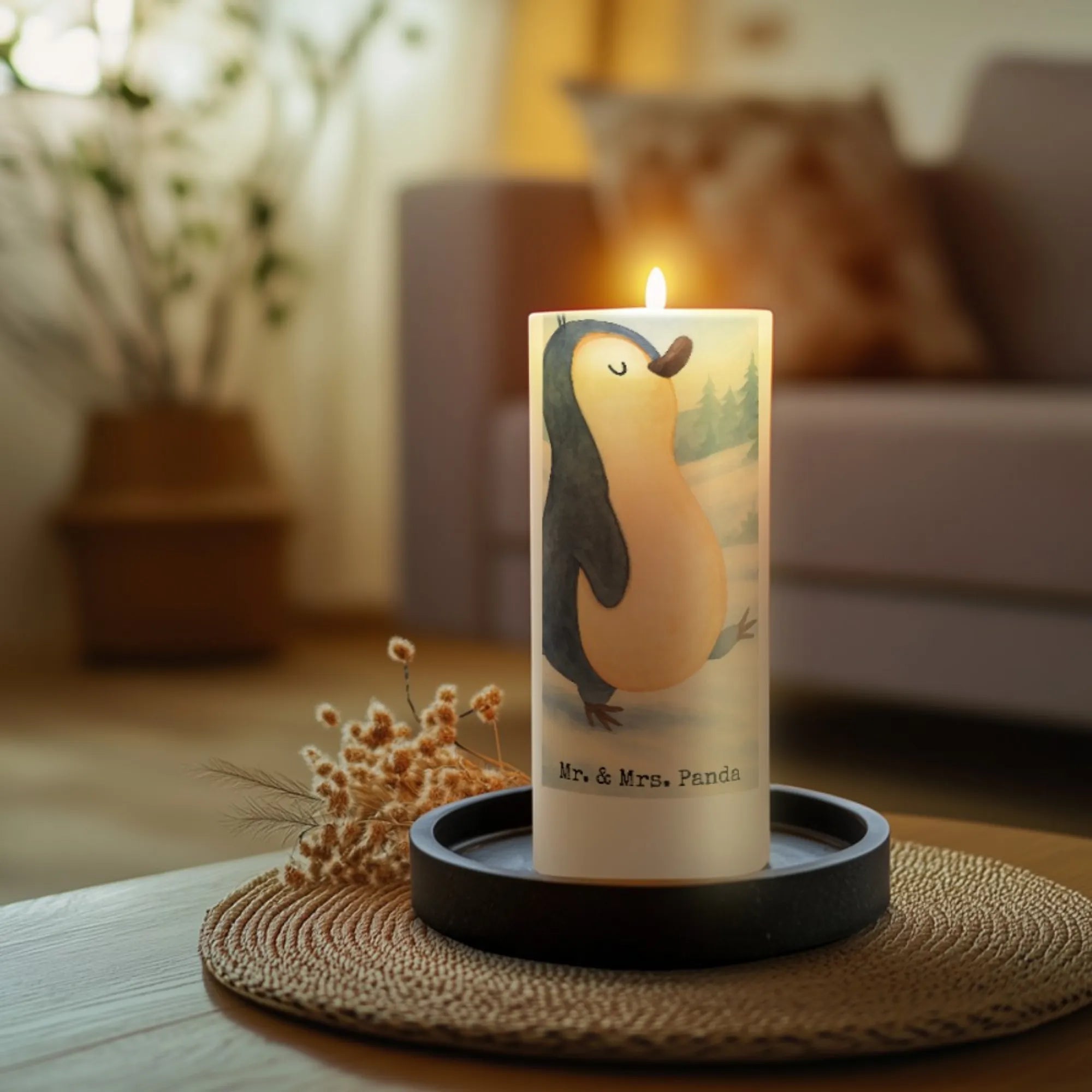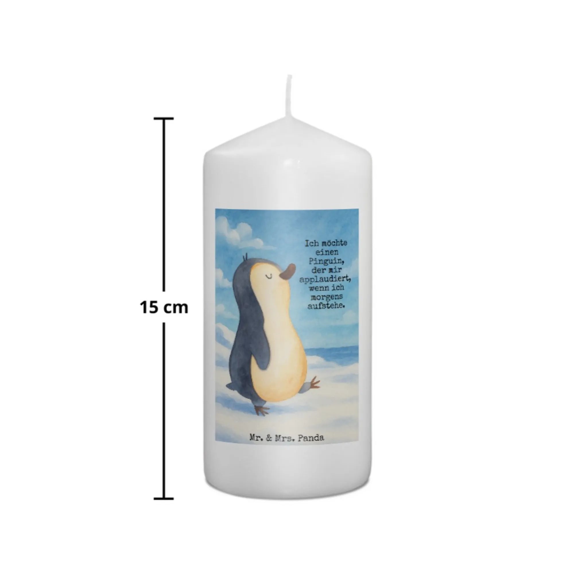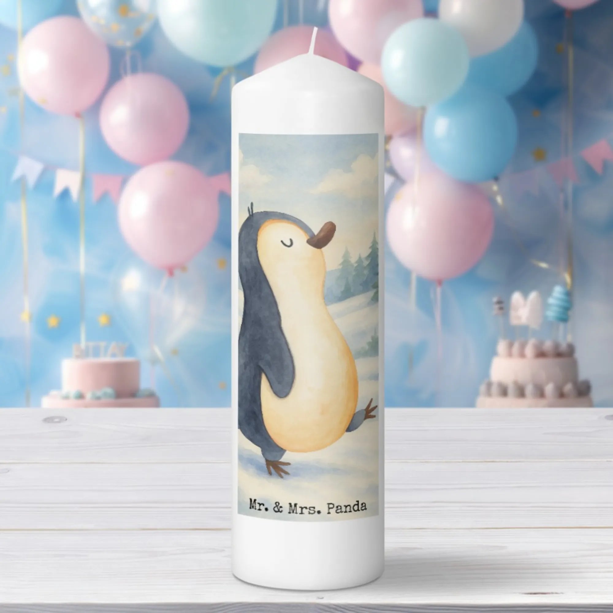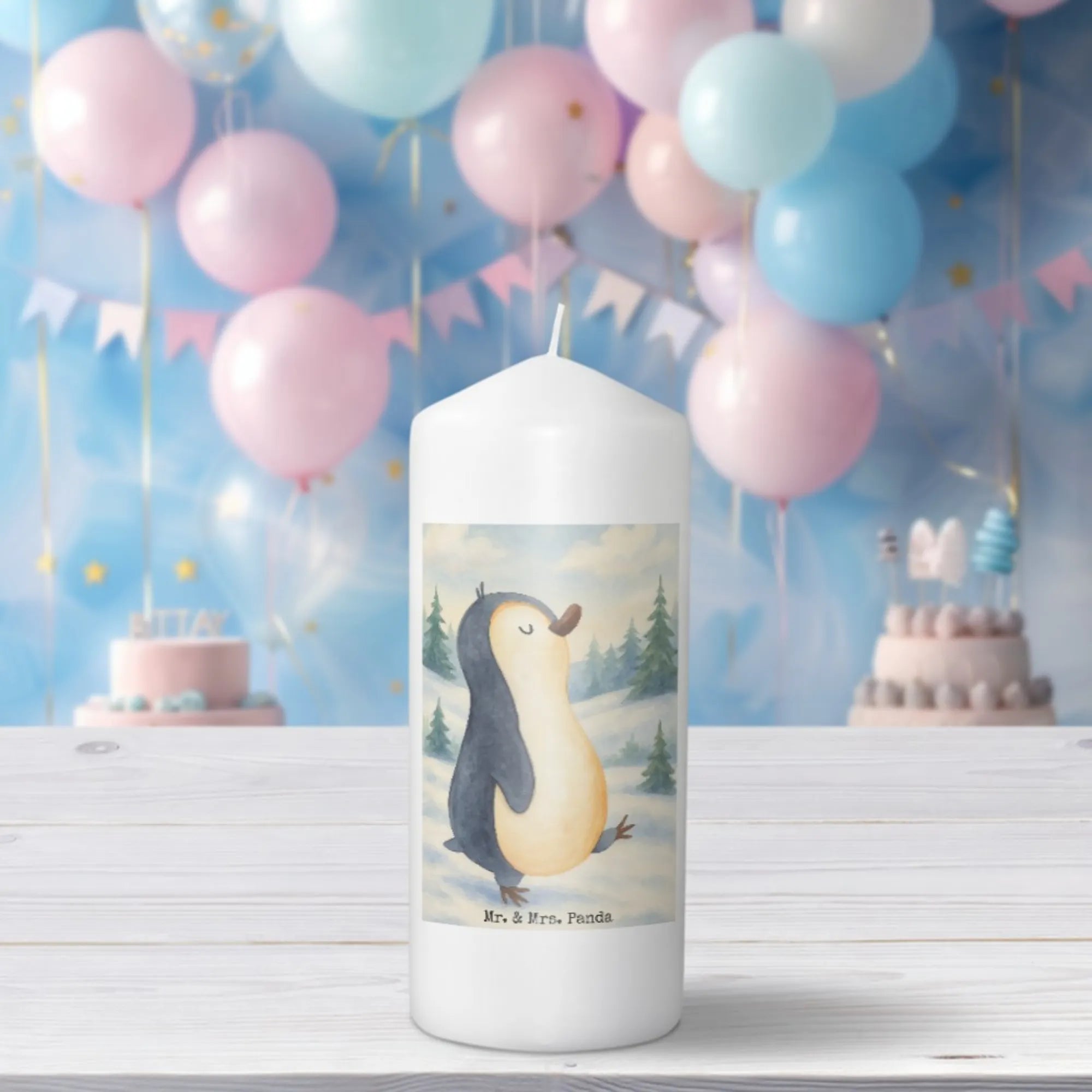 Kerze Pinguin marschieren Design - 19 x 8 cm - mit Spruch