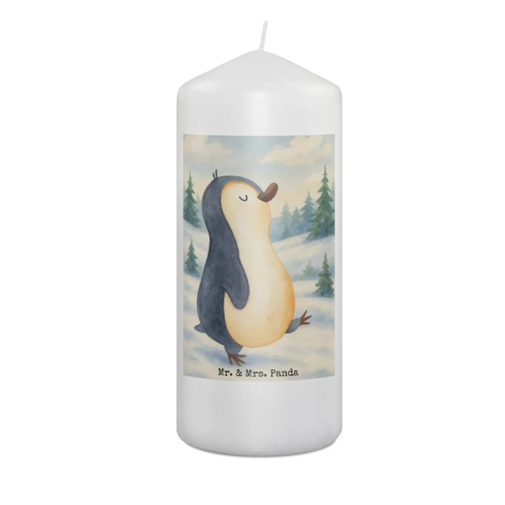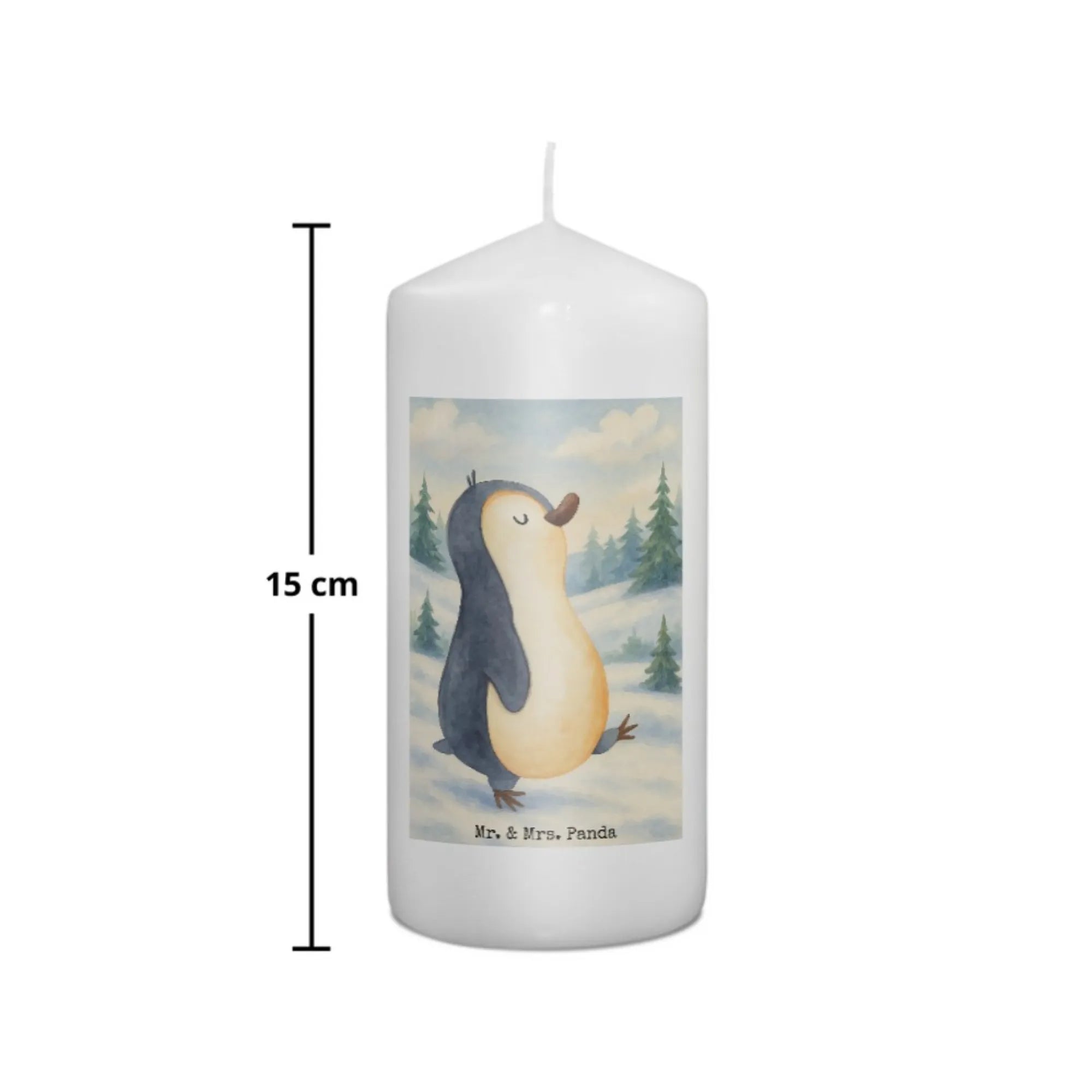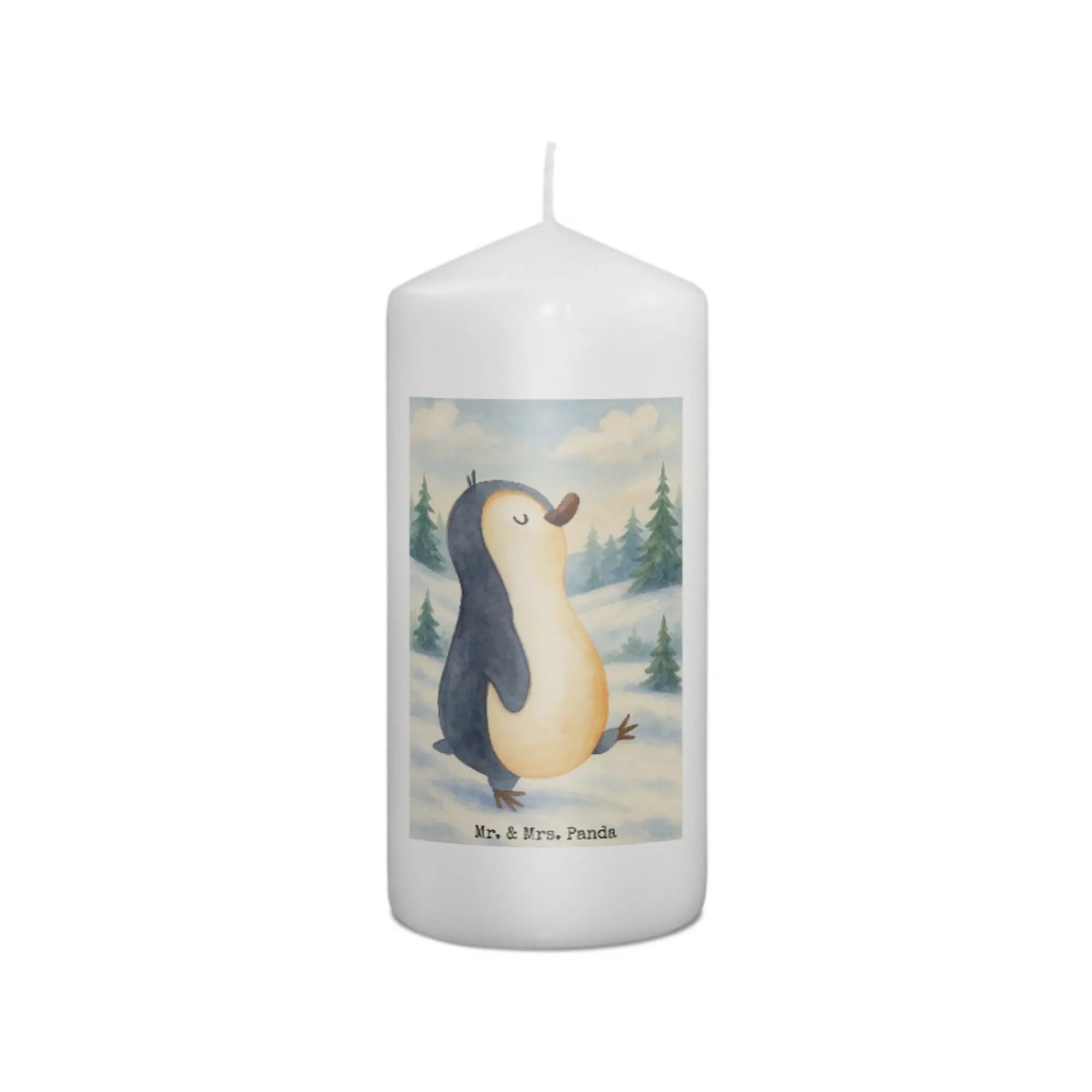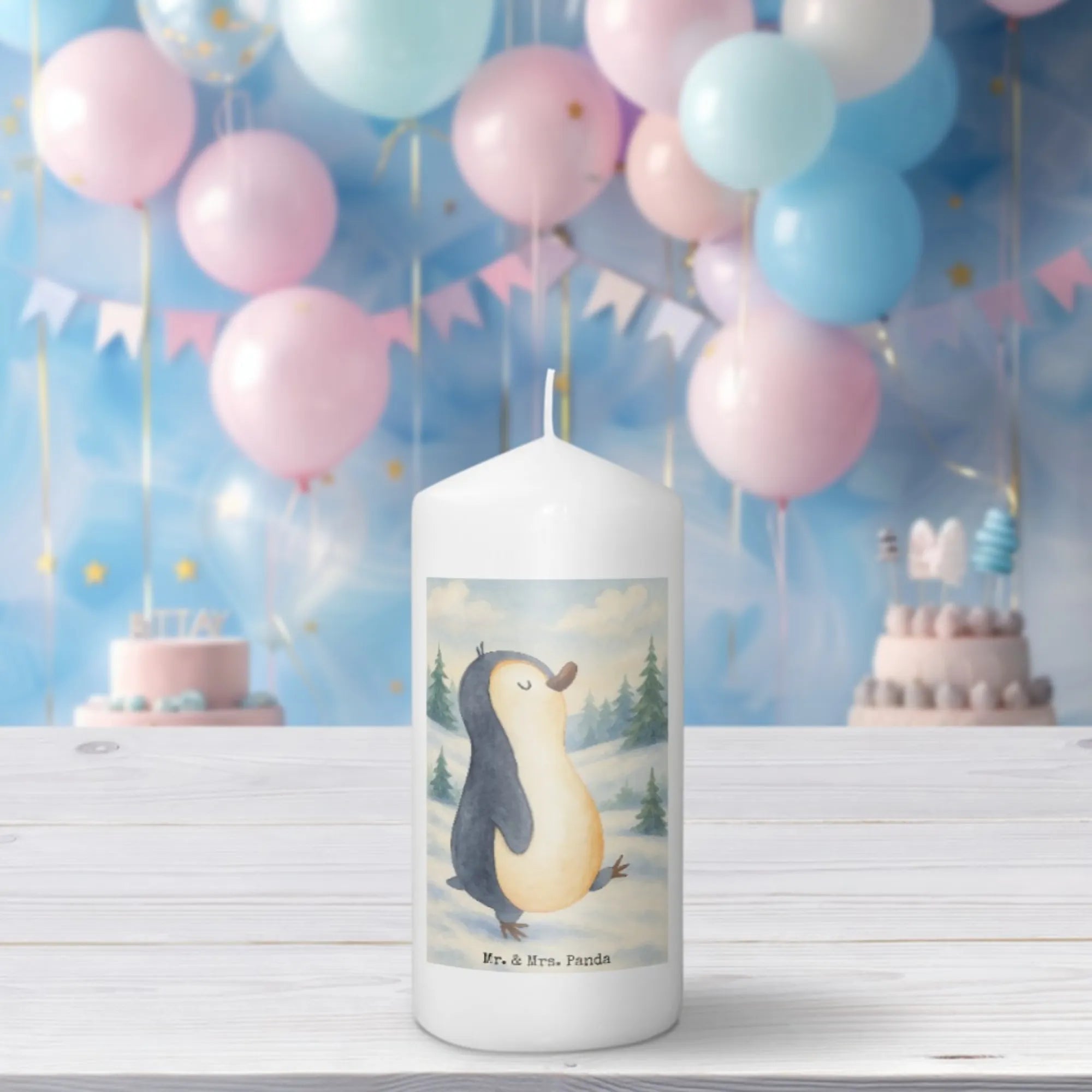 Kerze Pinguin marschieren Design - 19 x 8 cm - mit Spruch