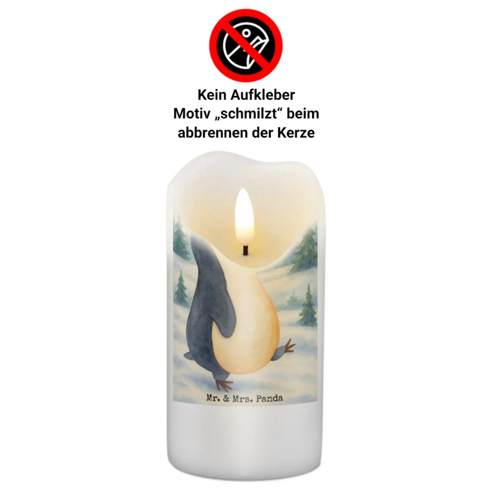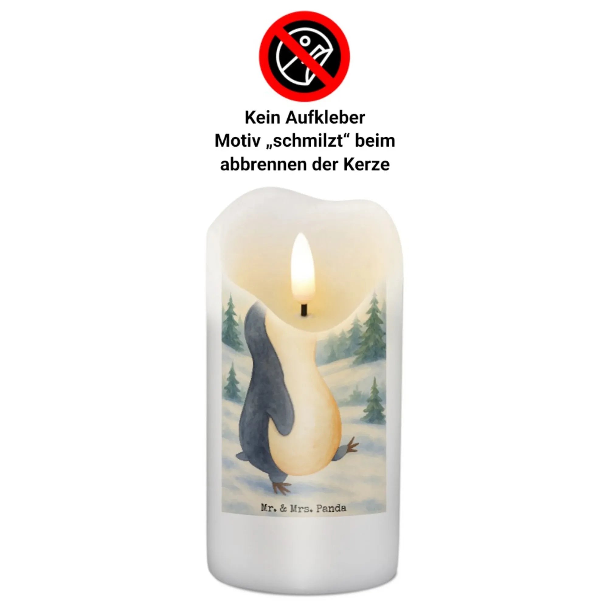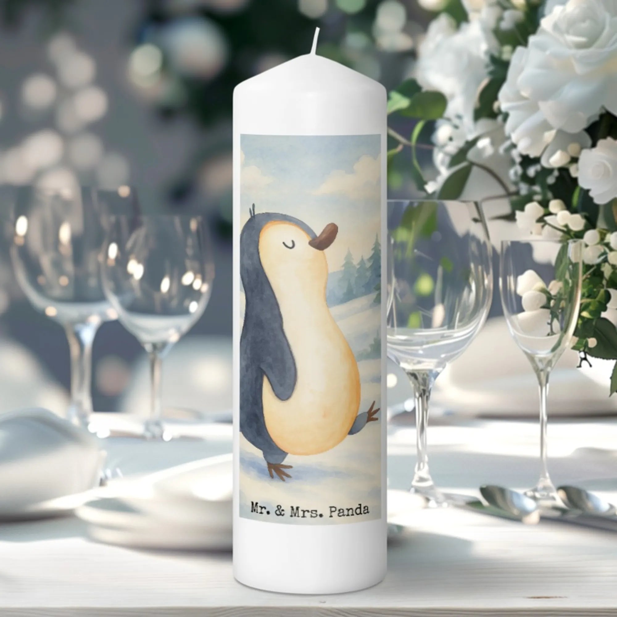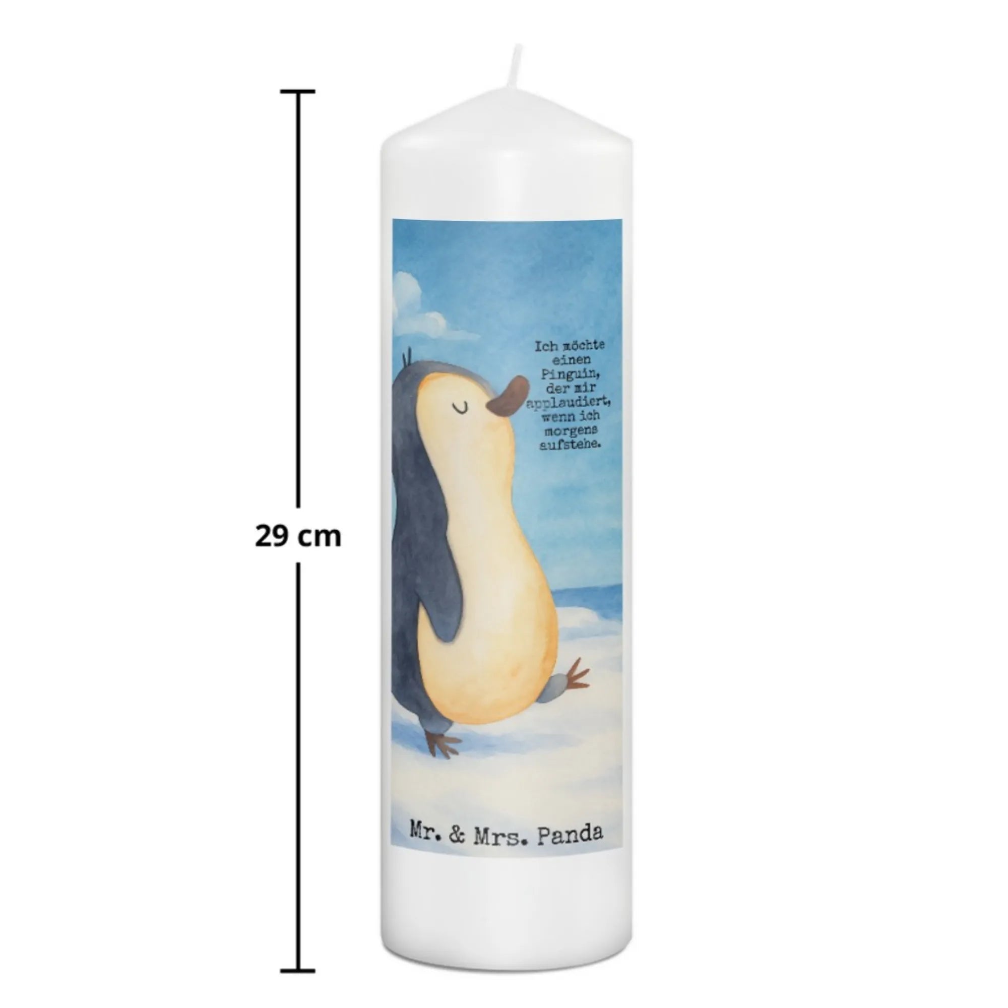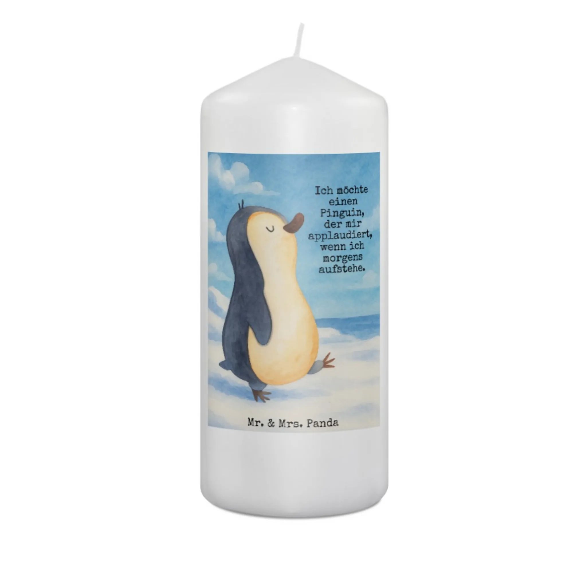 Kerze Pinguin marschieren Design - 19 x 8 cm - mit Spruch