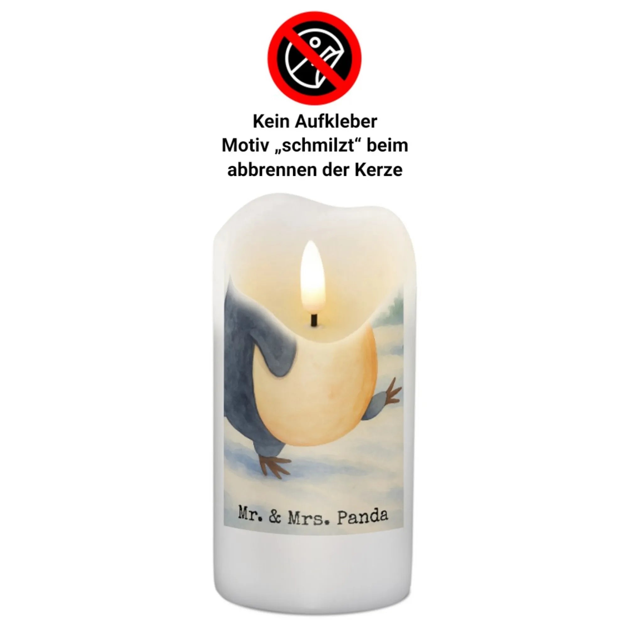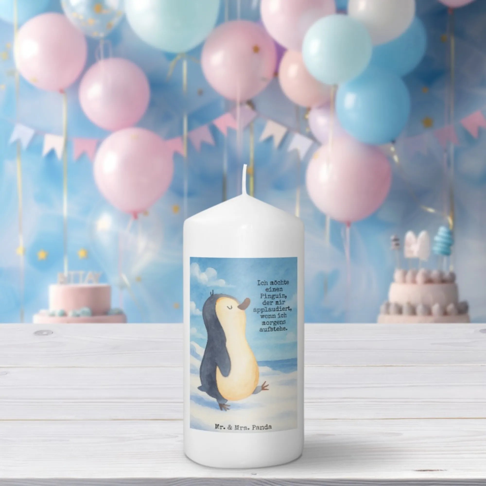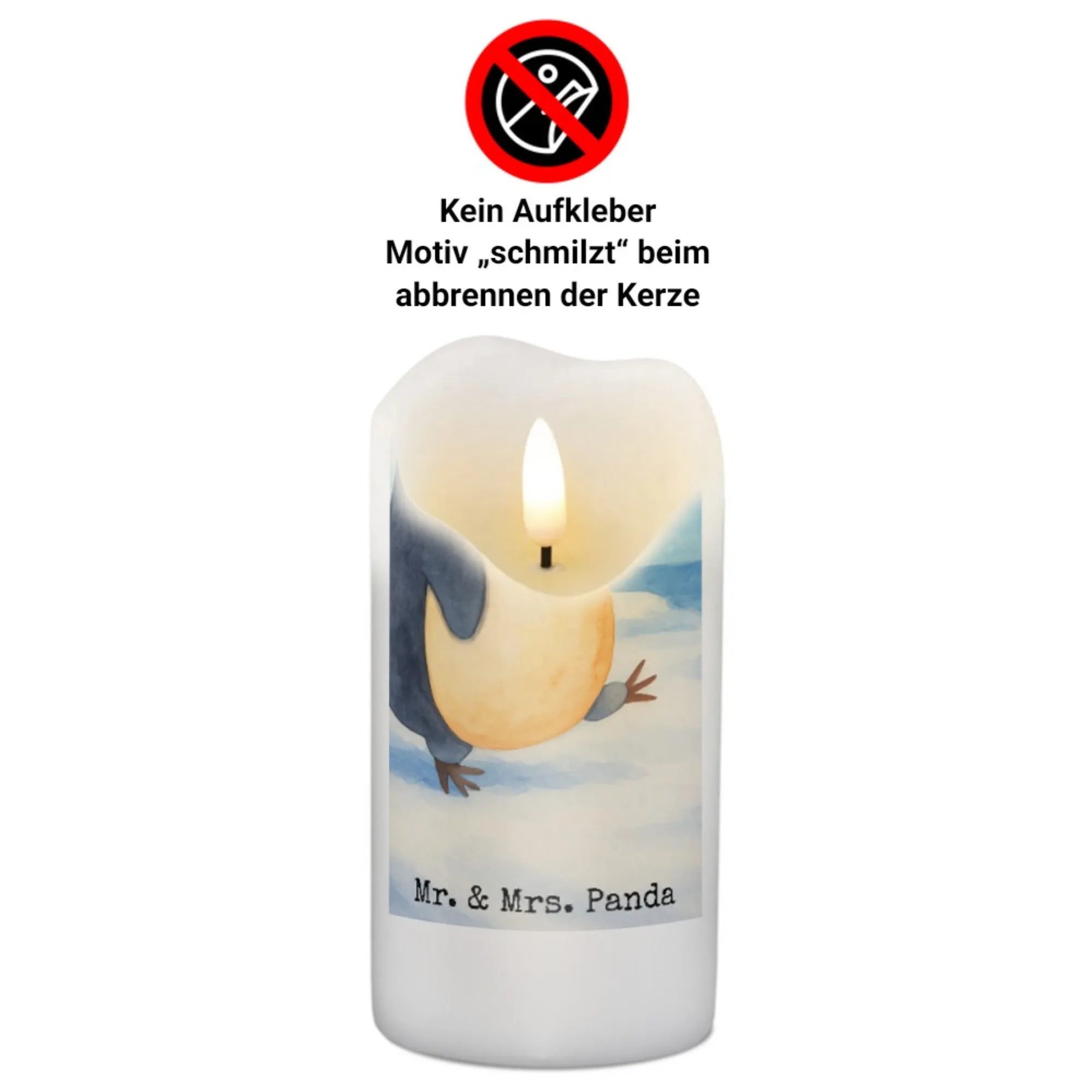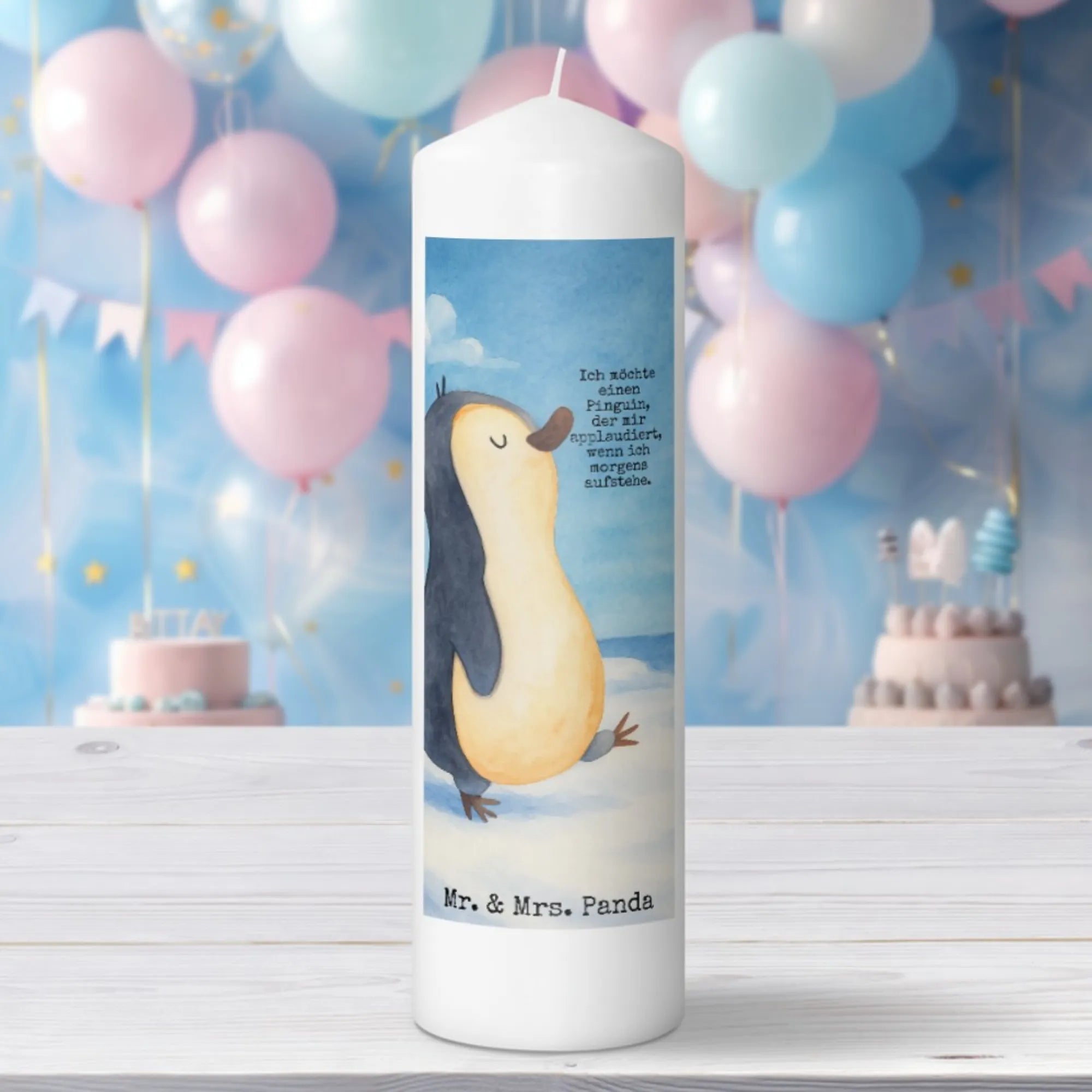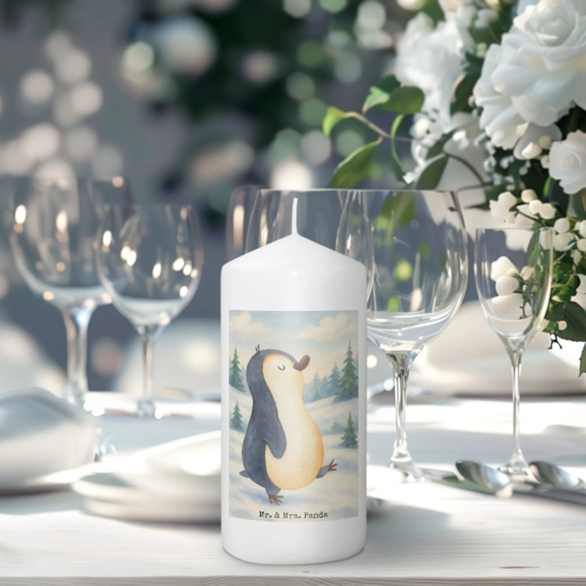 Kerze Pinguin marschieren Design - 19 x 8 cm - mit Spruch