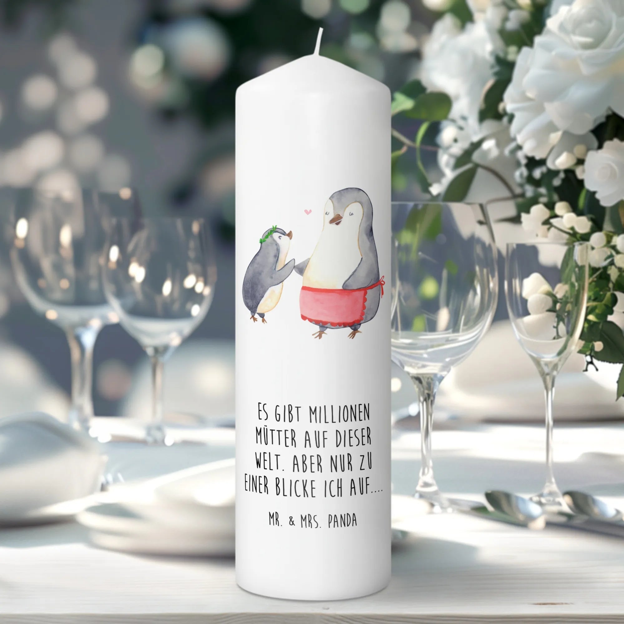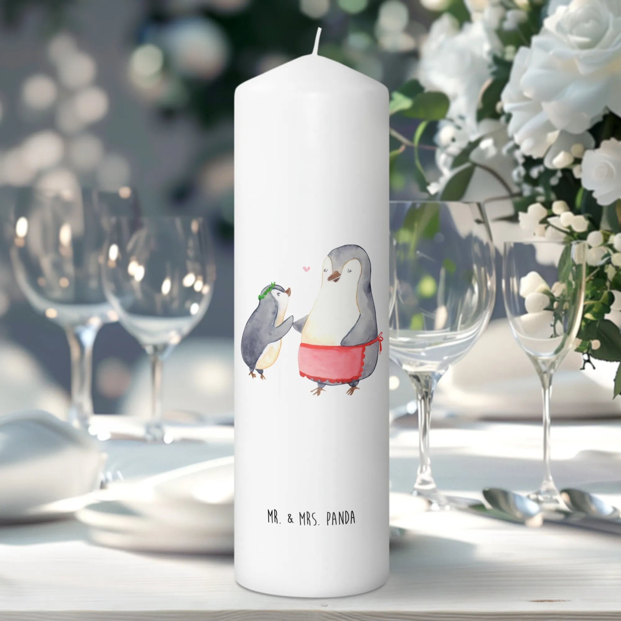 Entdecke die zauberhafte Taufkerze mit dem süßen Motiv Pinguin mit Kind, die perfekt für jede Mama ist! Diese edle und wunderschöne Kerze von Mr. & Mrs. Panda ist der ideale Begleiter für besondere Anlässe wie Taufen, Kommunionen oder Geburtstage.