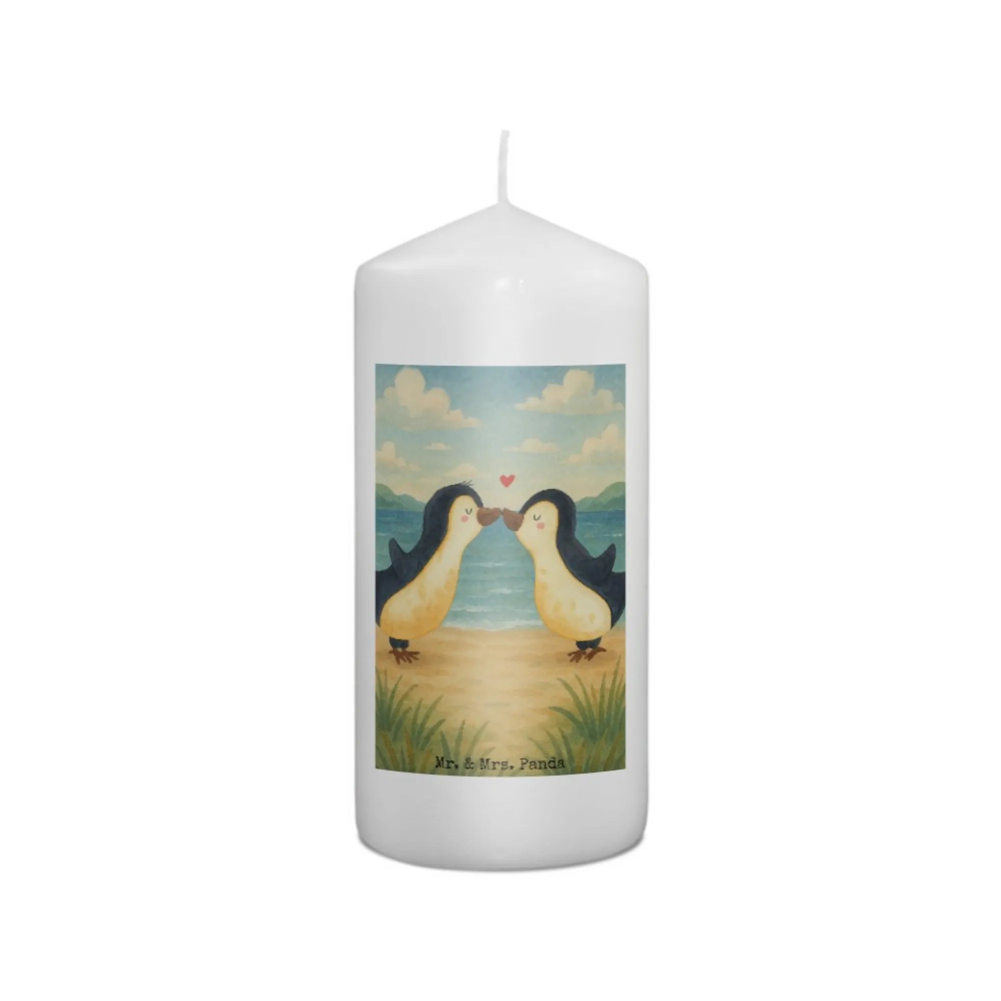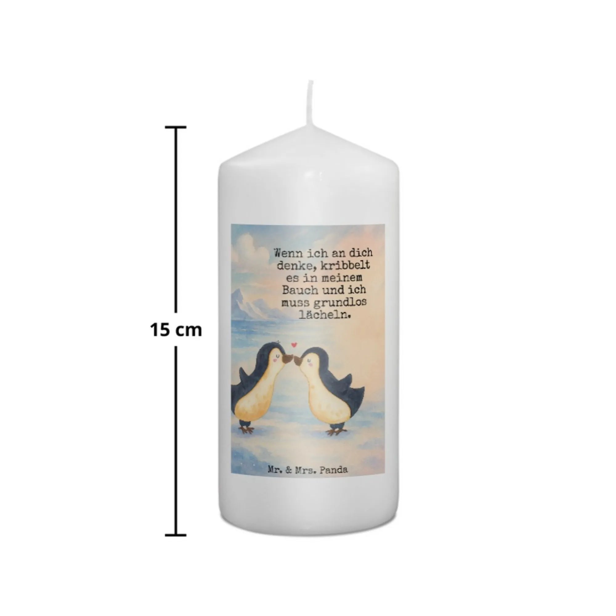 Kerze Pinguine Kuss Design - 19 x 8 cm - mit Spruch