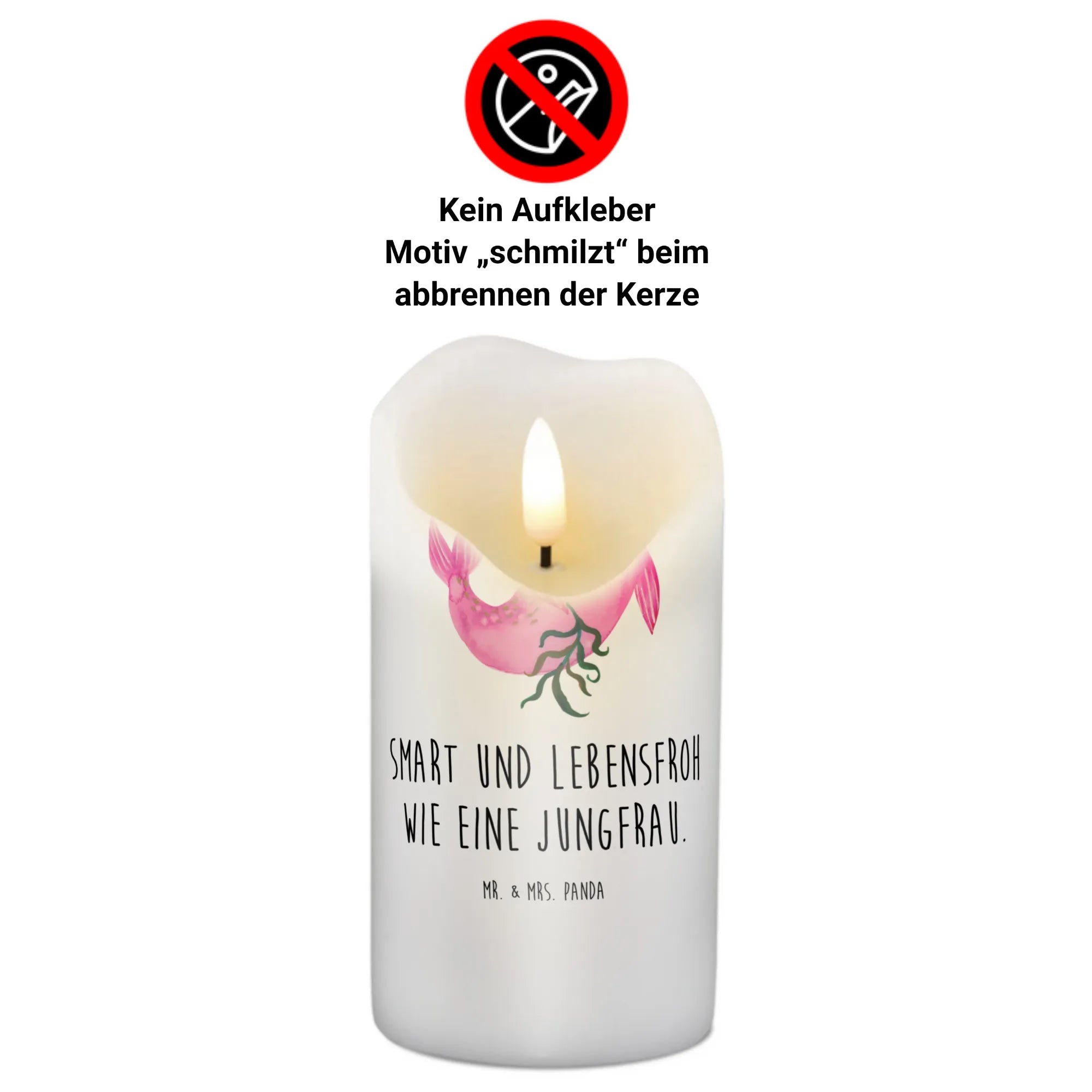 Diese Kerze aus der Sternzeichen-Kollektion von Mr. & Mrs. Panda ist ein liebevolles Geschenk für alle Jungfrauen. Mit dem fröhlichen Spruch „Smart und lebensfroh wie eine Jungfrau.“ und einer zauberhaften Aquarell-Illustration einer kleinen Meerjungfrau-Jungfrau vereint sie Humor, Persönlichkeit und Stil.