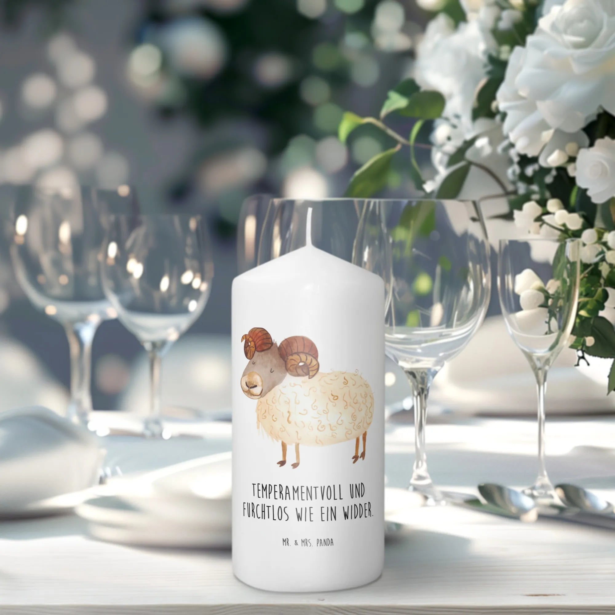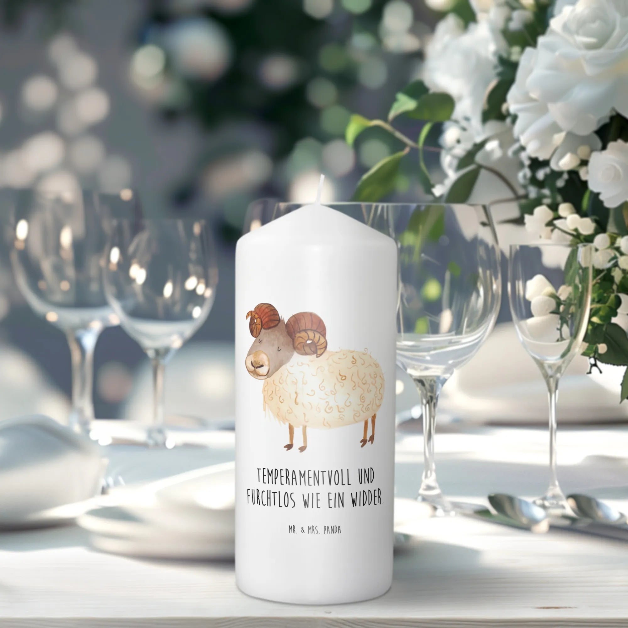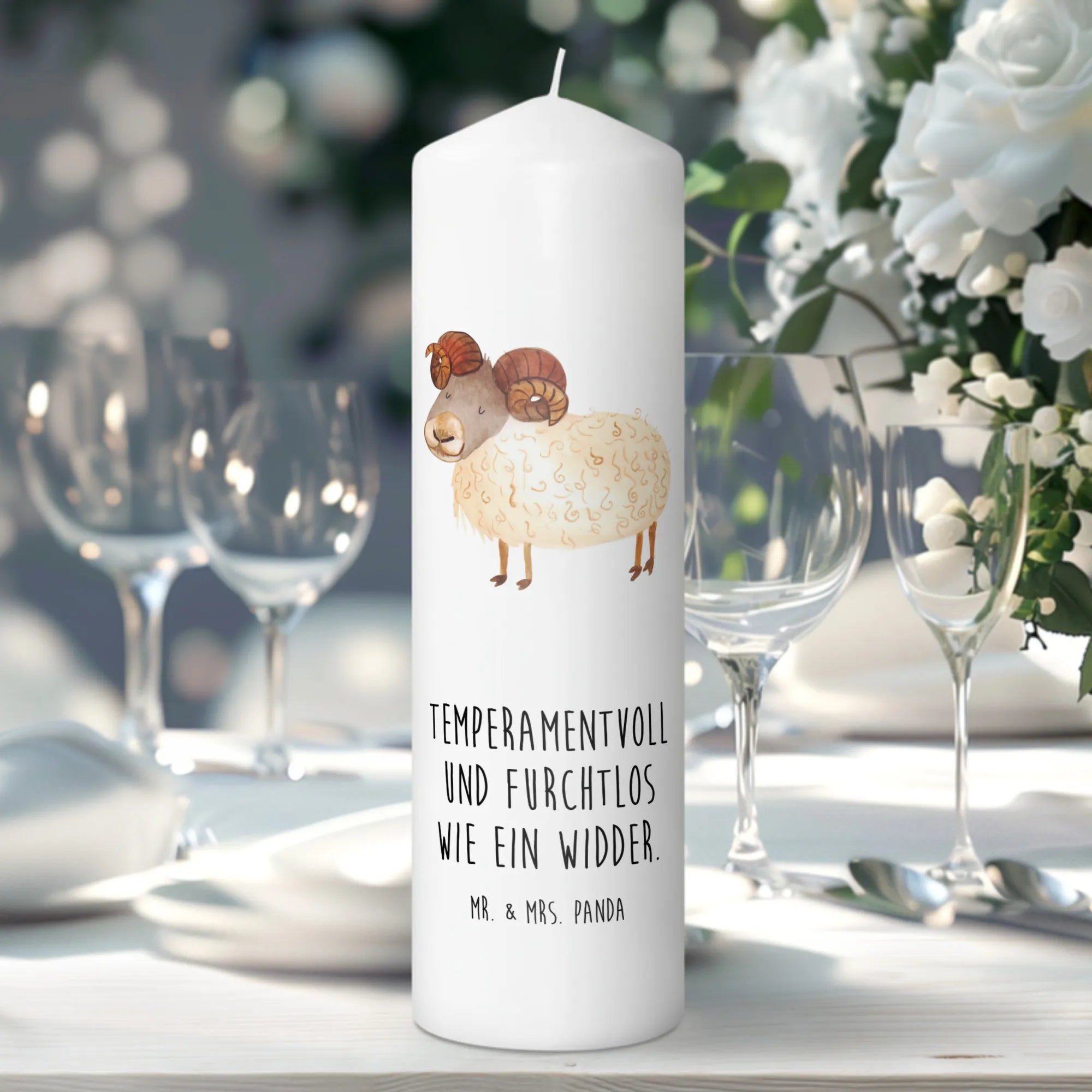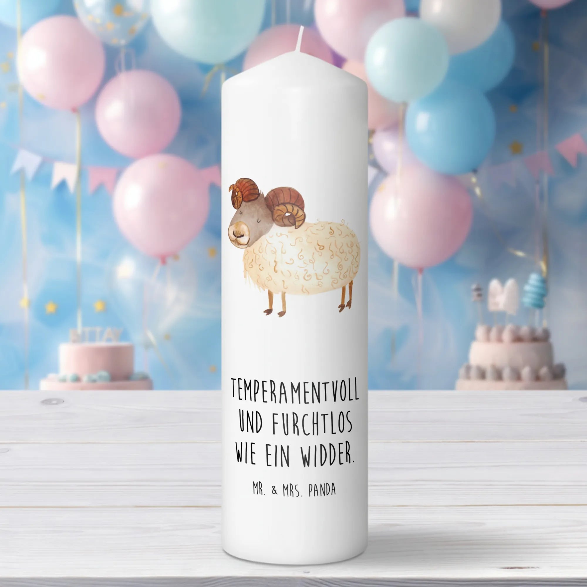 Die perfekte Geschenkidee für alle Widder-Fans! Diese wunderschöne Taufkerze mit dem einzigartigen Sternzeichen-Widder-Motiv zaubert jedem ein Lächeln ins Gesicht. Mit ihrem farbenfrohen, handgezeichneten Design von Mr. & Mrs. Panda und dem liebevollen Spruch 'Temperamentvoll und furchtlos wie ein Widder' ist sie mehr als nur eine Kerze – sie ist ein Geschenk mit Persönlichkeit und Charakter.