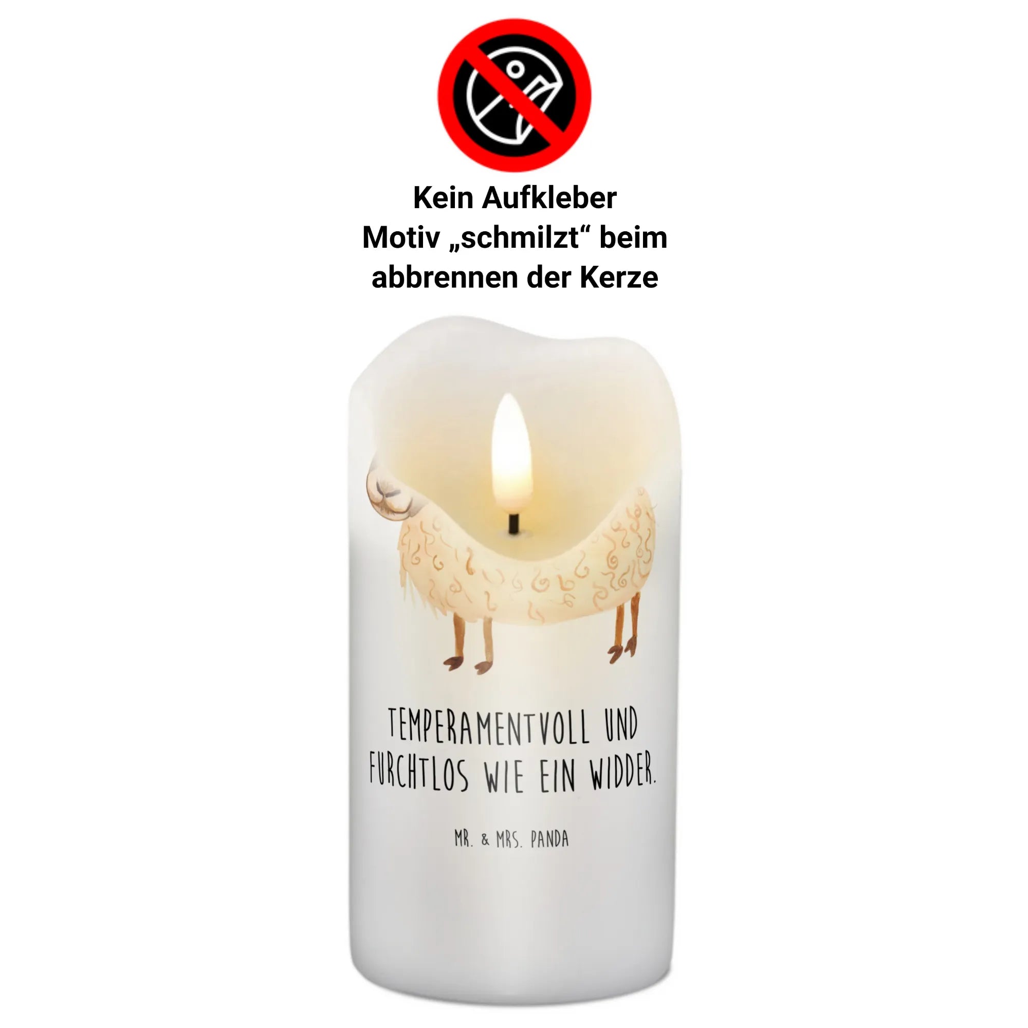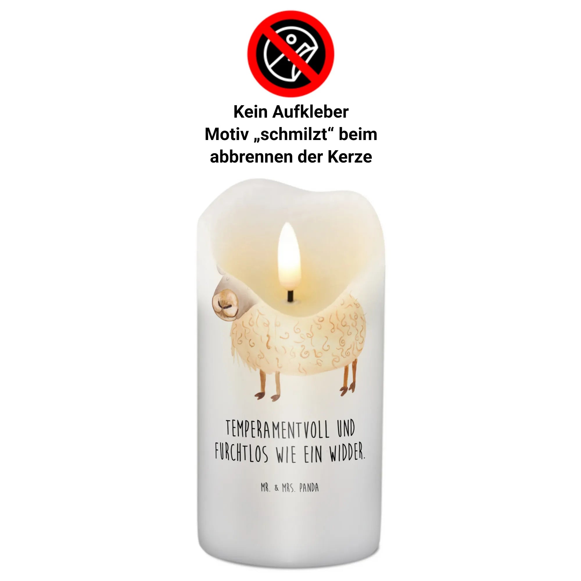 Das niedliche Motiv des Widders, der temperamentvoll und furchtlos ist, wird sicherlich ein Lächeln auf die Gesichter deiner Familie und Freunde zaubern. Außerdem schmilzt das Motiv beim Abbrennen der Kerze, was ein einzigartiges visuelles Erlebnis bietet.