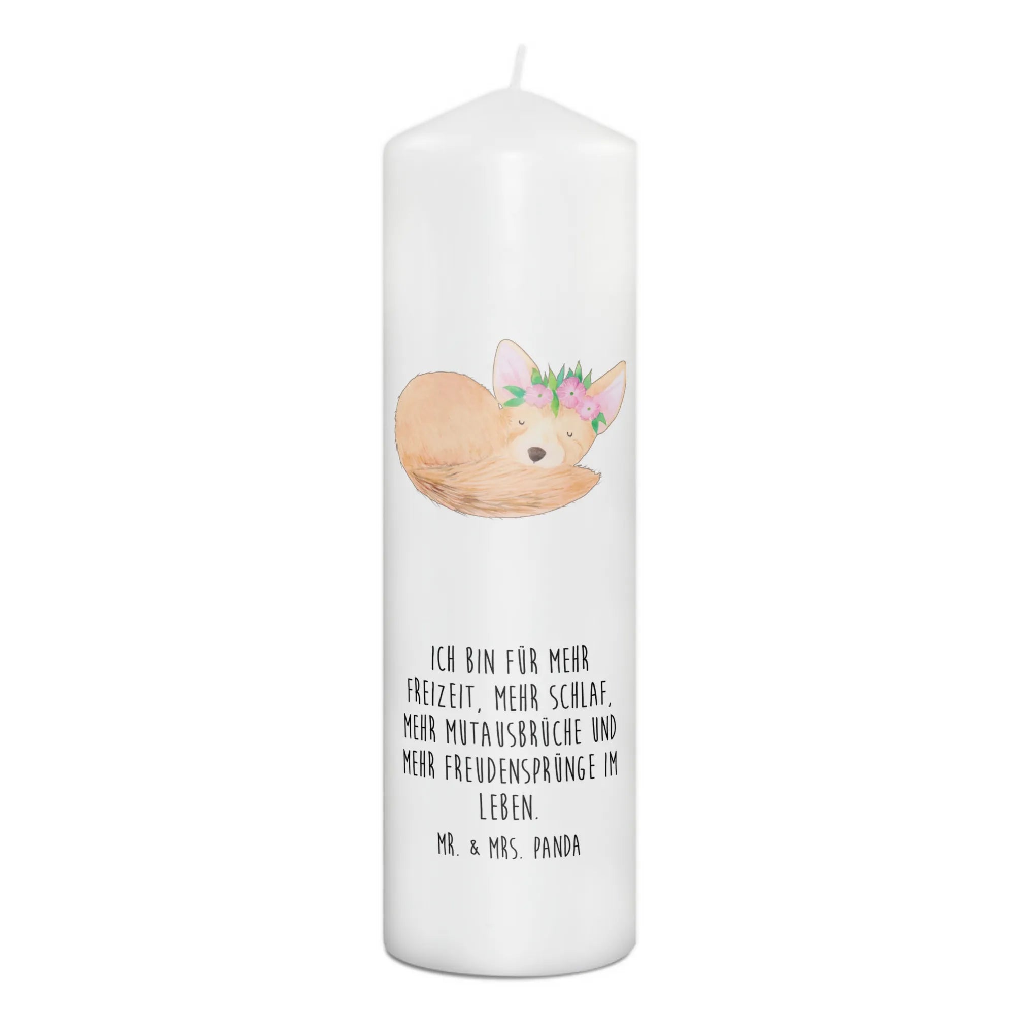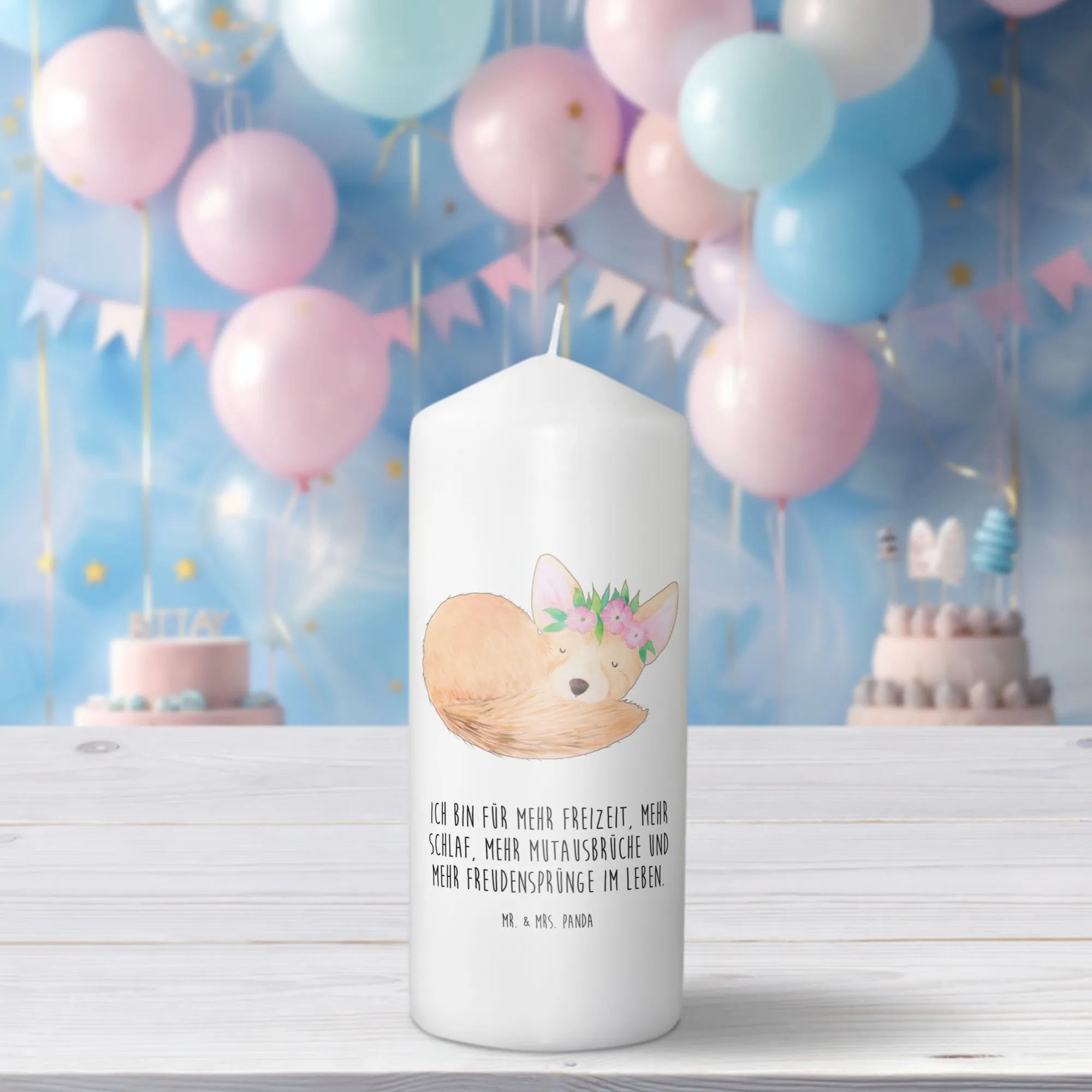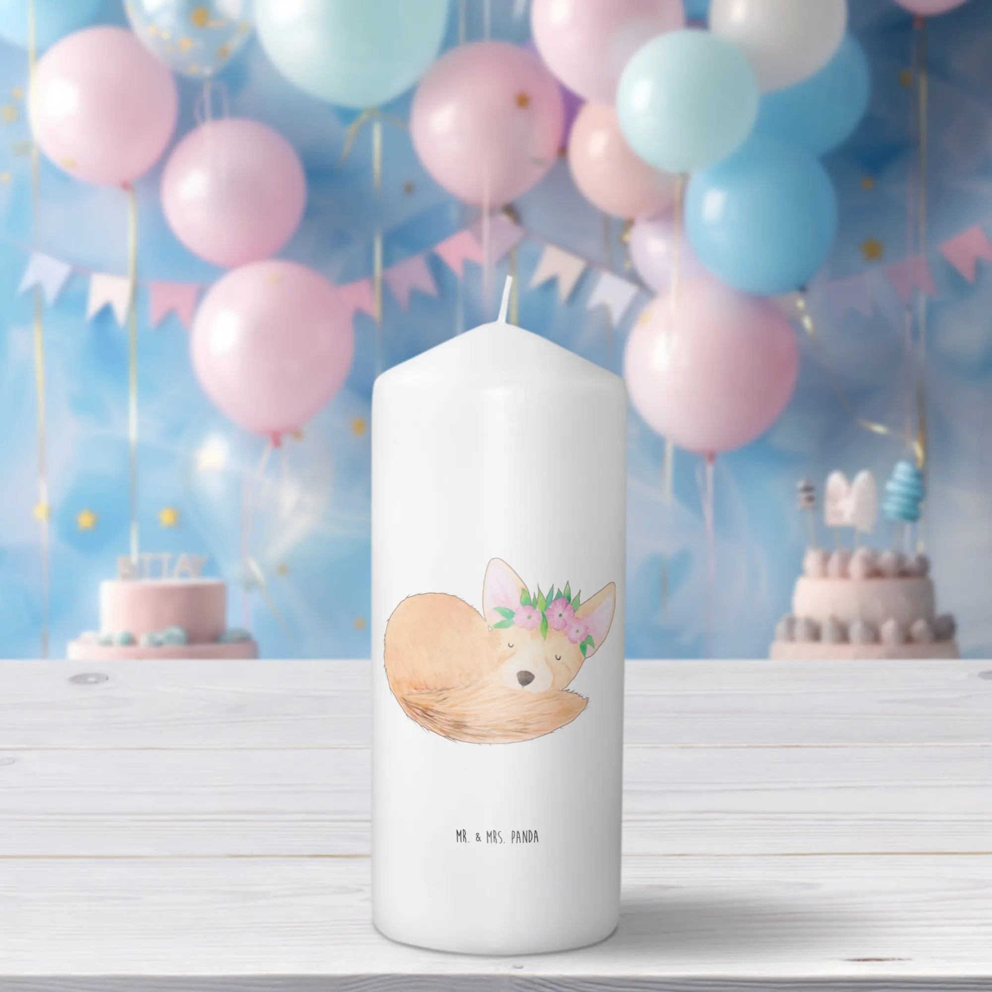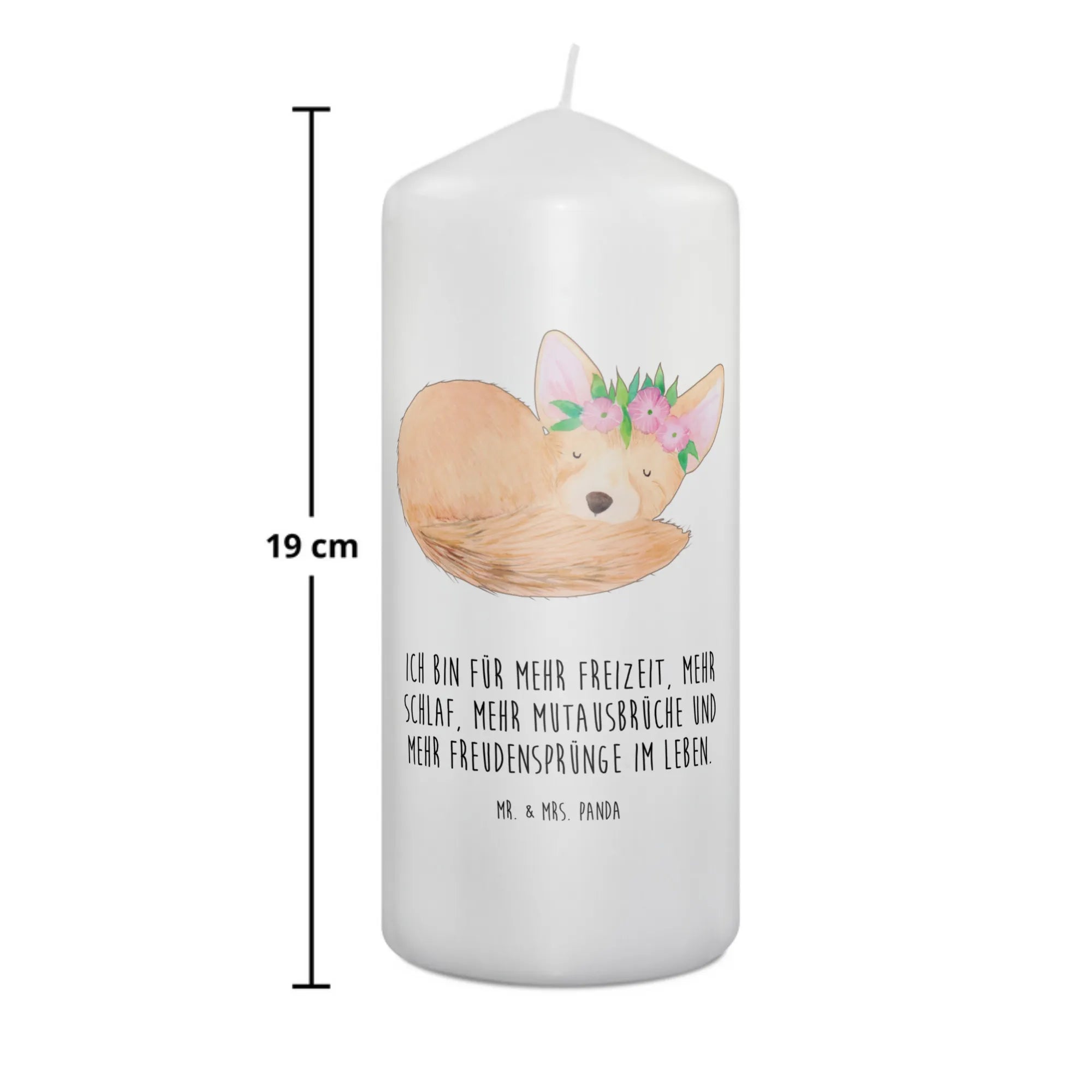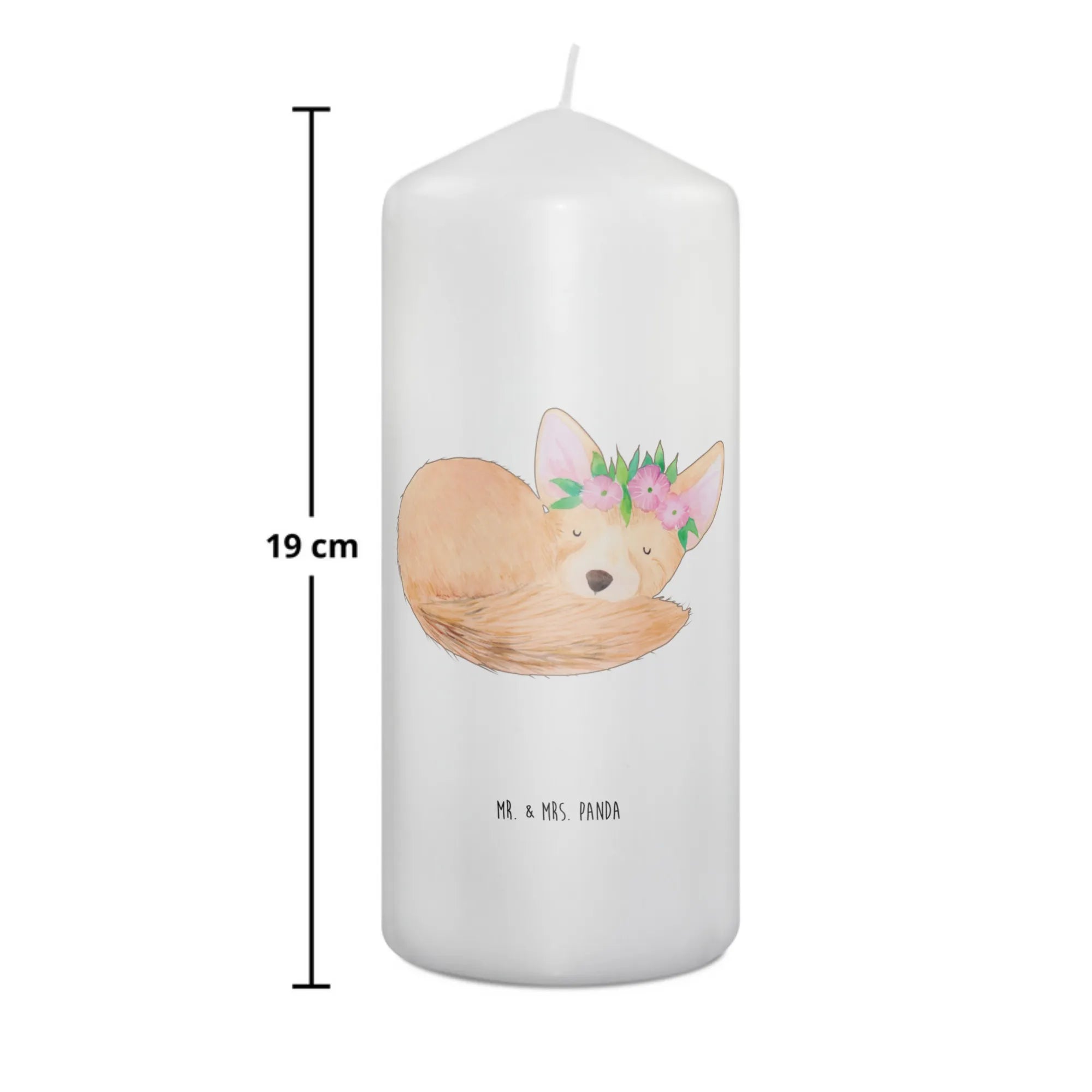 Kerze Wüstenfuchs Blumenkranz - 19 x 8 cm - mit Spruch