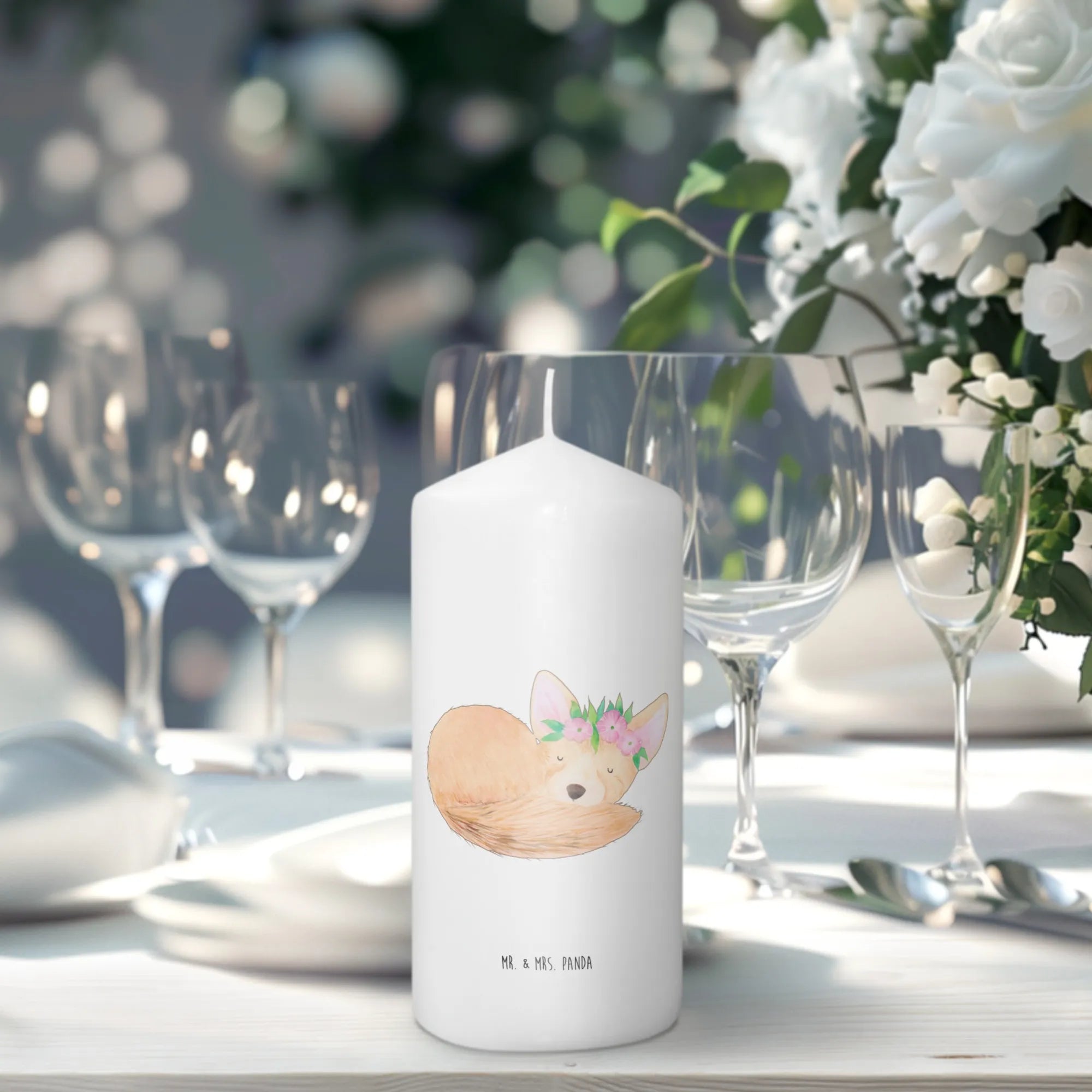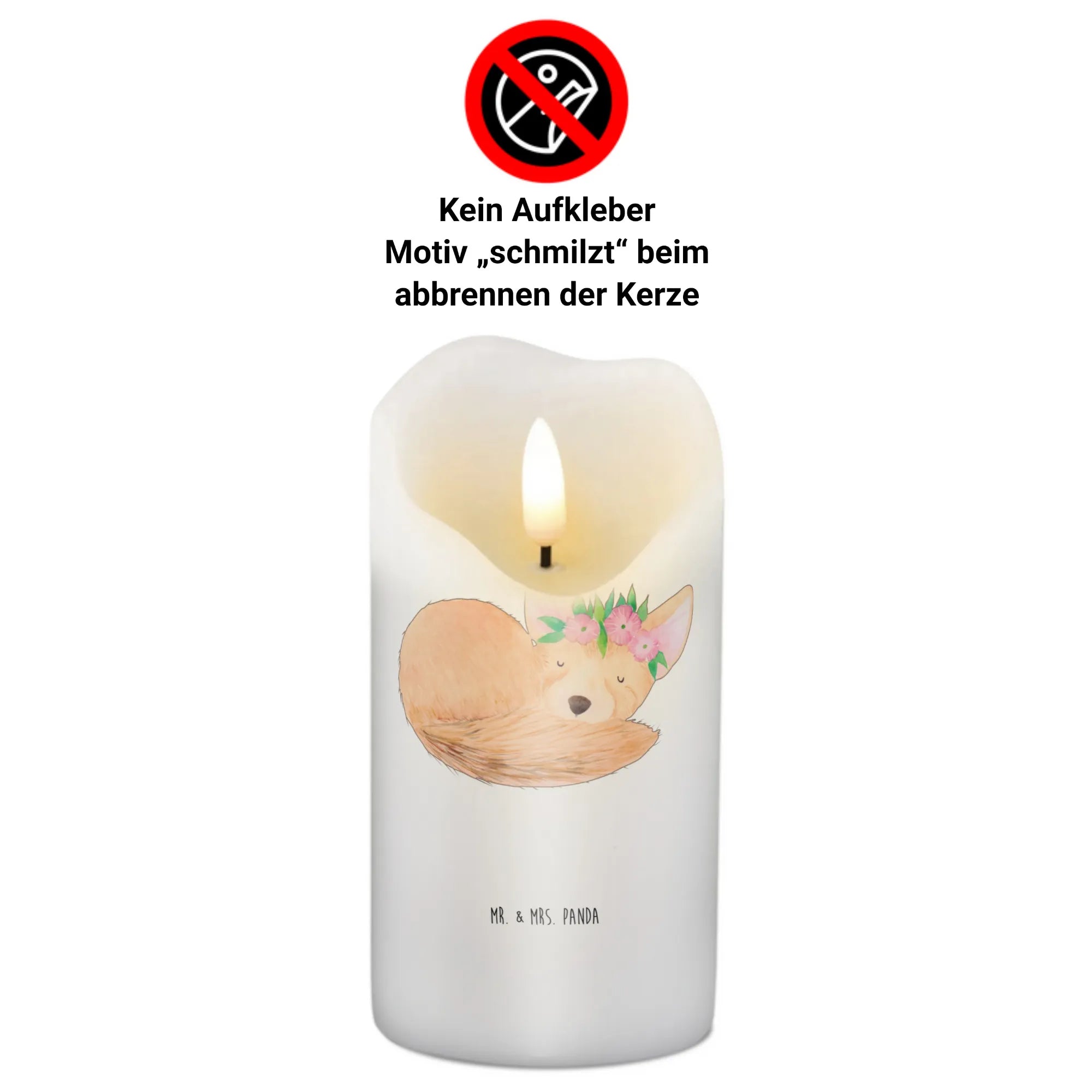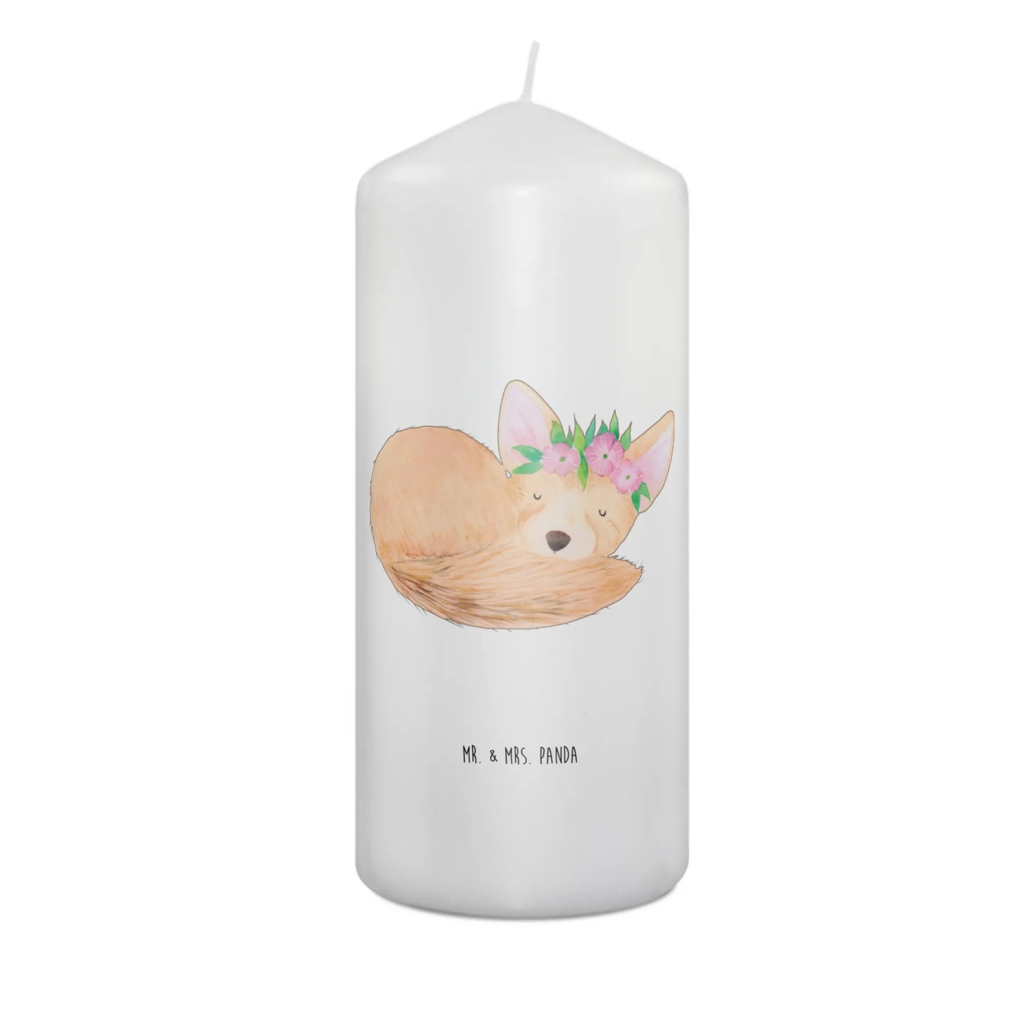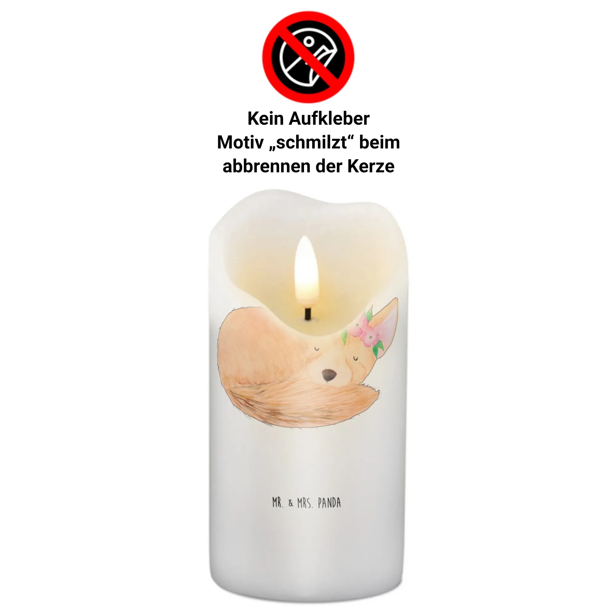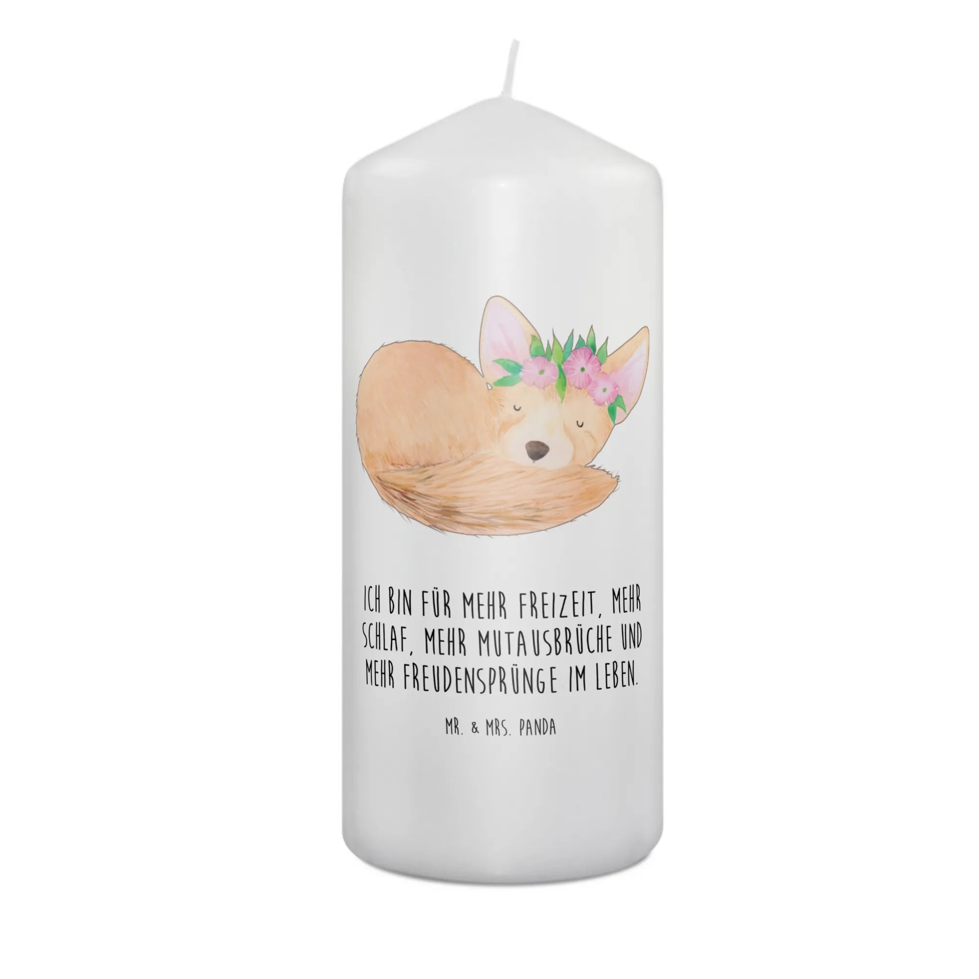 Kerze Wüstenfuchs Blumenkranz - 19 x 8 cm - mit Spruch