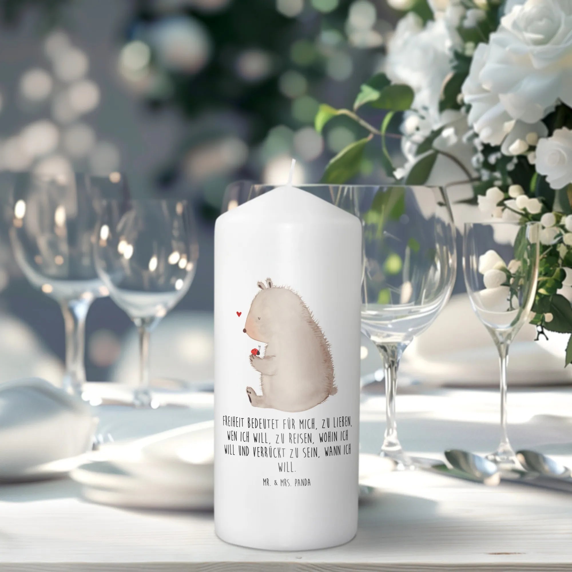 świeca niedźwiedź biedronka - 29 x 8 cm XL - z napisem