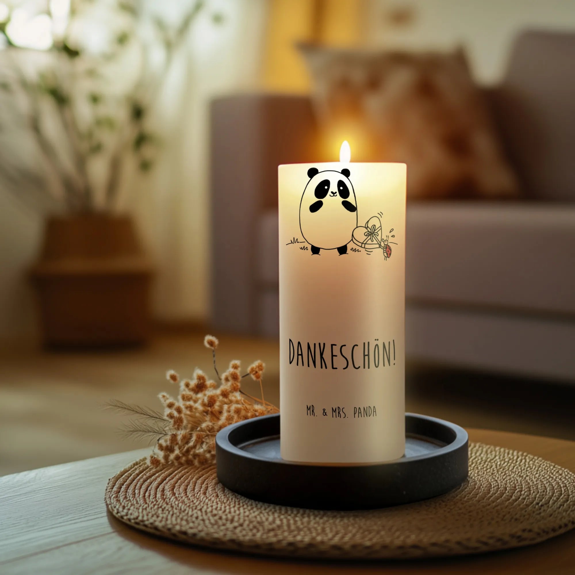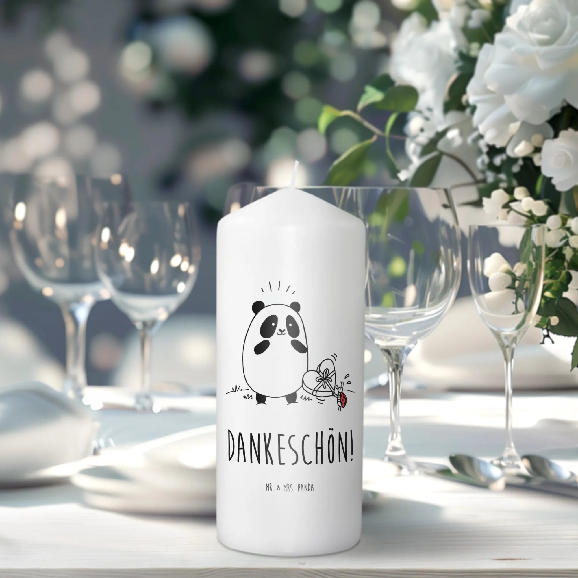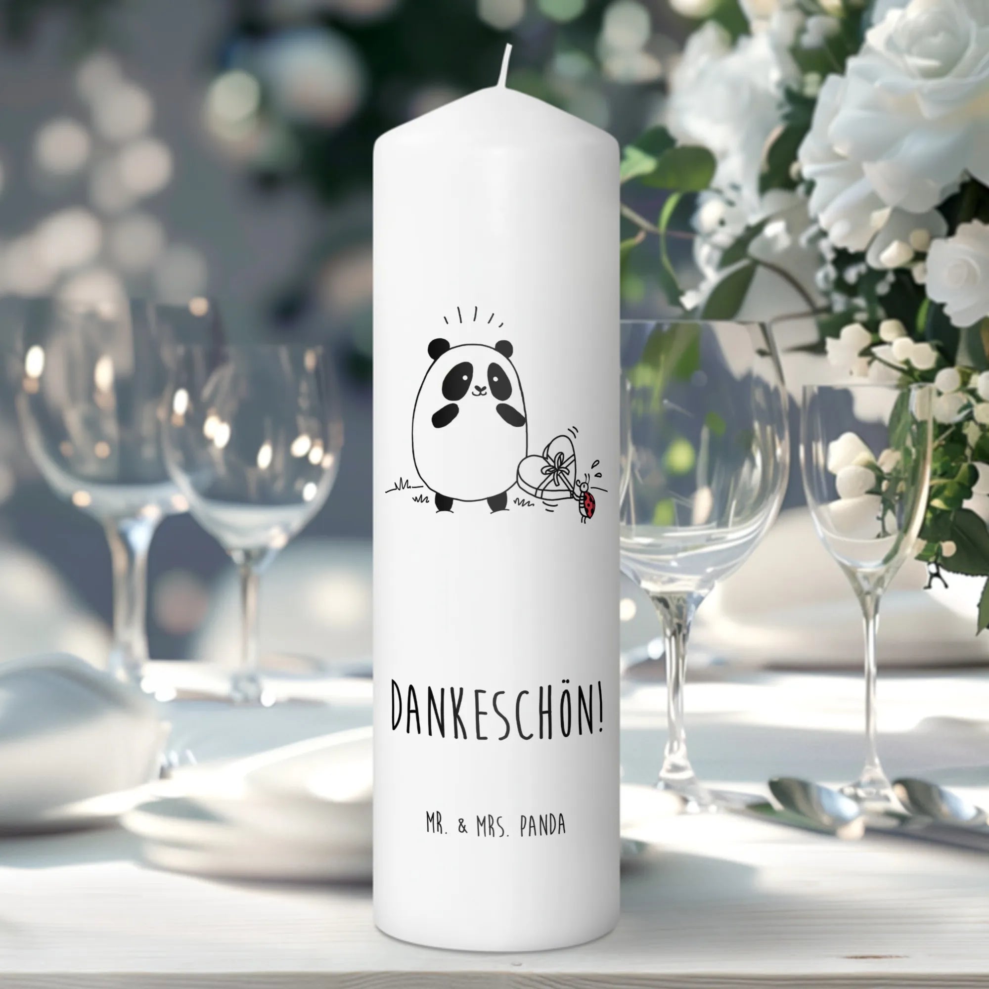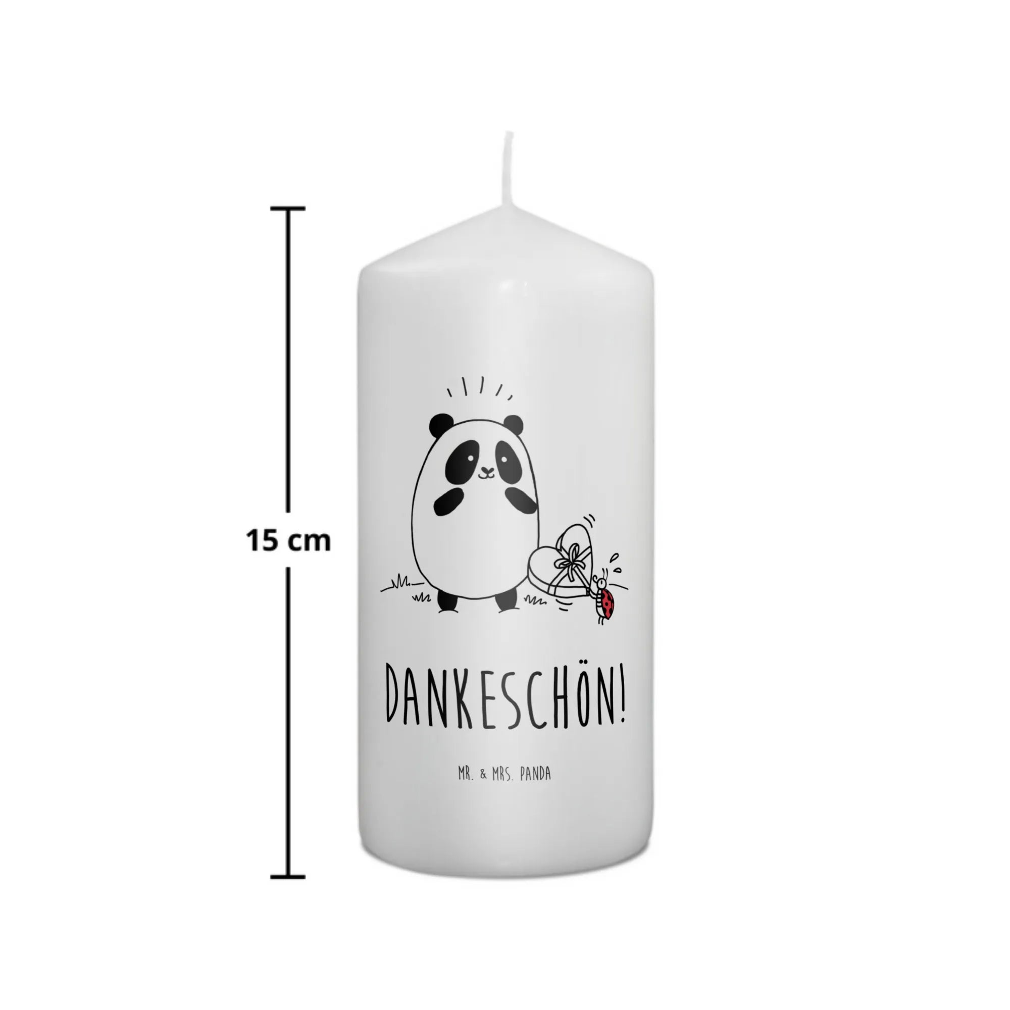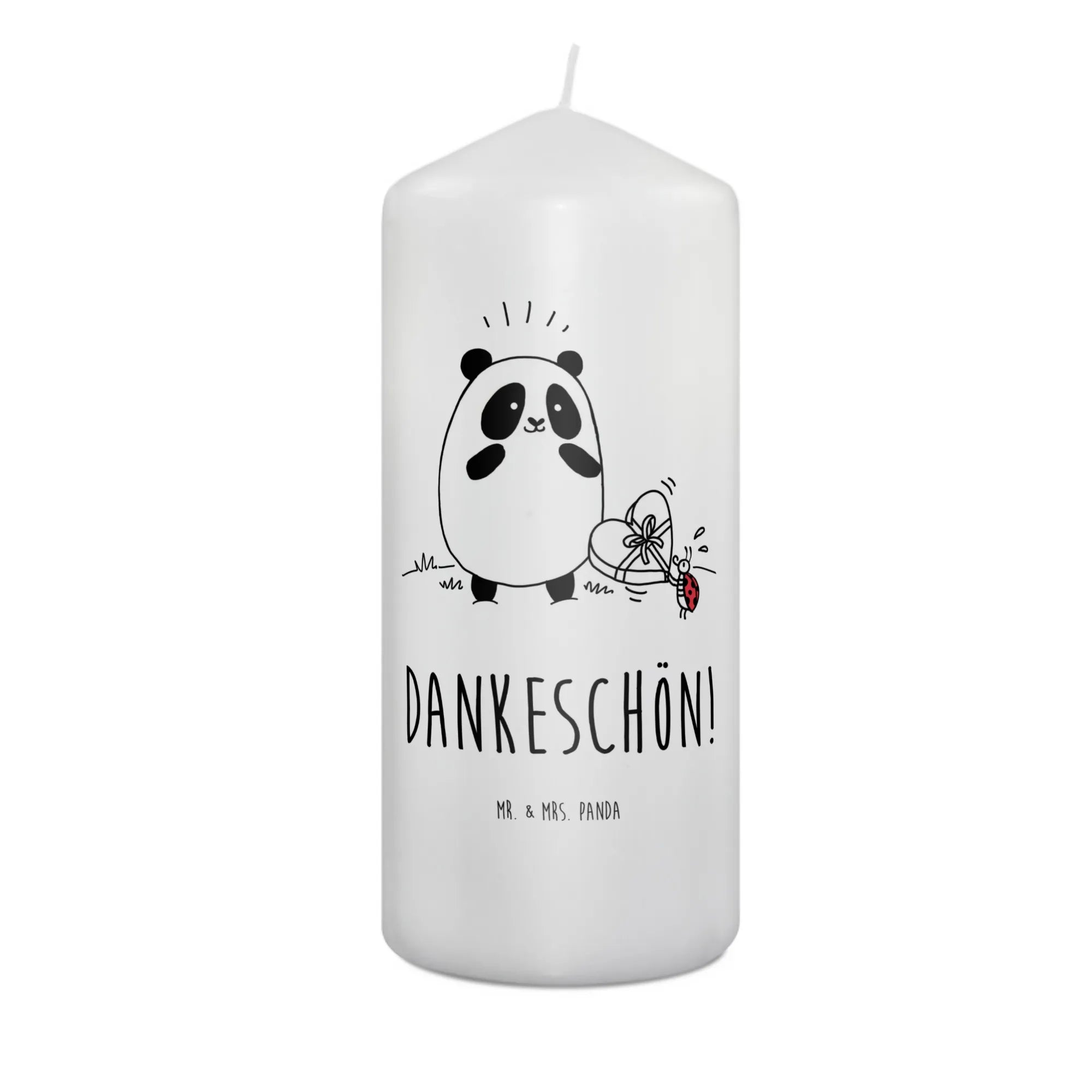 świeca Panda Dziękuję Erinnerungskerze, Bedruckte Kerze, Stumpenkerze, Zylinderkerze, Erinnerungslicht, Wachskerze, Blockkerze, Kerze