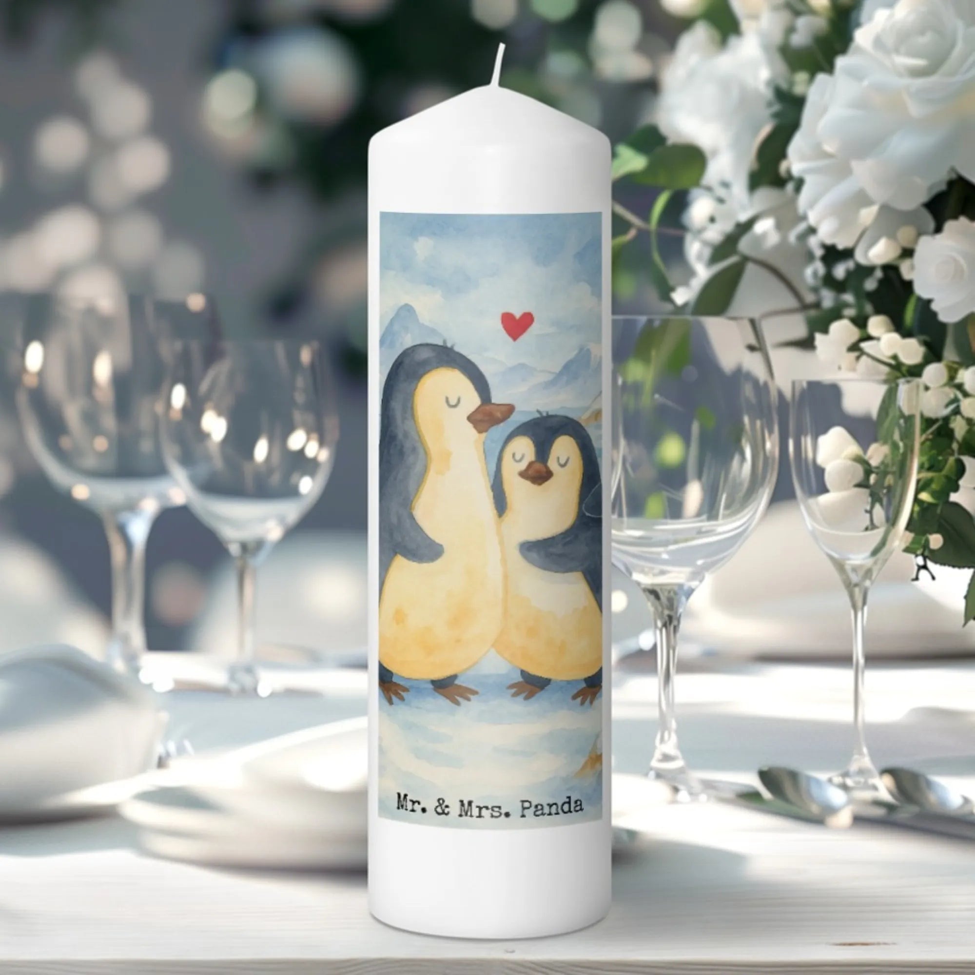 świeca Pingwin przytulać Design - 15 x 7 cm - z napisem